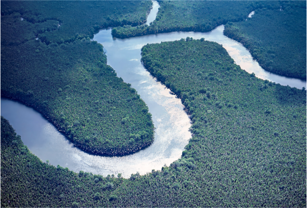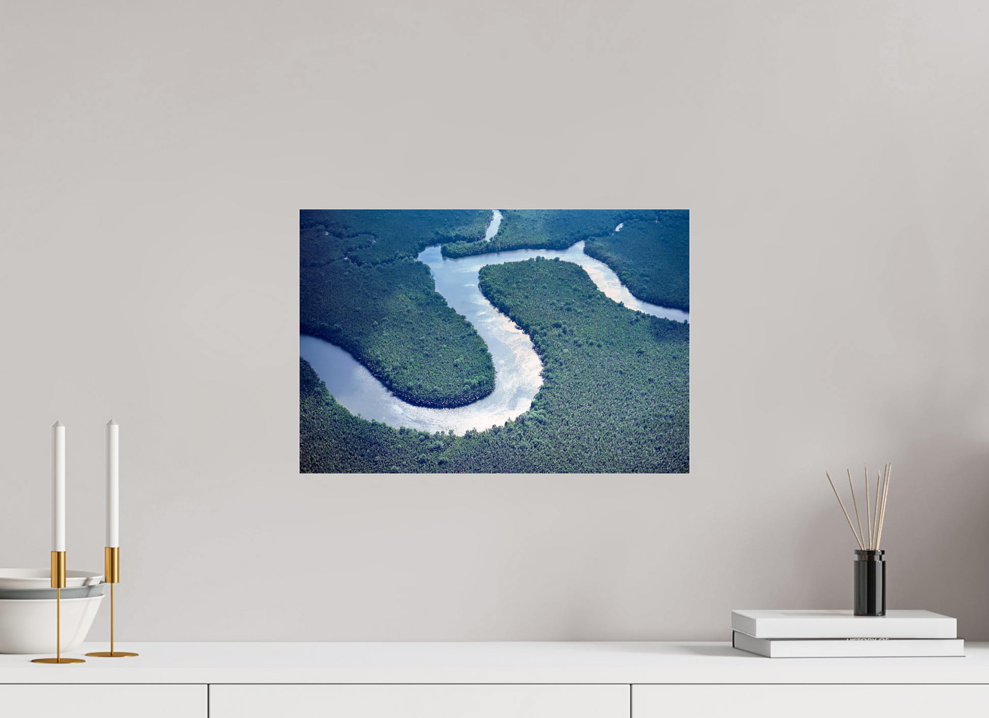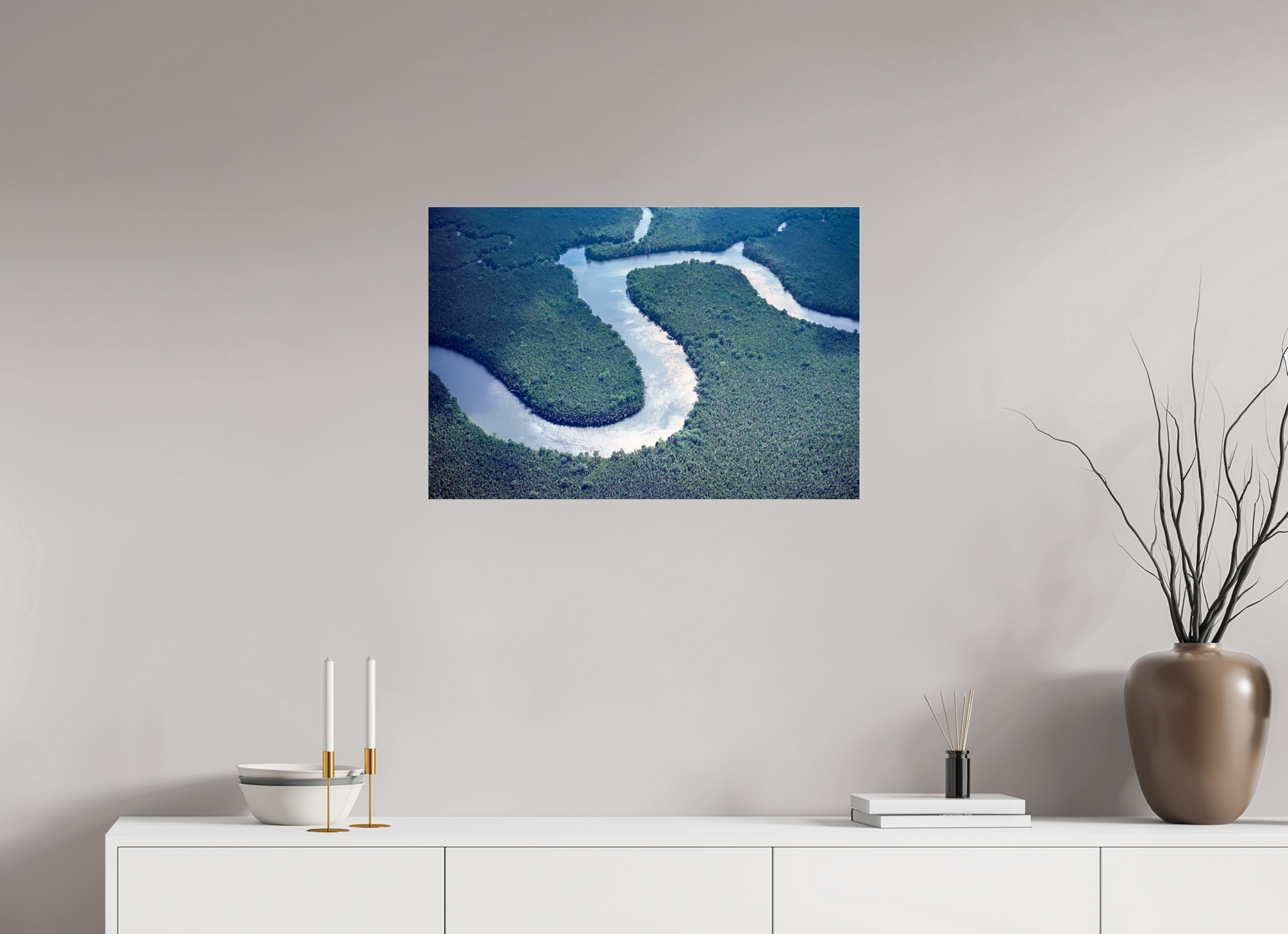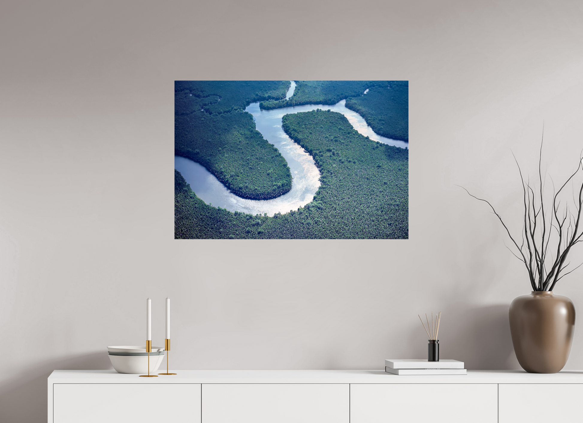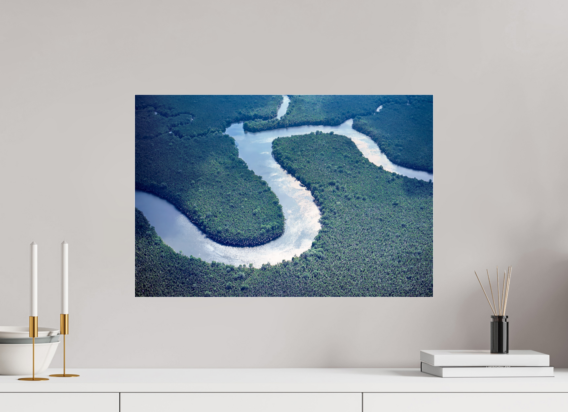A river meanders gracefully through the lush landscape, its banks lined with verdant foliage. This aerial view from 1979 showcases the natural beauty and intricate waterways of Indonesia, highlighting the vital connection between the land and its rivers.