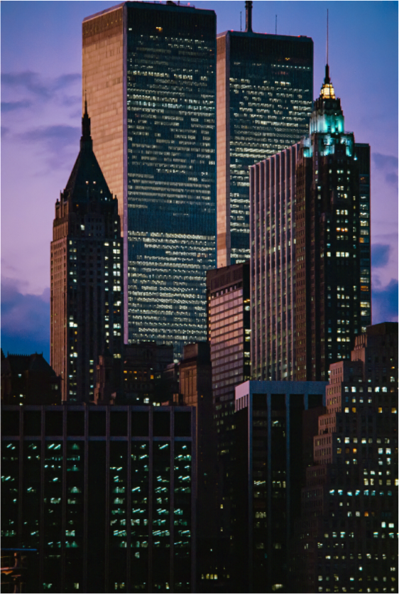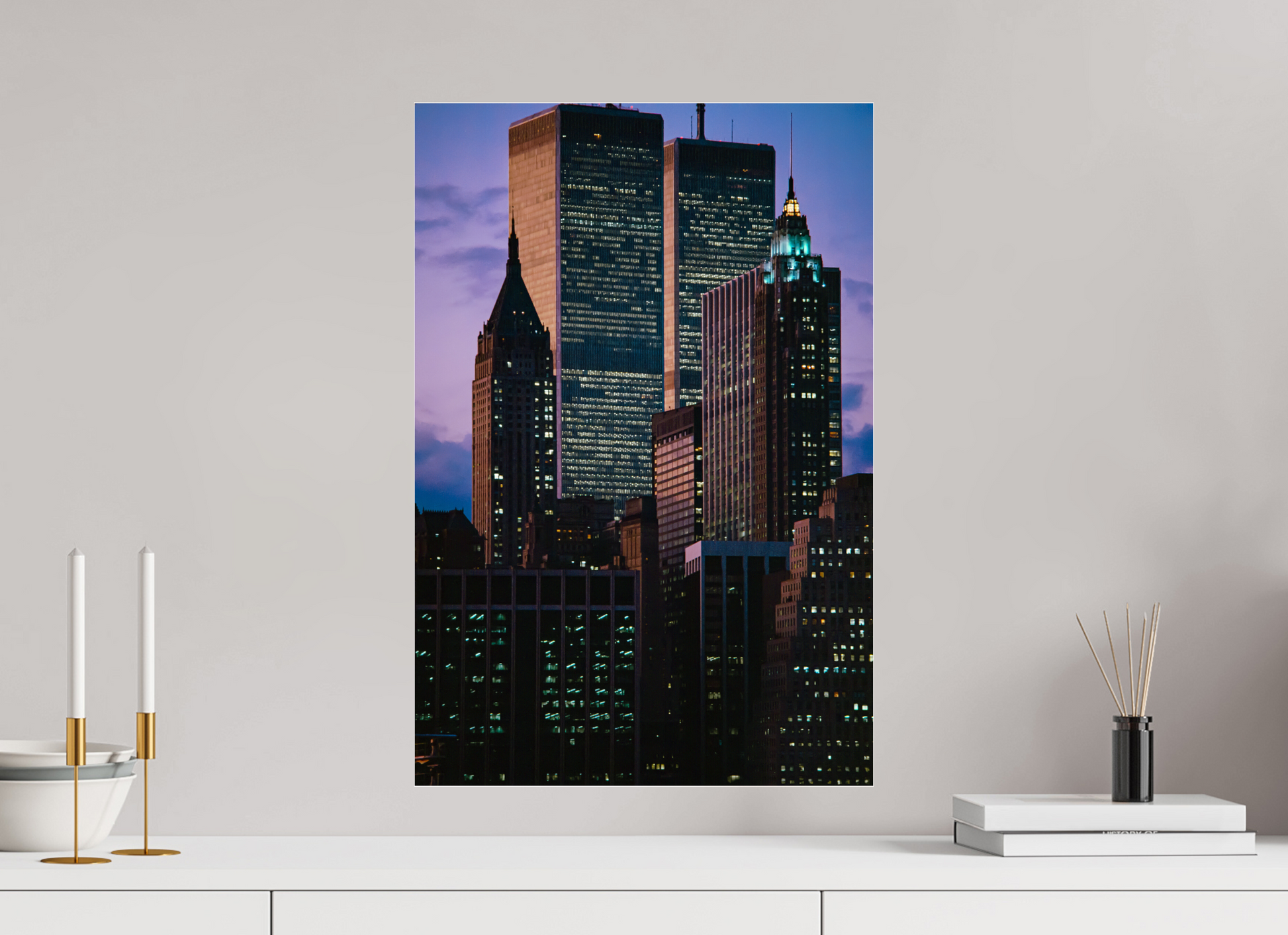 Bare trees reach towards the sky, their branches intertwining with the cityscape, creating a serene and unexpected oasis of nature amidst the concrete jungle.