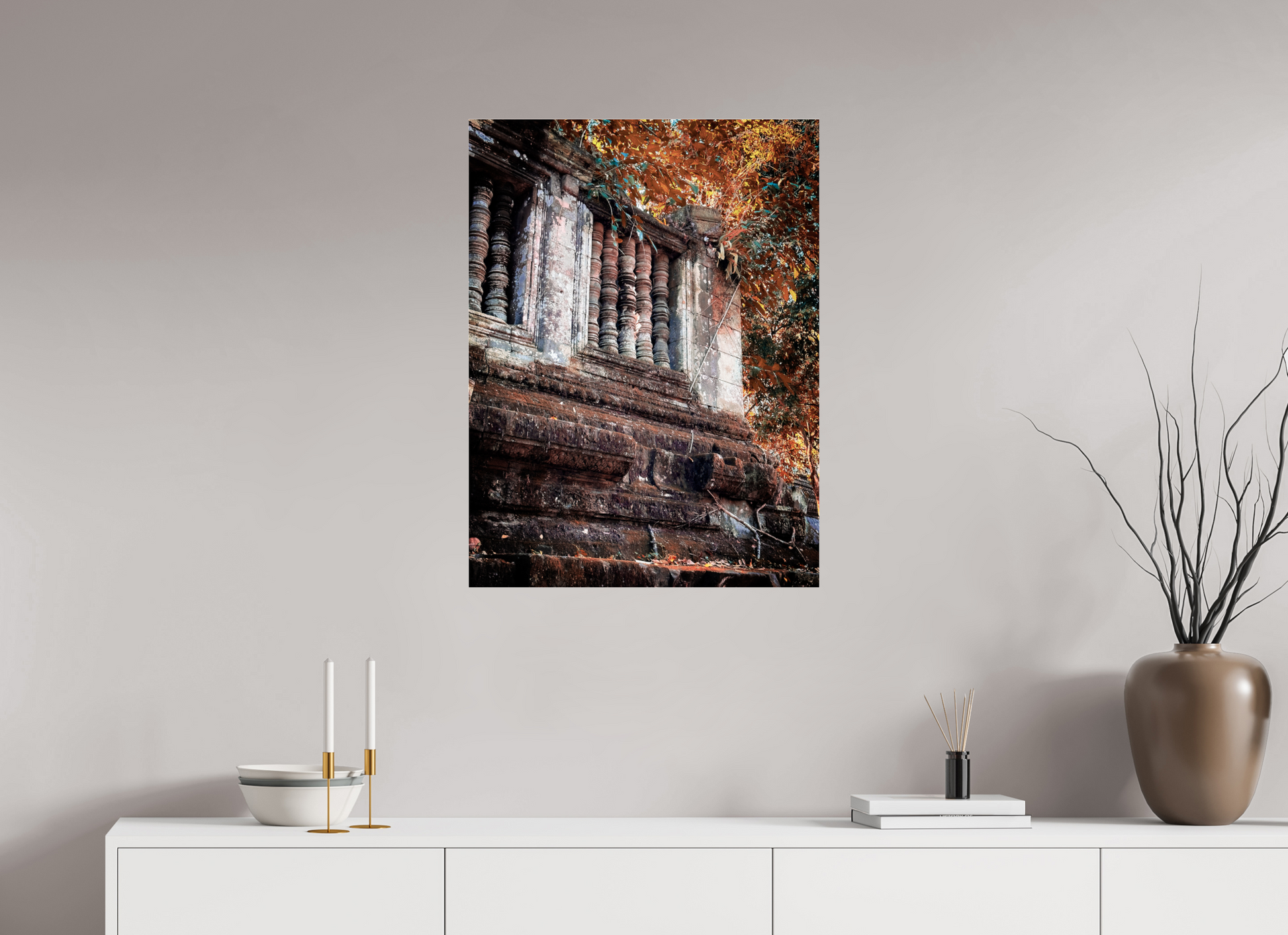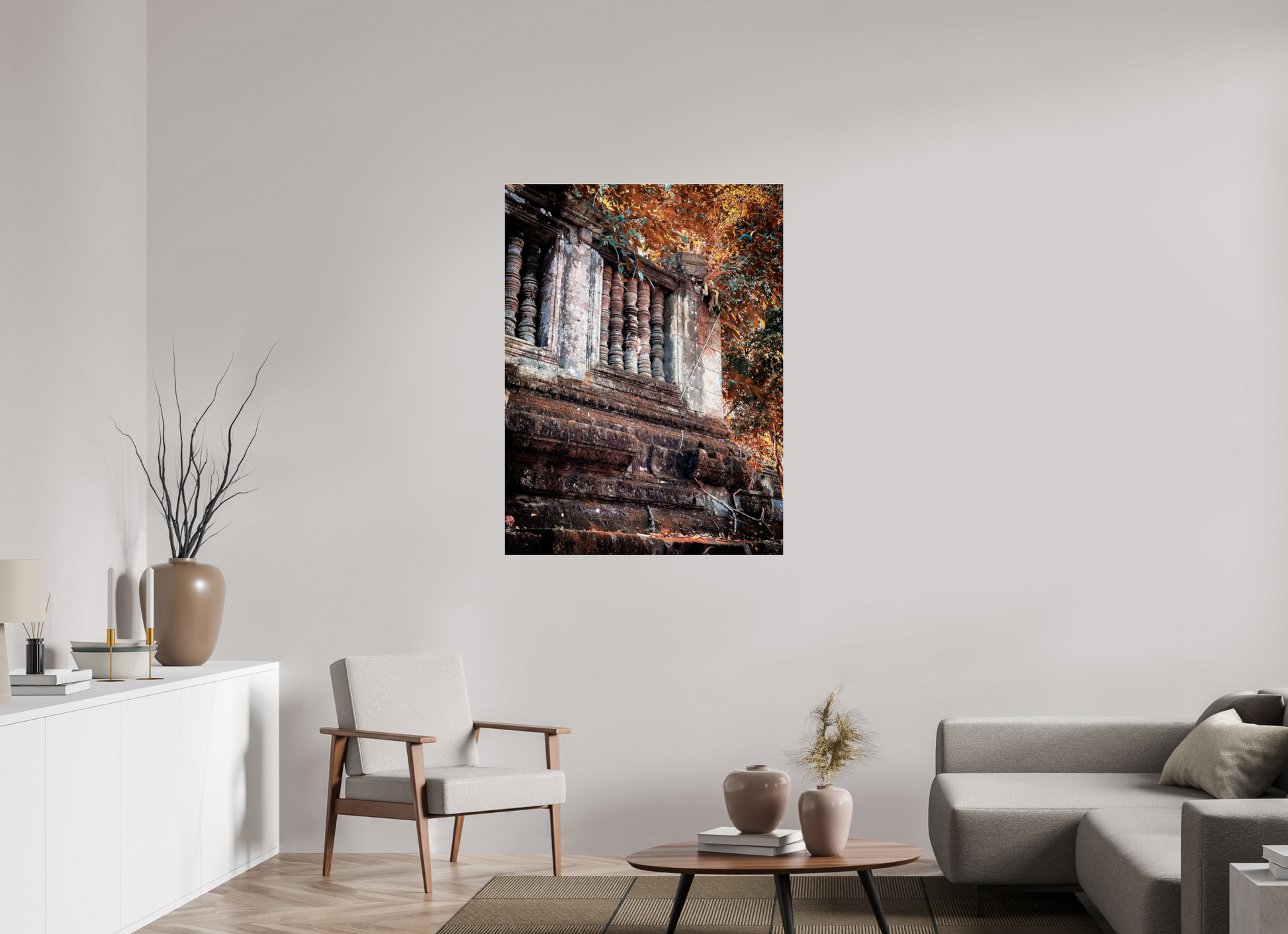 The ancient stones of Ta Prohm are embraced by the gnarled roots of a massive tree, creating a mesmerizing dance of nature and architecture. The contrast between the muted greys of the weathered stone and the deep browns of the twisting roots creates a striking visual tableau. The soft light filtering through the jungle canopy casts dappled shadows, adding depth and texture to the scene. This image captures the enduring beauty of Ta Prohm, where nature and history coexist in a delicate balance. The intricate details of the stonework and the powerful roots evoke a sense of reverence and awe.