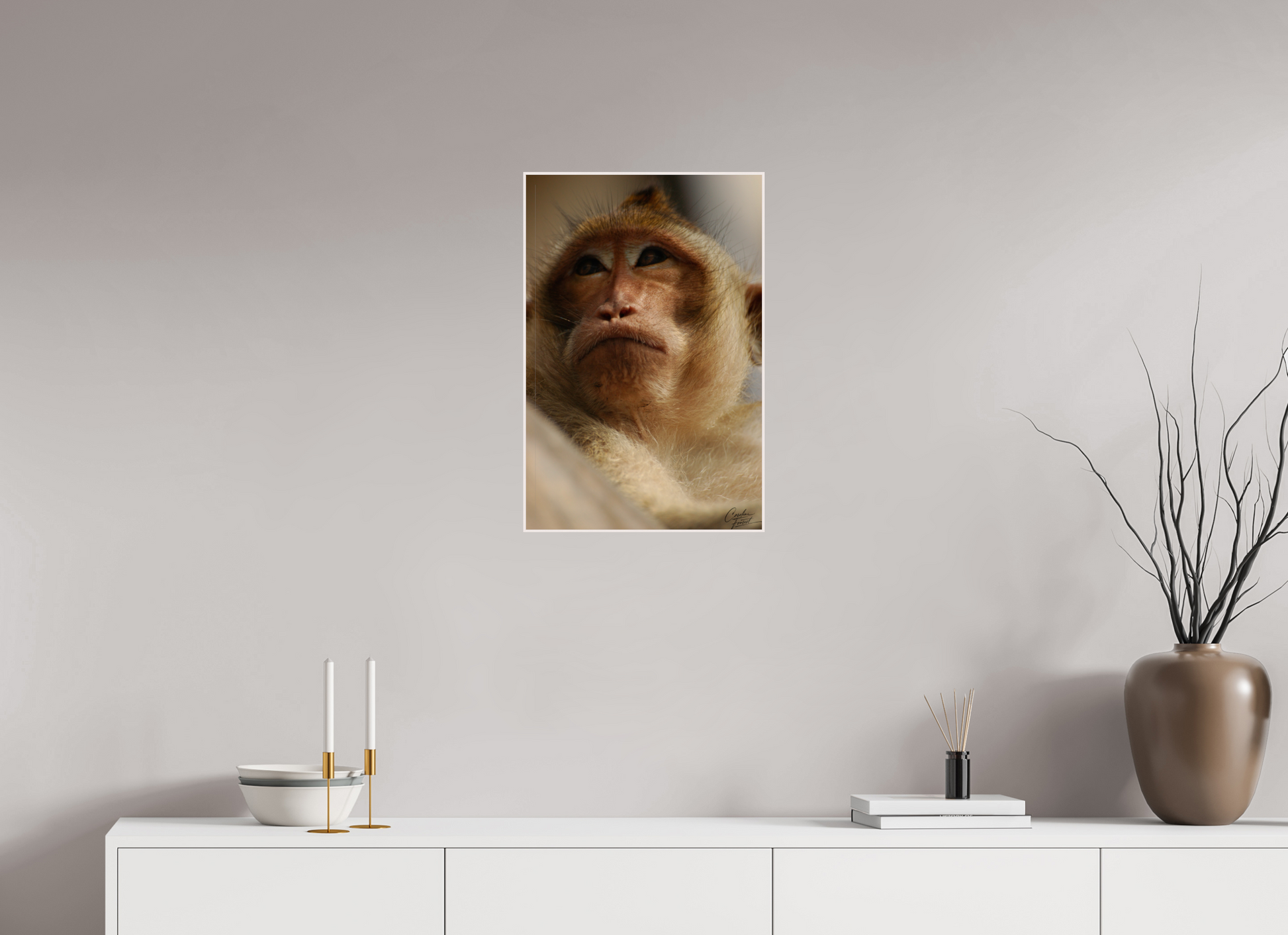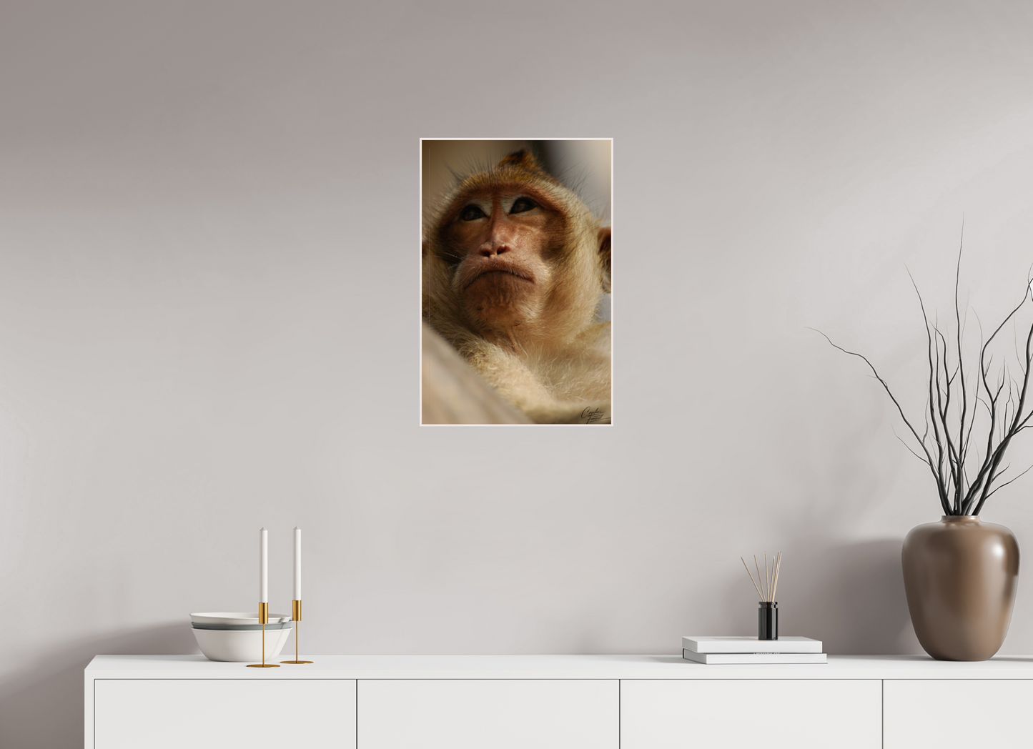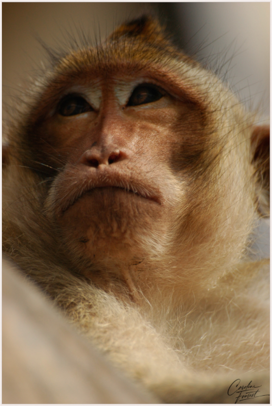 This close-up captures the thoughtful expression of a monkey, its eyes reflecting a depth of emotion and intelligence. The soft lighting and detailed texture of its fur bring out the gentle yet wild essence of this captivating creature, evoking a sense of connection with the natural world.