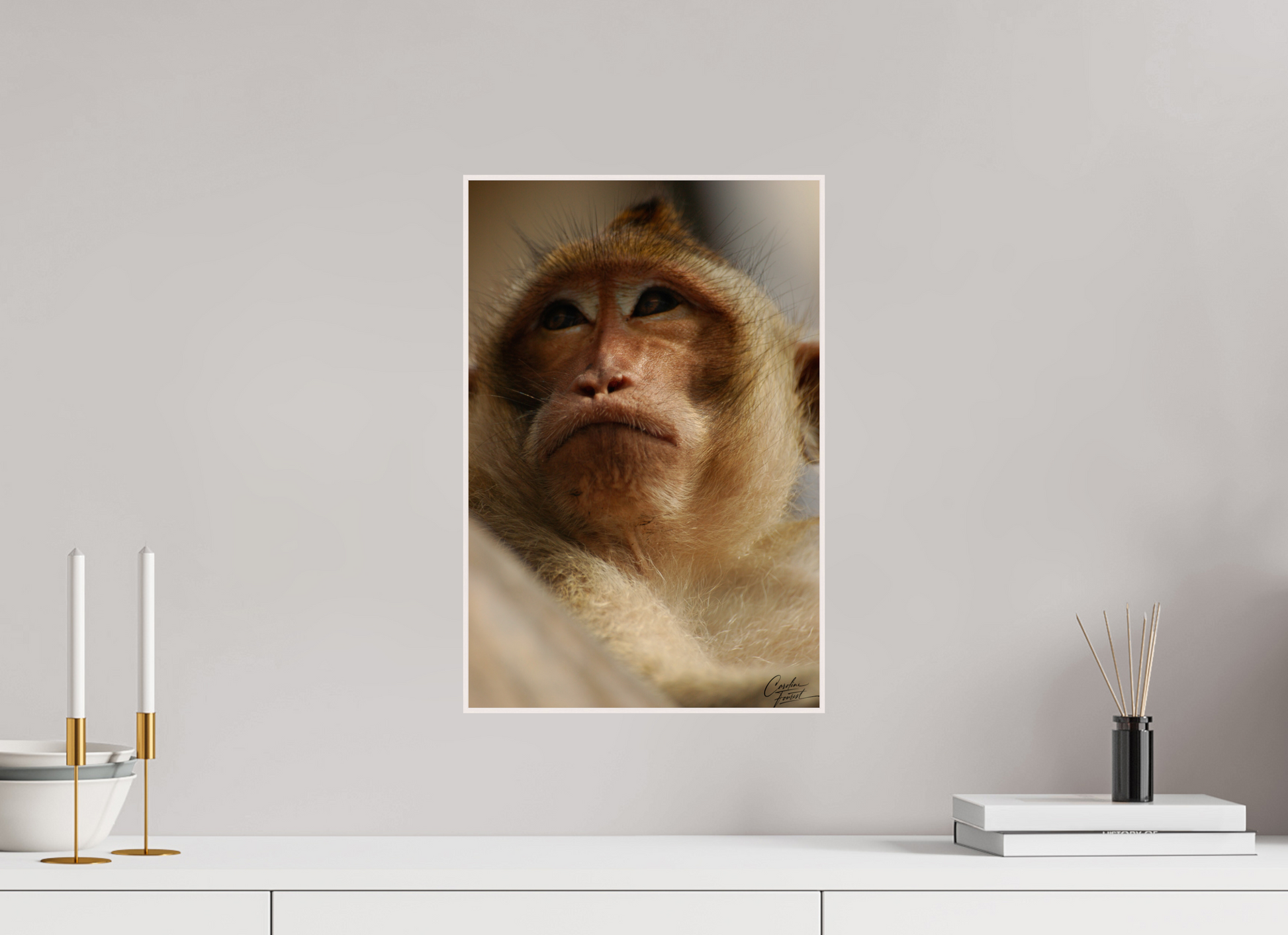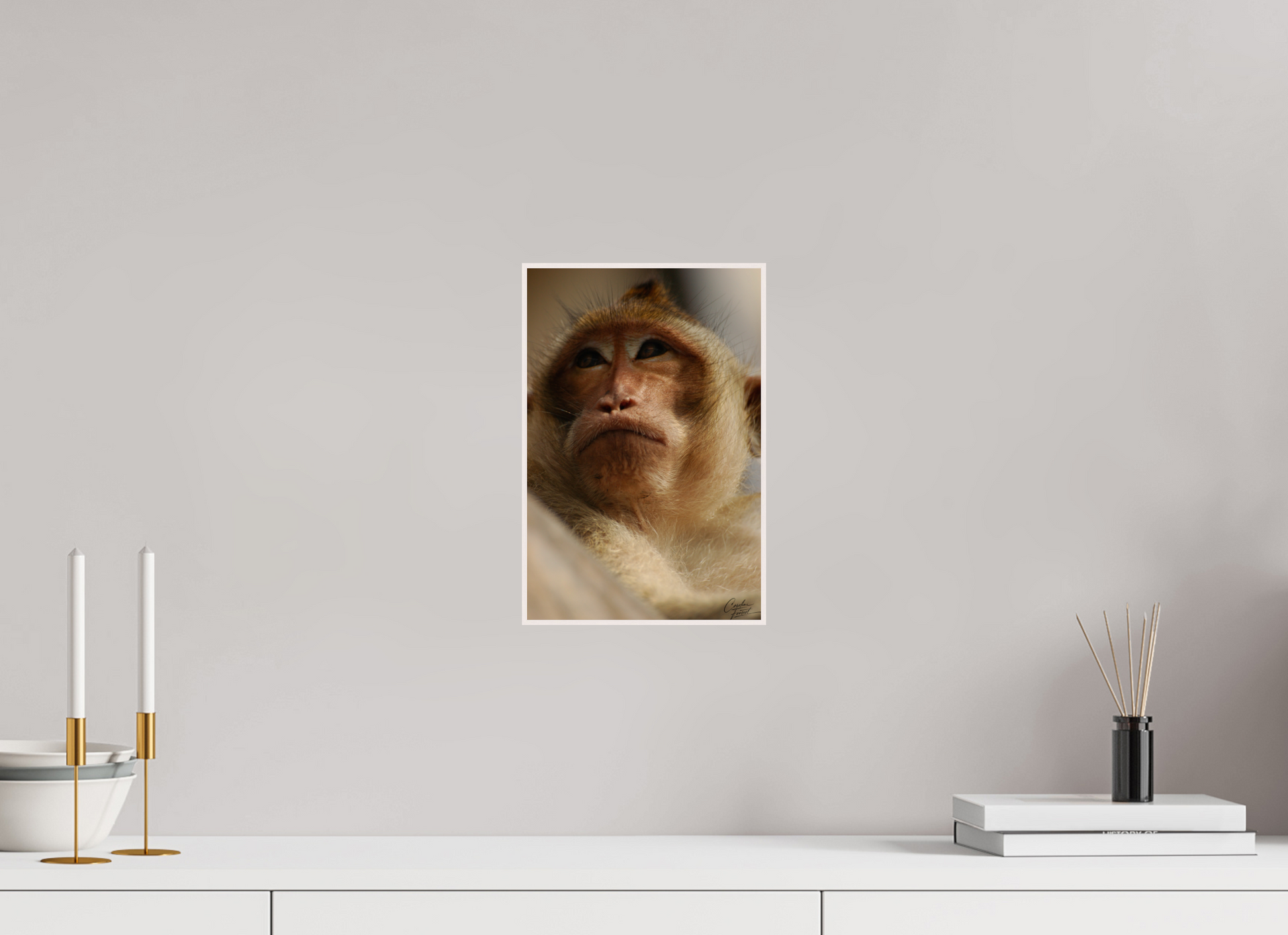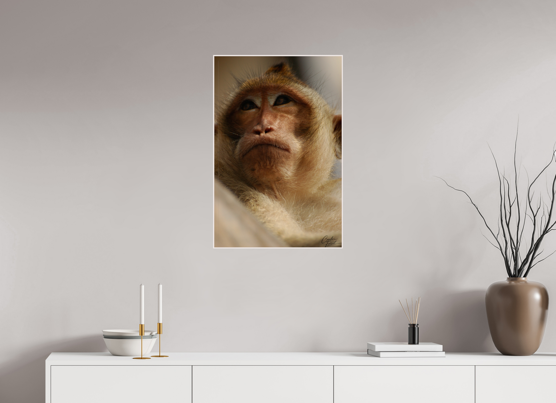 This close-up captures the thoughtful expression of a monkey, its eyes reflecting a depth of emotion and intelligence. The soft lighting and detailed texture of its fur bring out the gentle yet wild essence of this captivating creature, evoking a sense of connection with the natural world.
