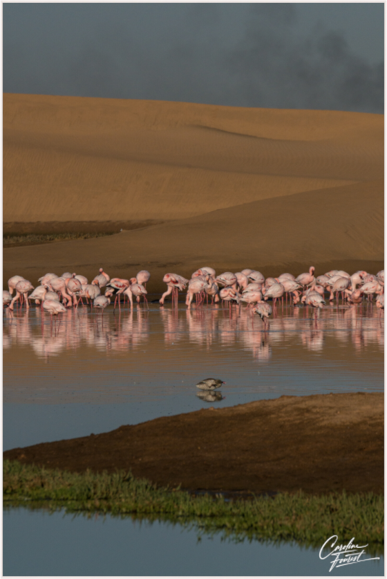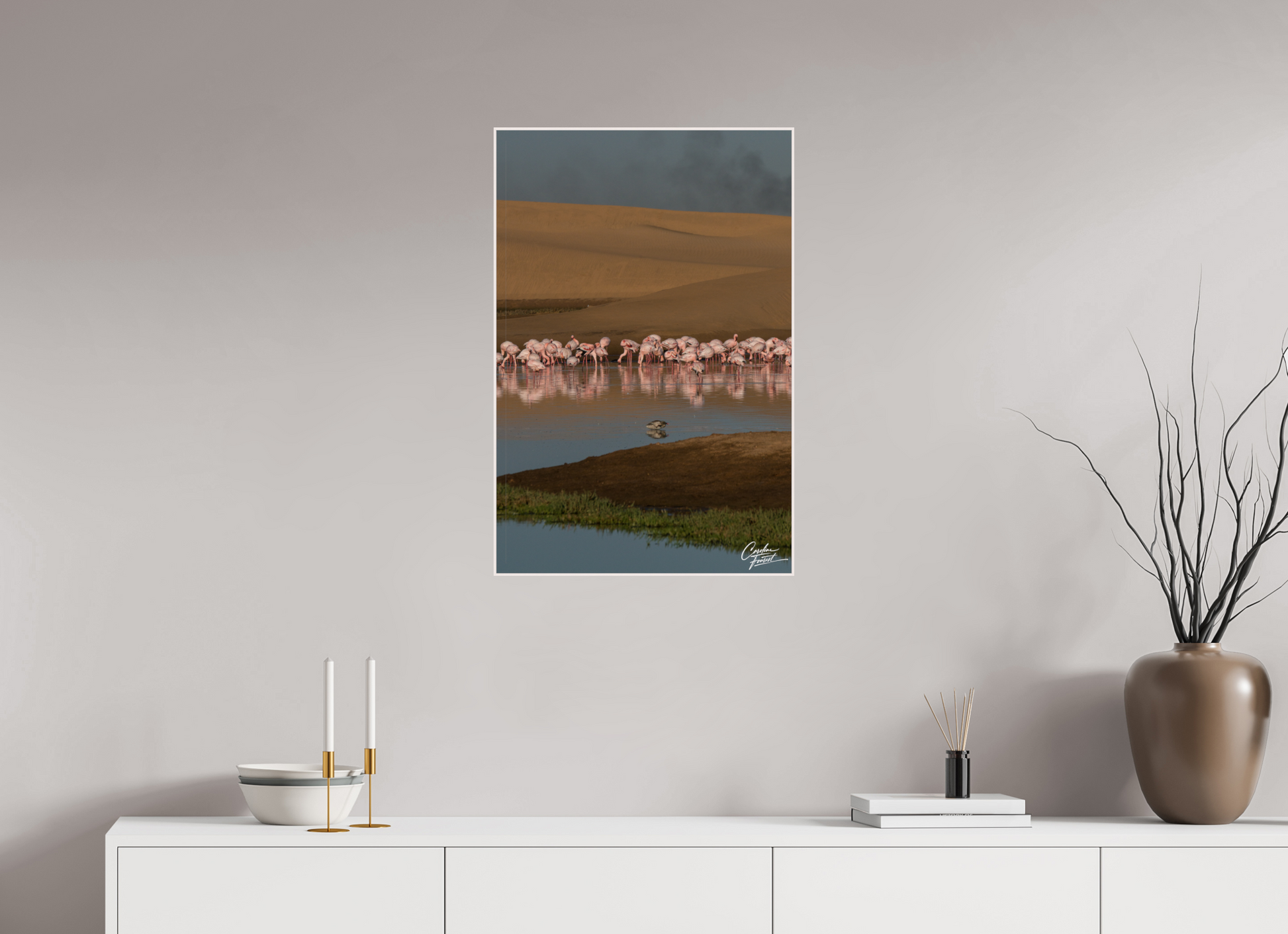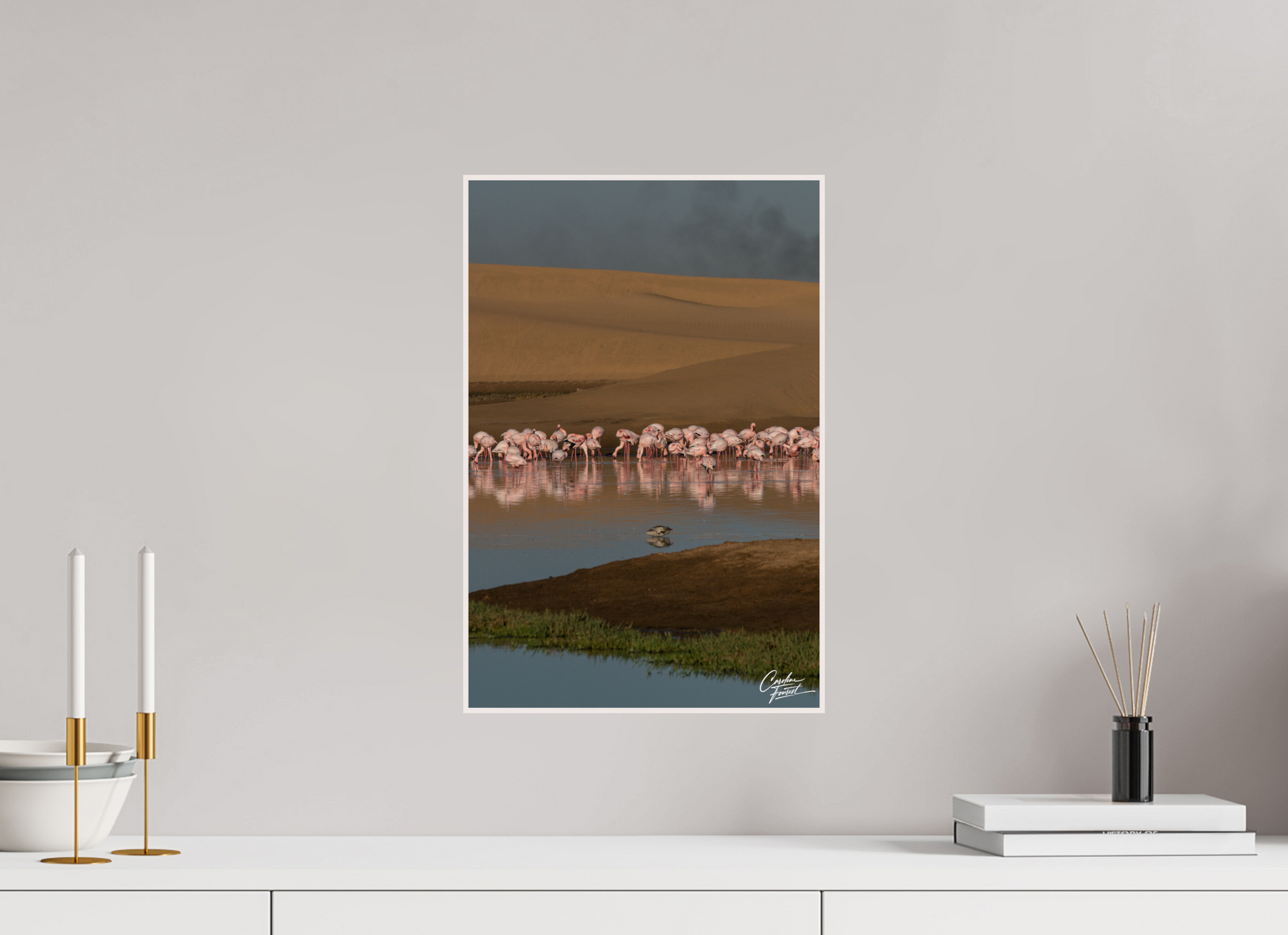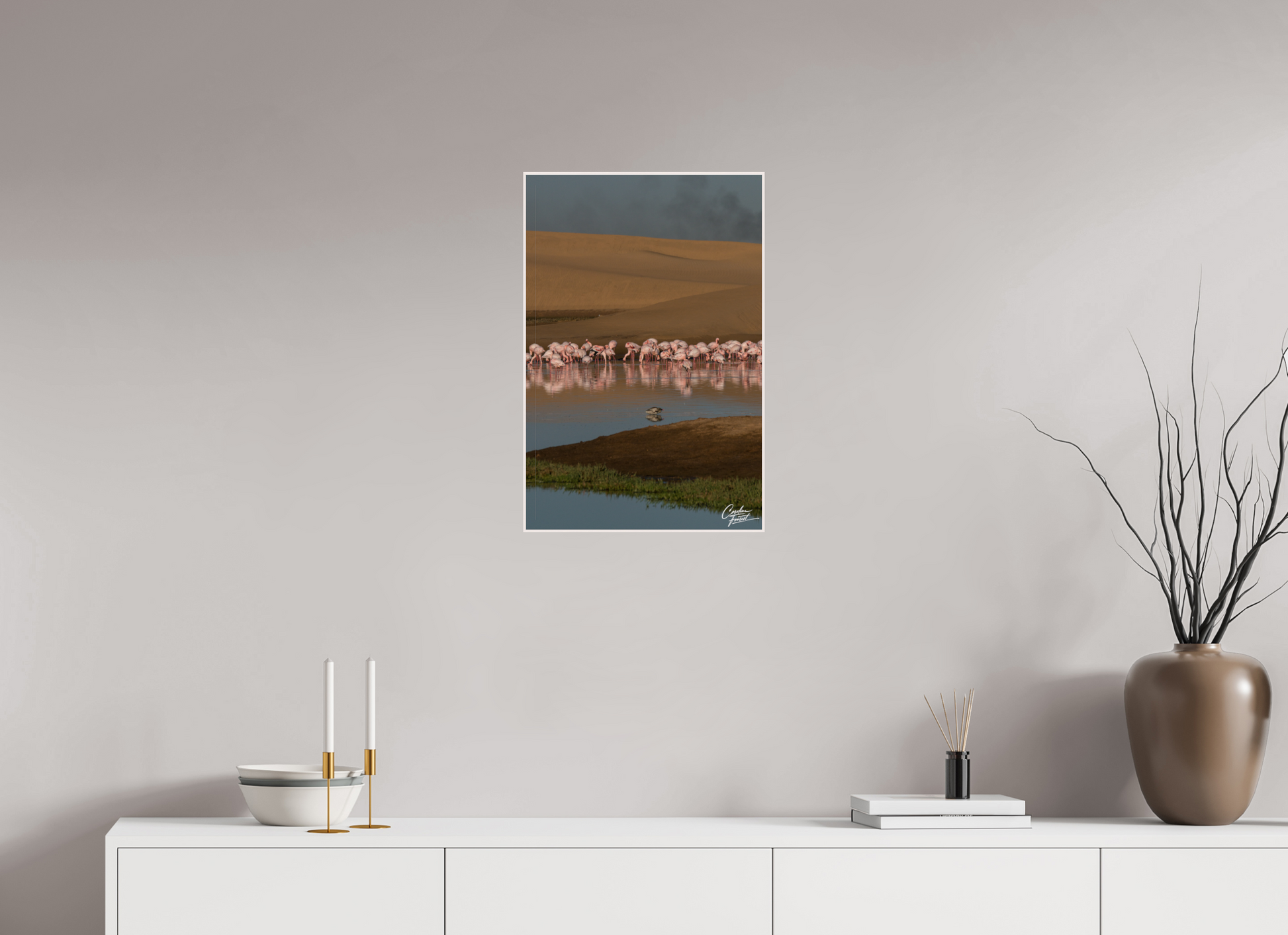 Flamingos capture the essence of grace and freedom, their wings outstretched against the golden hues of the sky, creating a scene of timeless beauty.