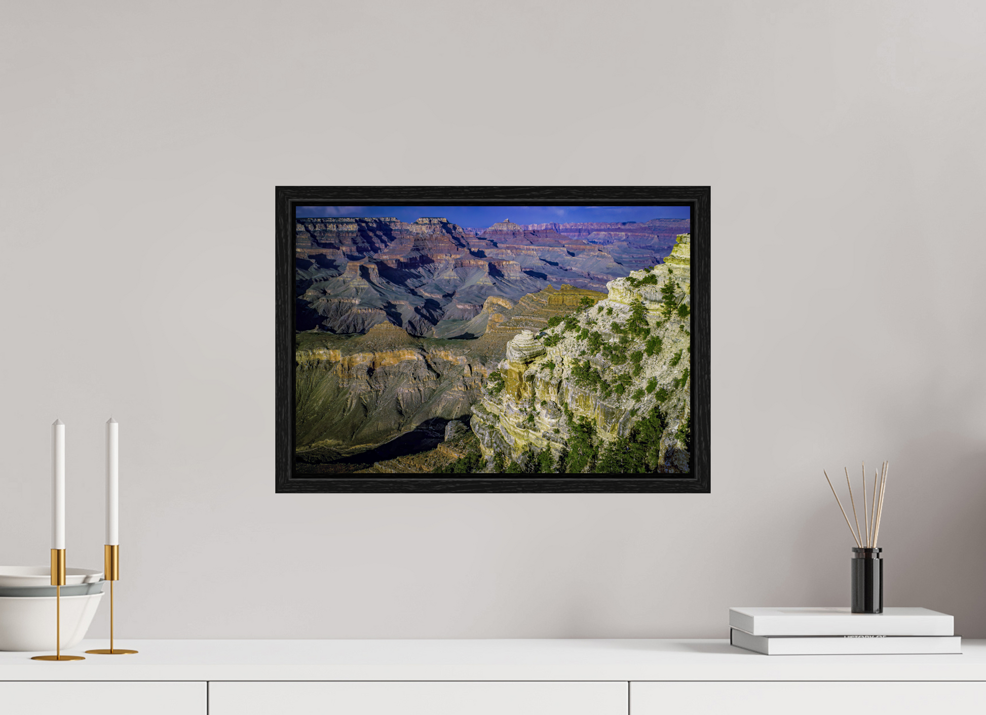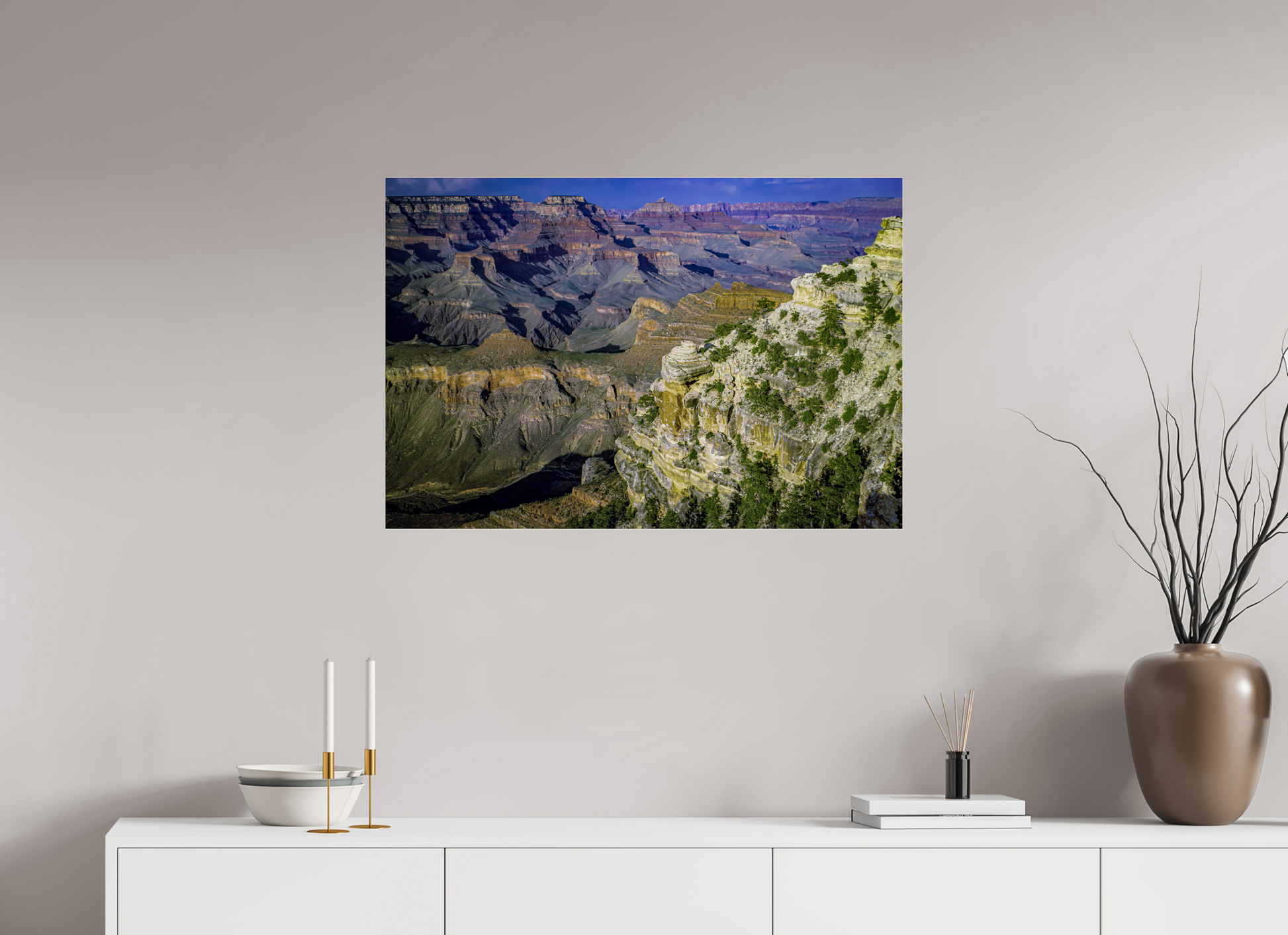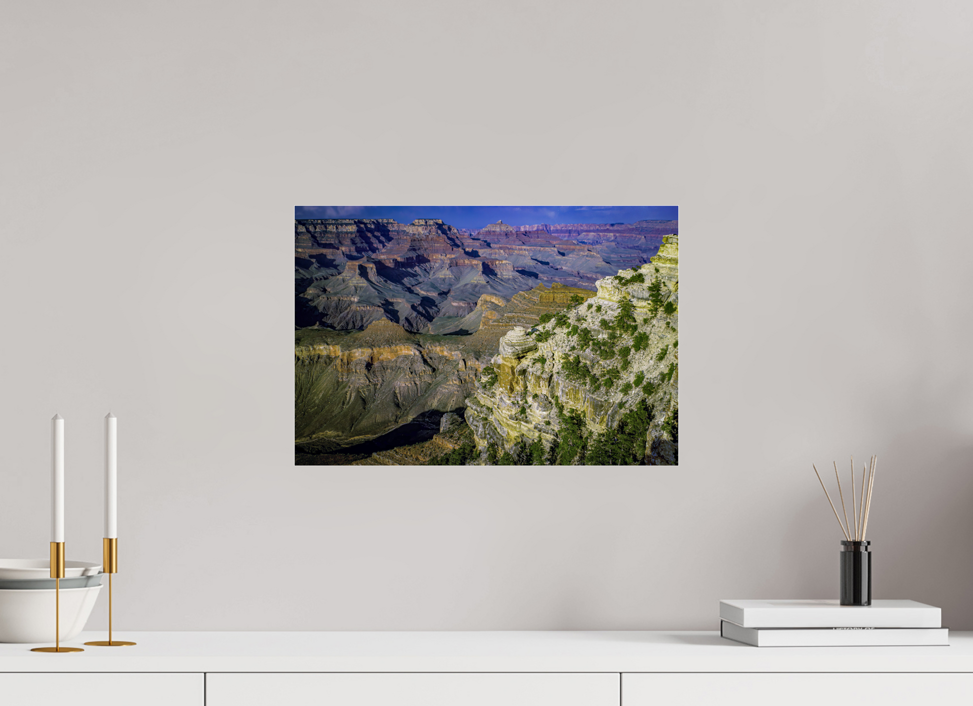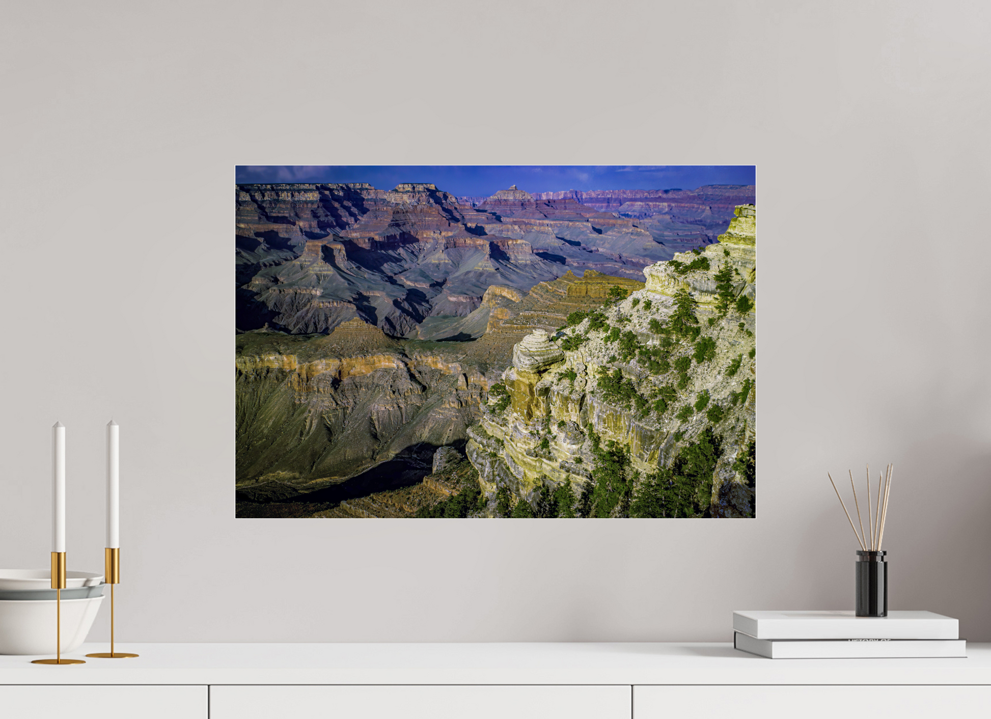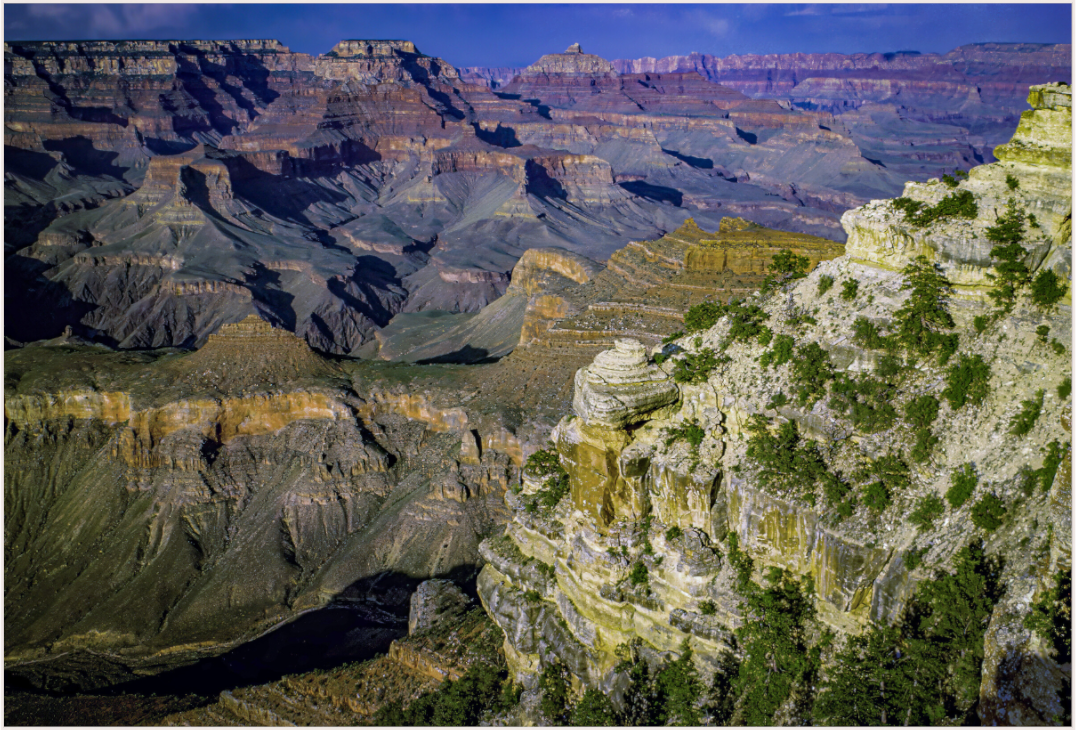 The canyon walls stretch out in a symphony of colors and textures, each layer telling a story of the earth's majestic history, inviting you to lose yourself in its grandeur.