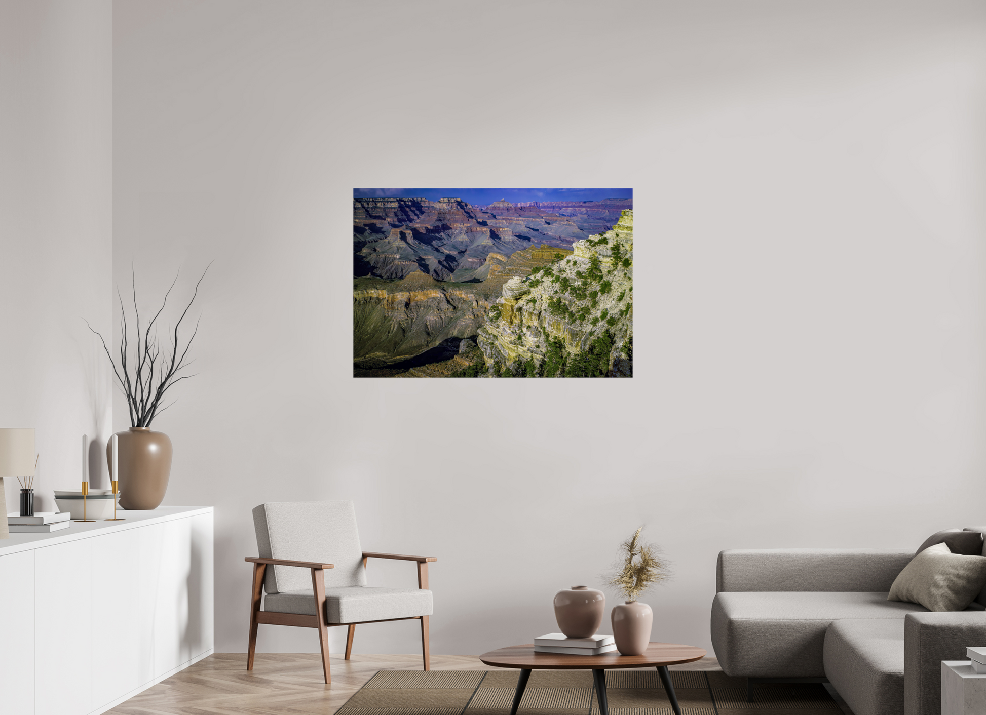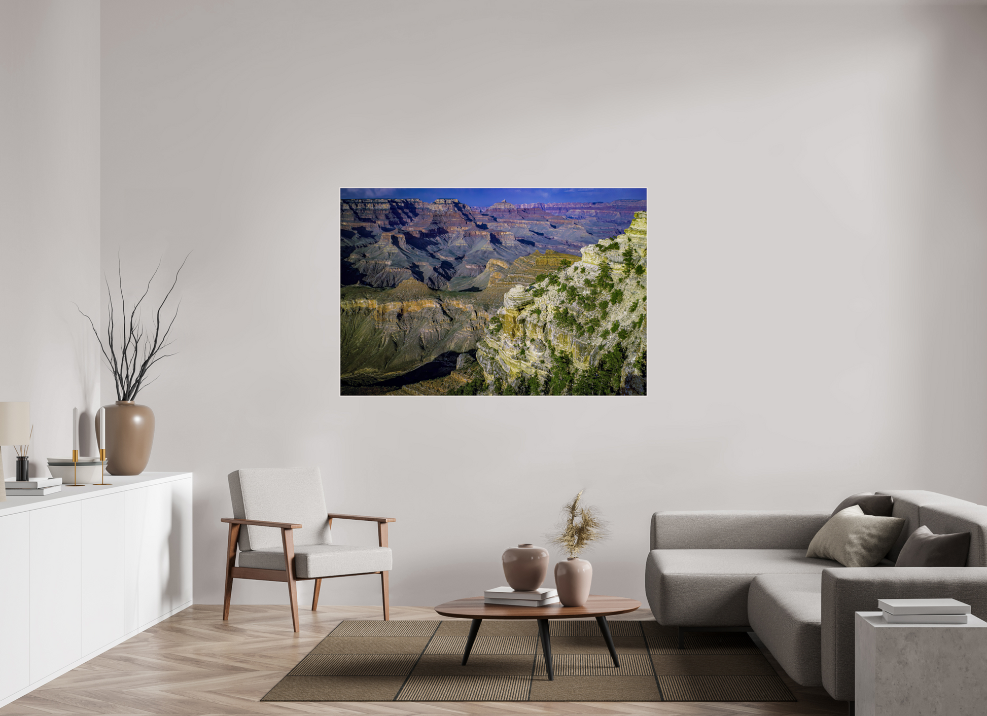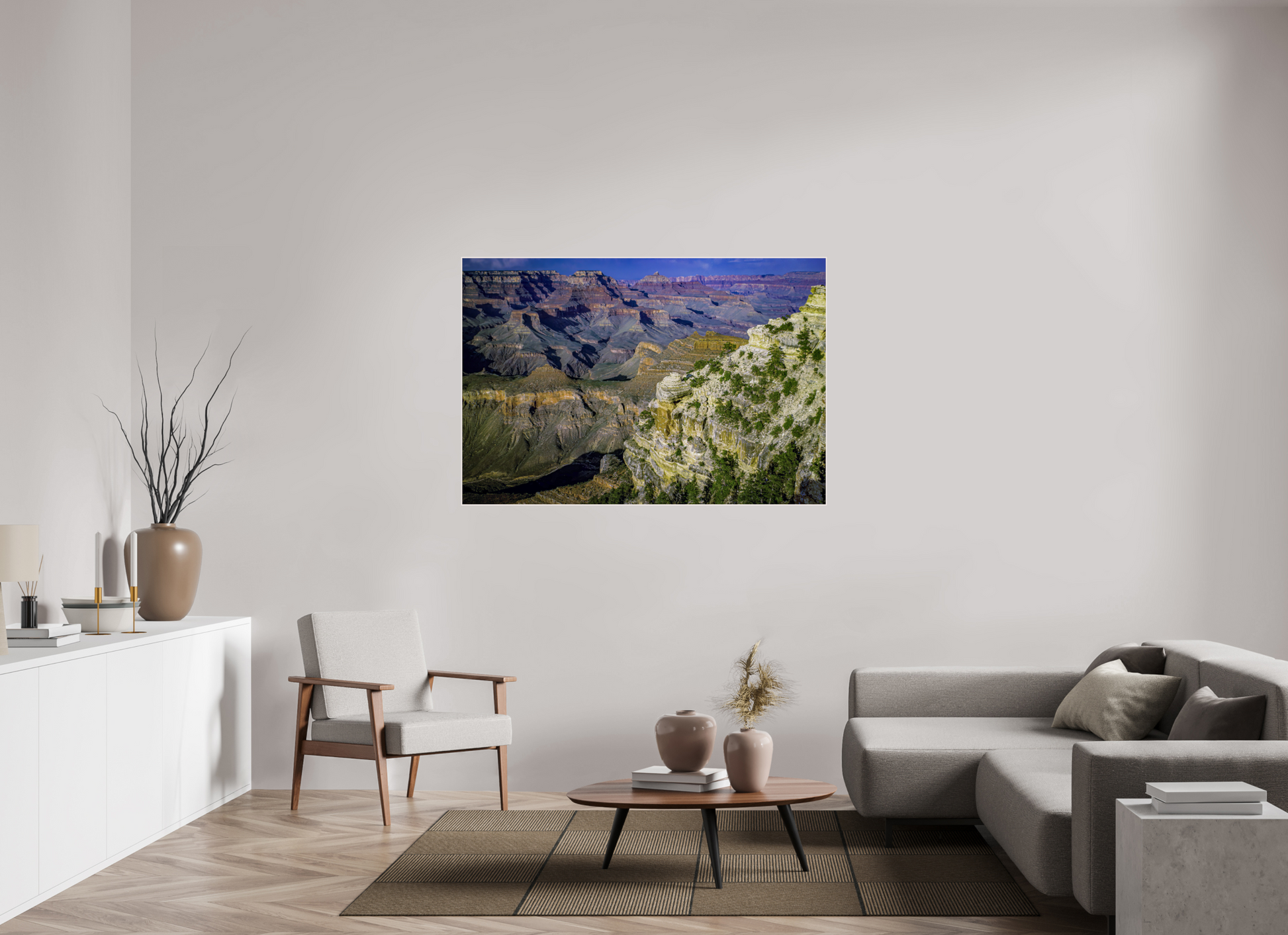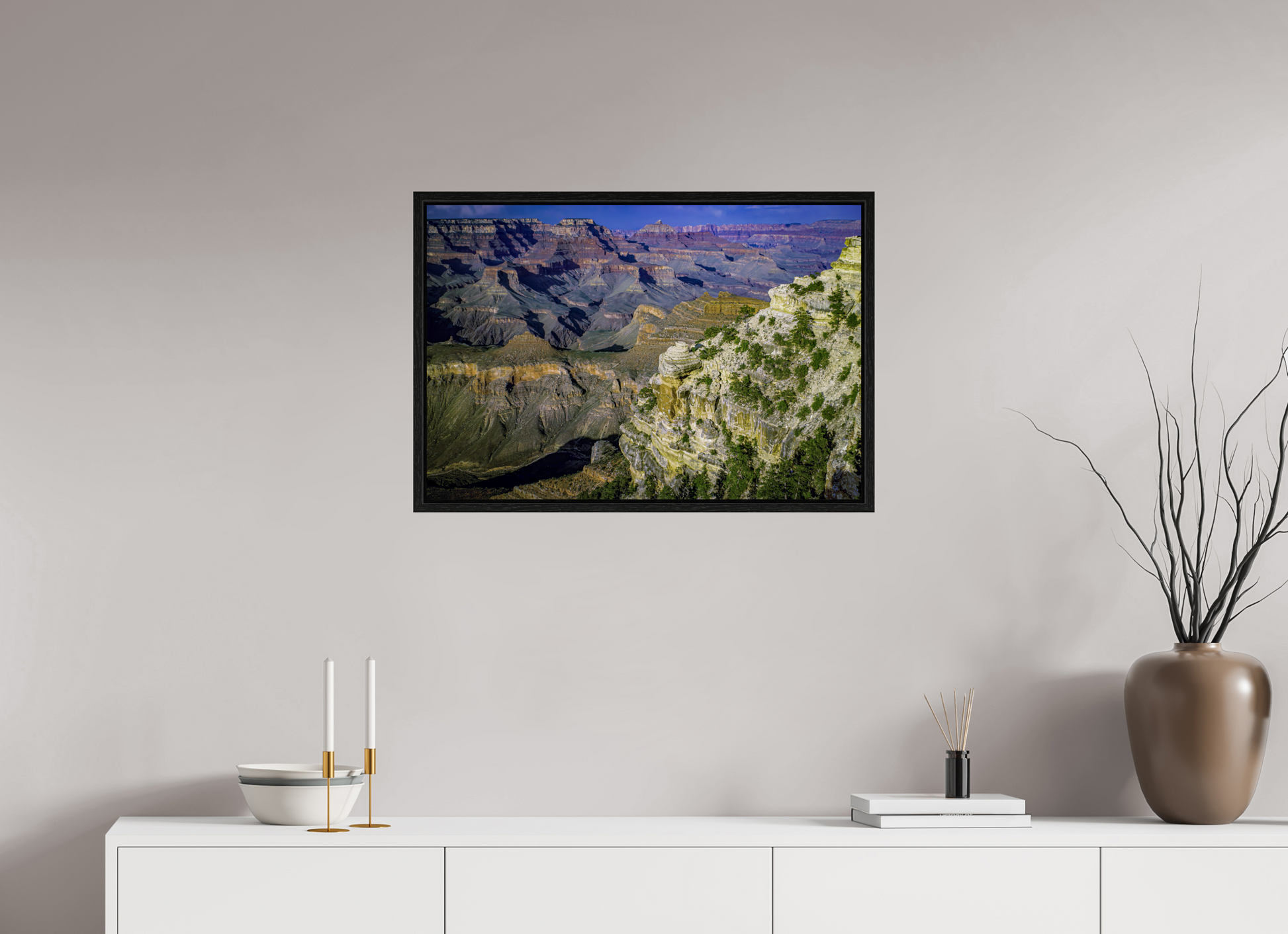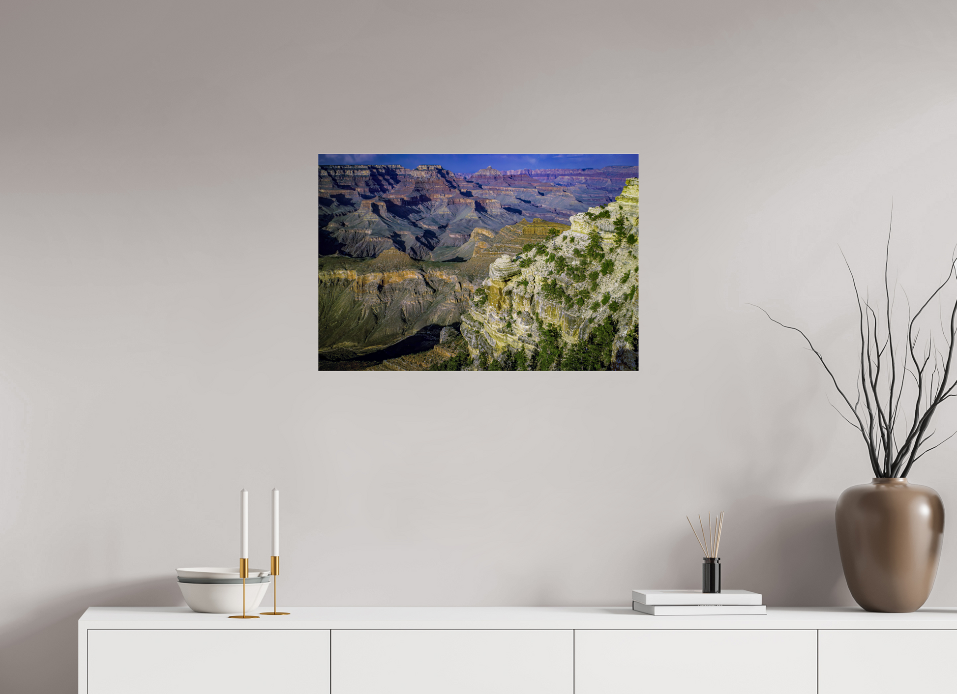 The canyon walls stretch out in a symphony of colors and textures, each layer telling a story of the earth's majestic history, inviting you to lose yourself in its grandeur.