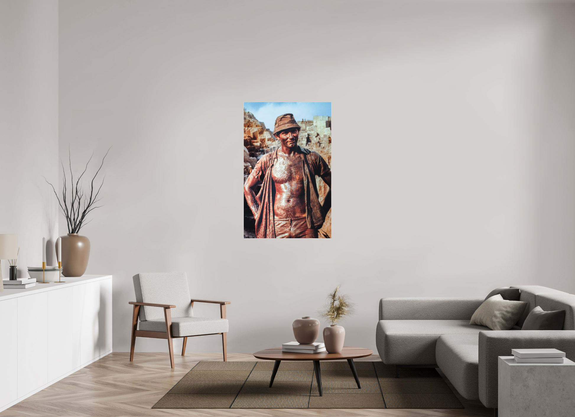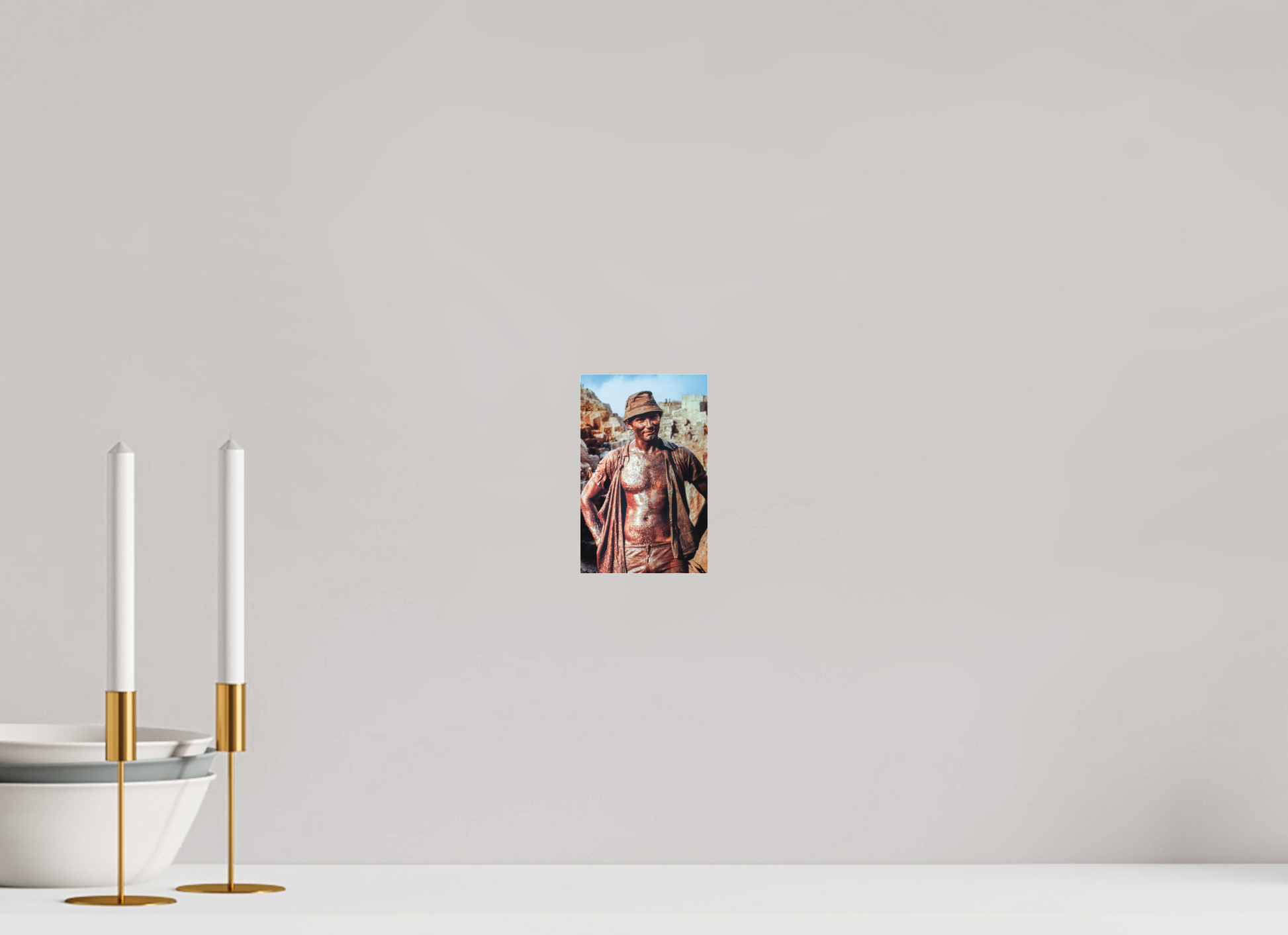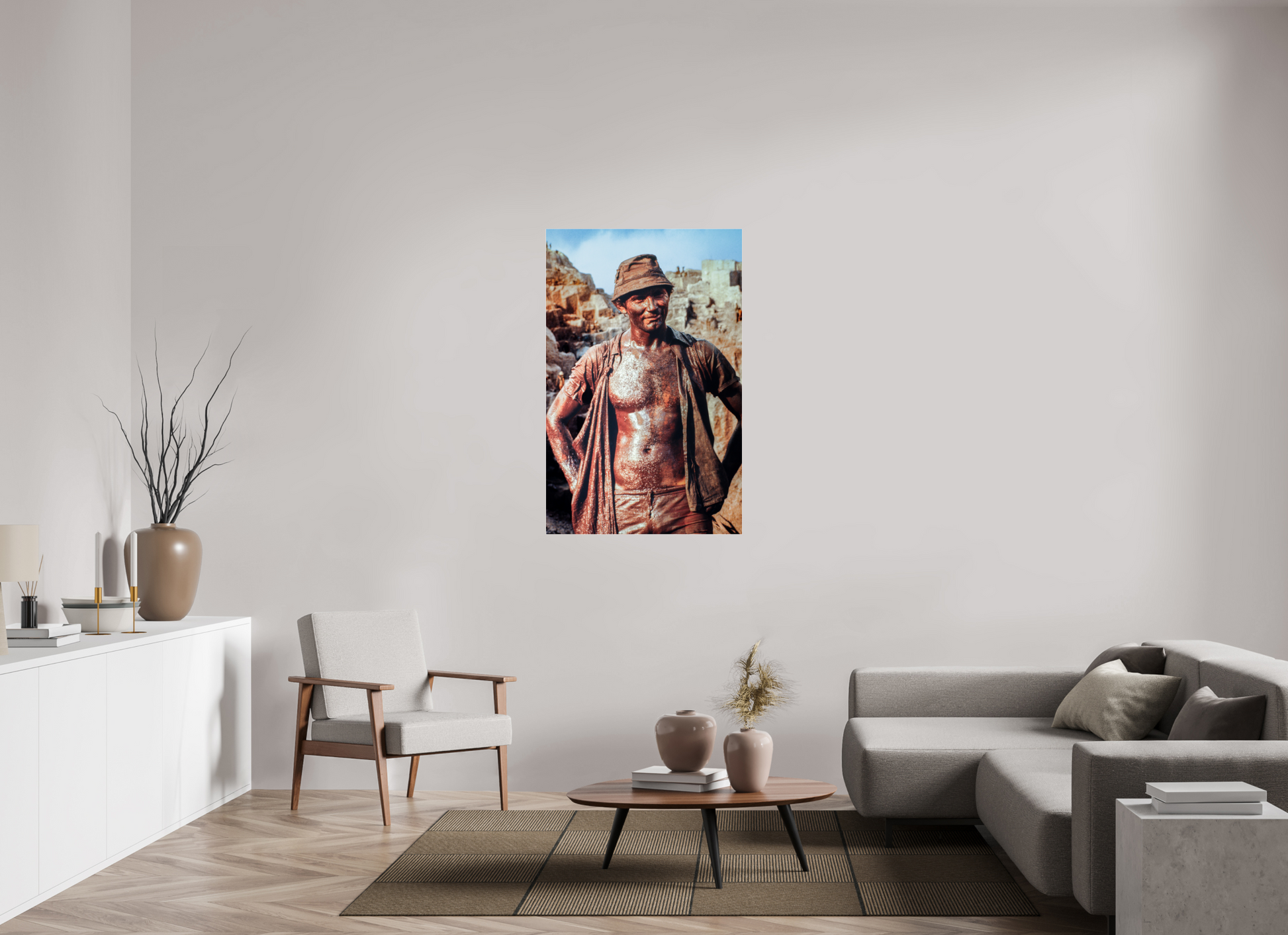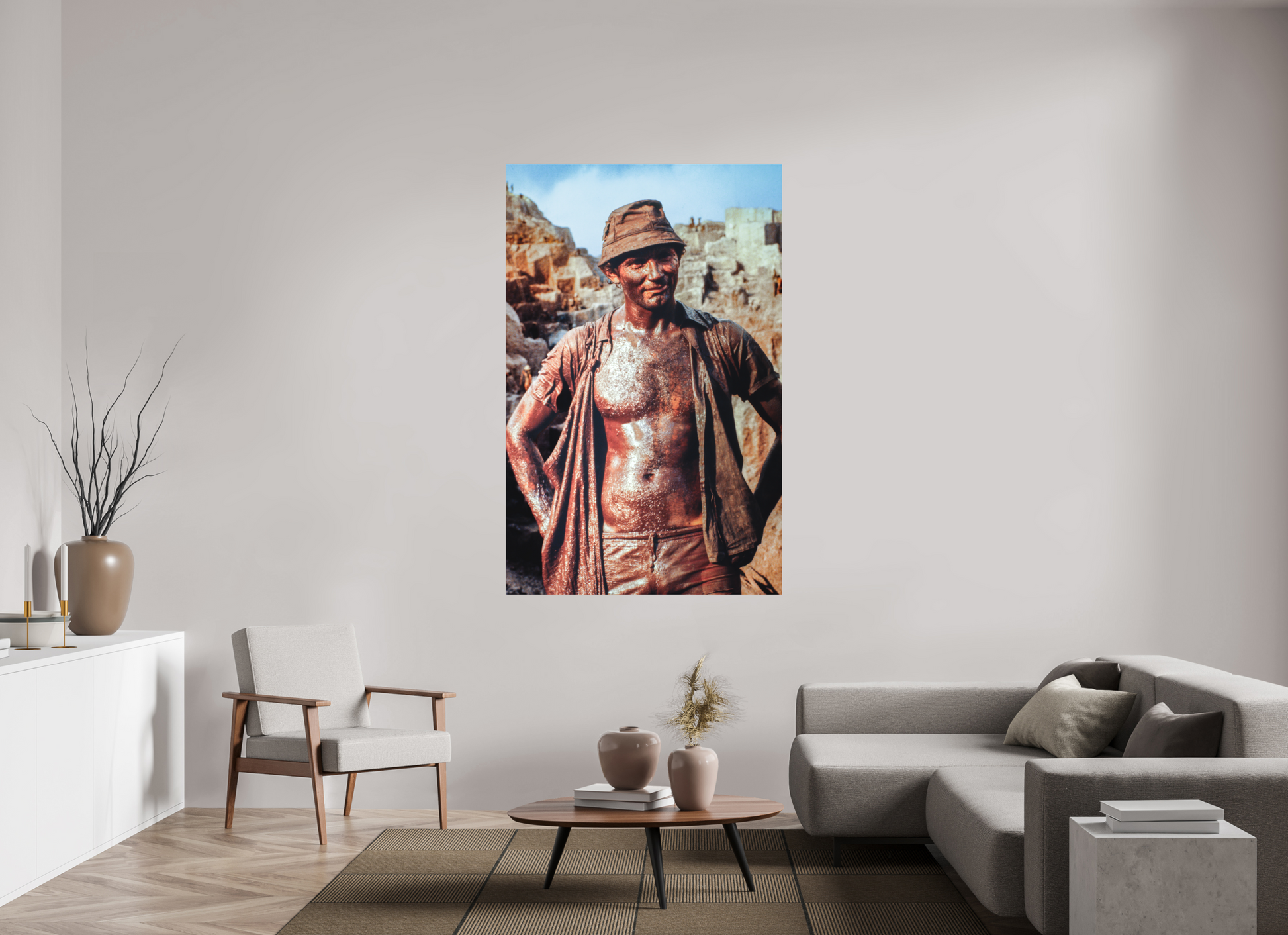 A miner stands proudly amidst the rugged terrain of Sierra Pelada, Brazil, his body coated in the golden dust he seeks, a testament to the relentless pursuit of dreams in the face of adversity.