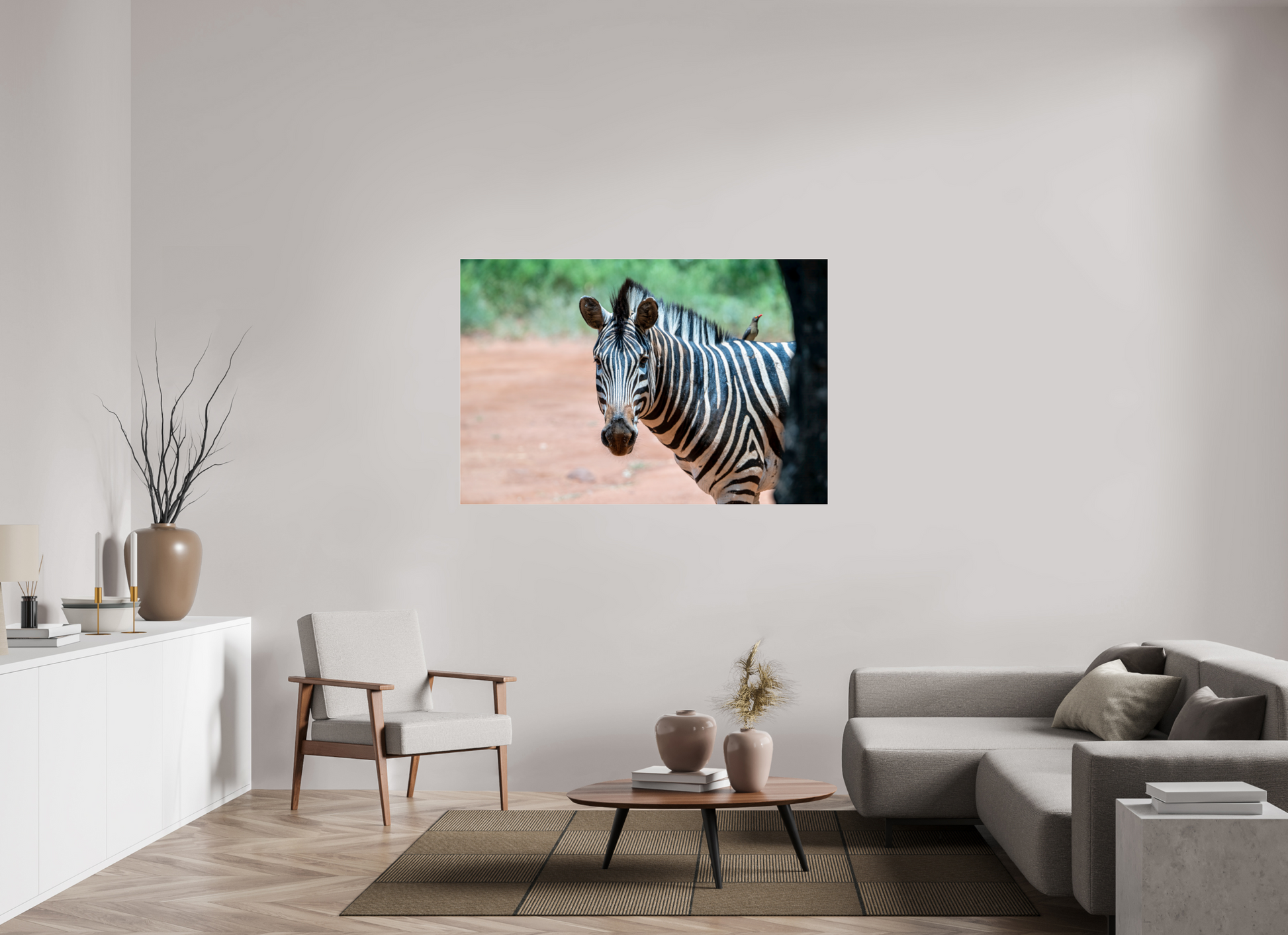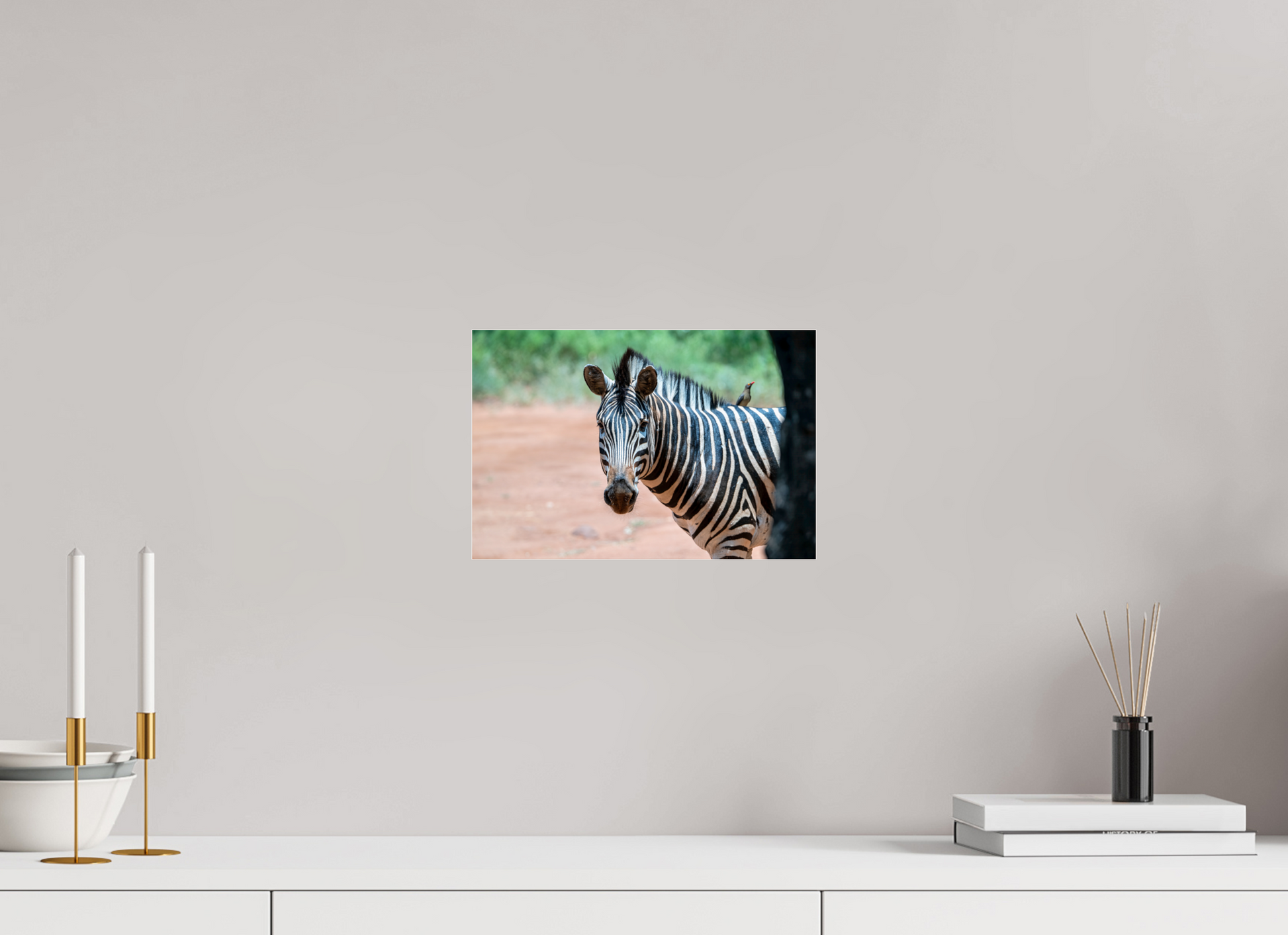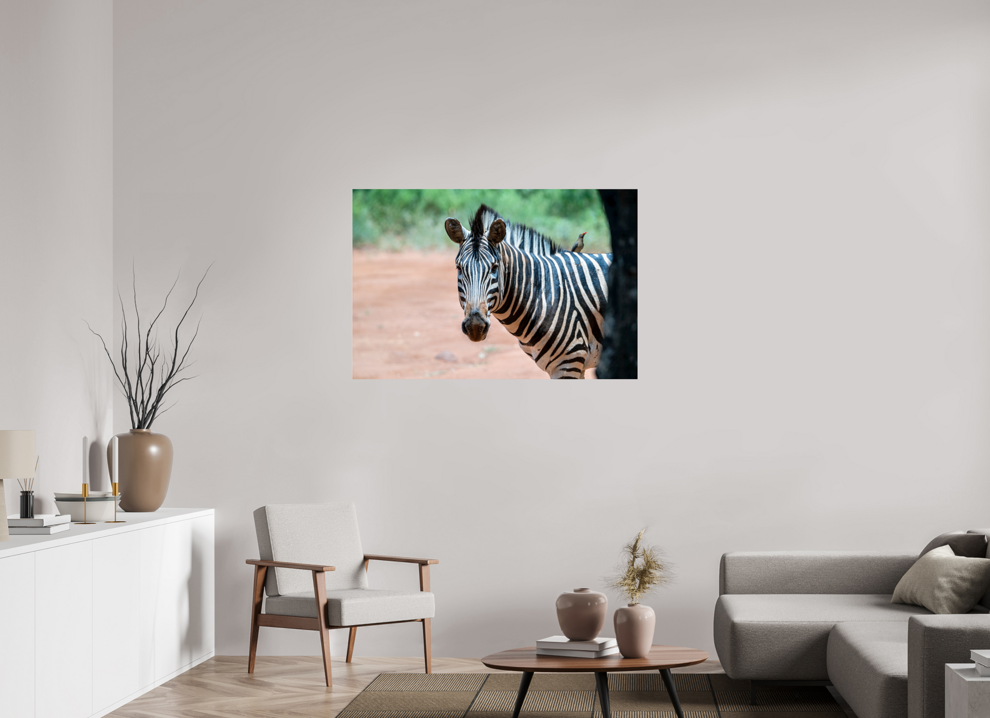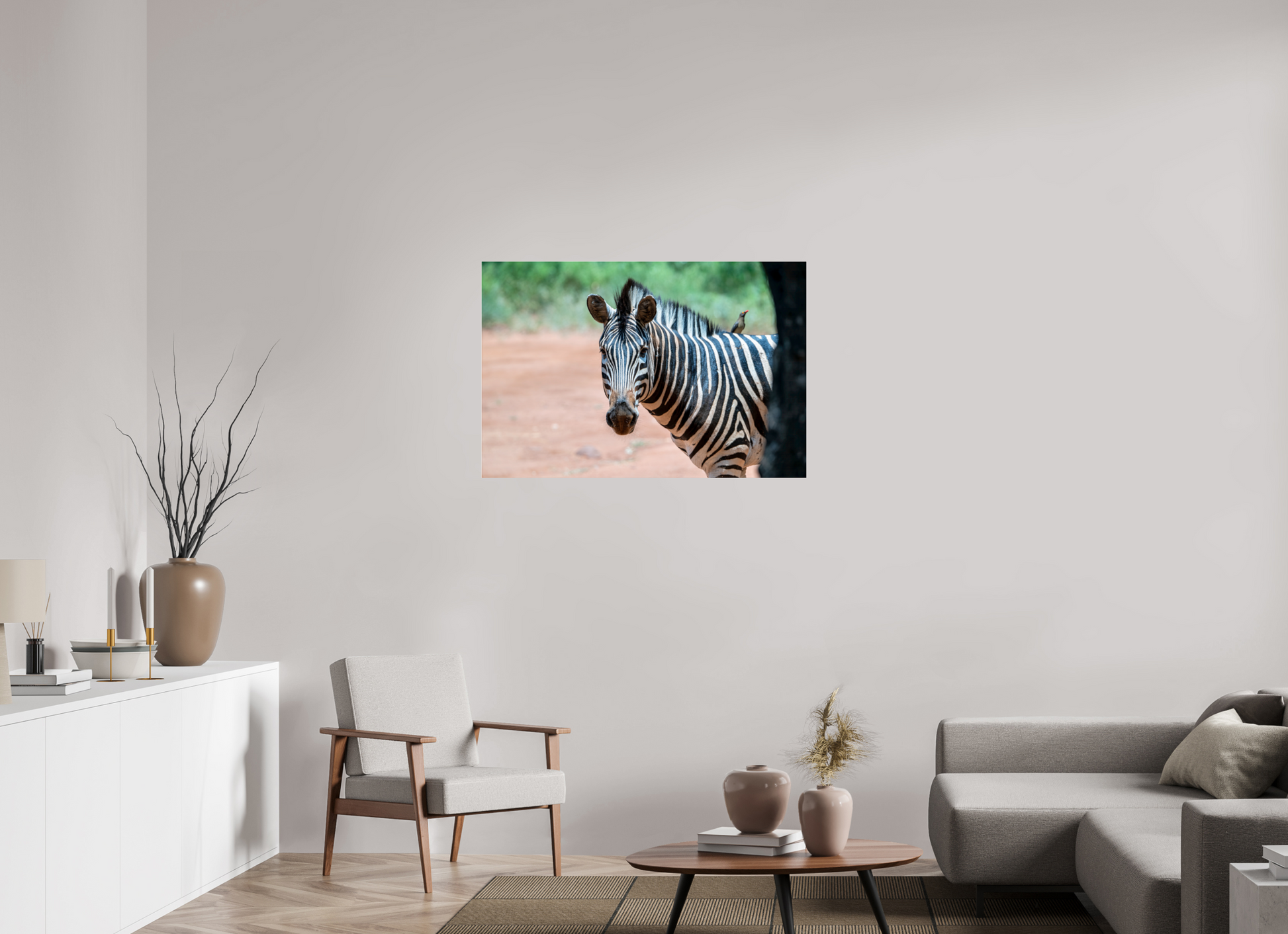 A zebra stands gracefully under the shade of a tree, its striking black and white stripes contrasting beautifully with the earthy tones of the savannah, capturing a moment of peaceful coexistence with nature.