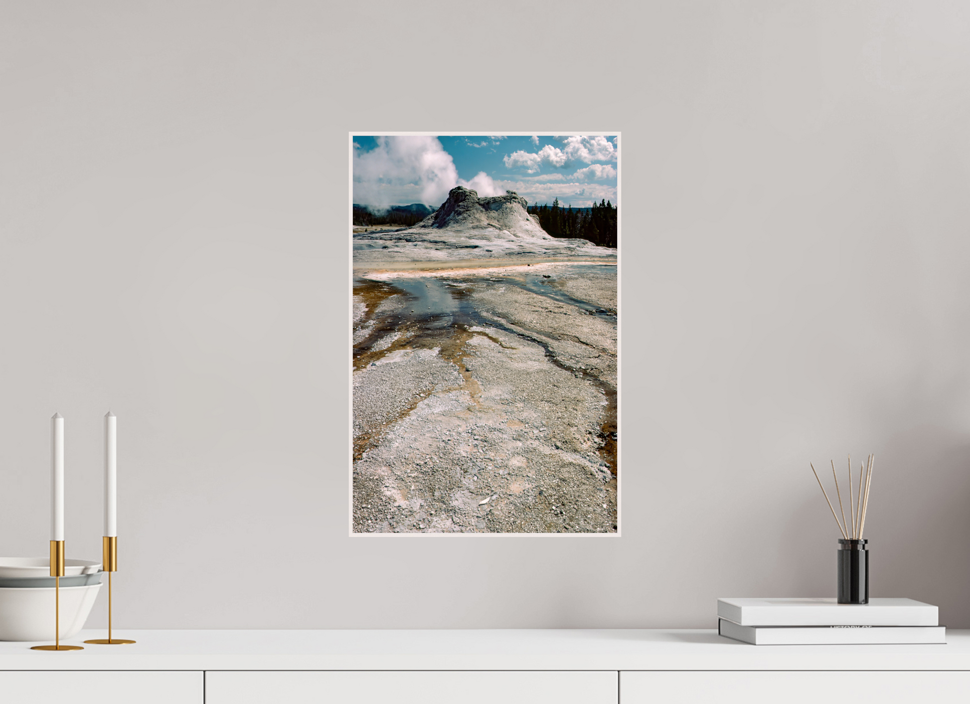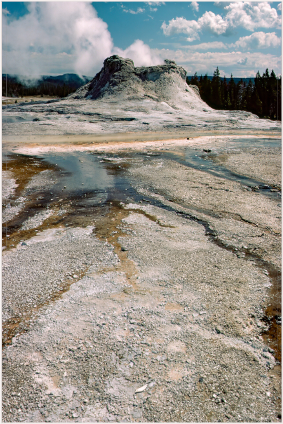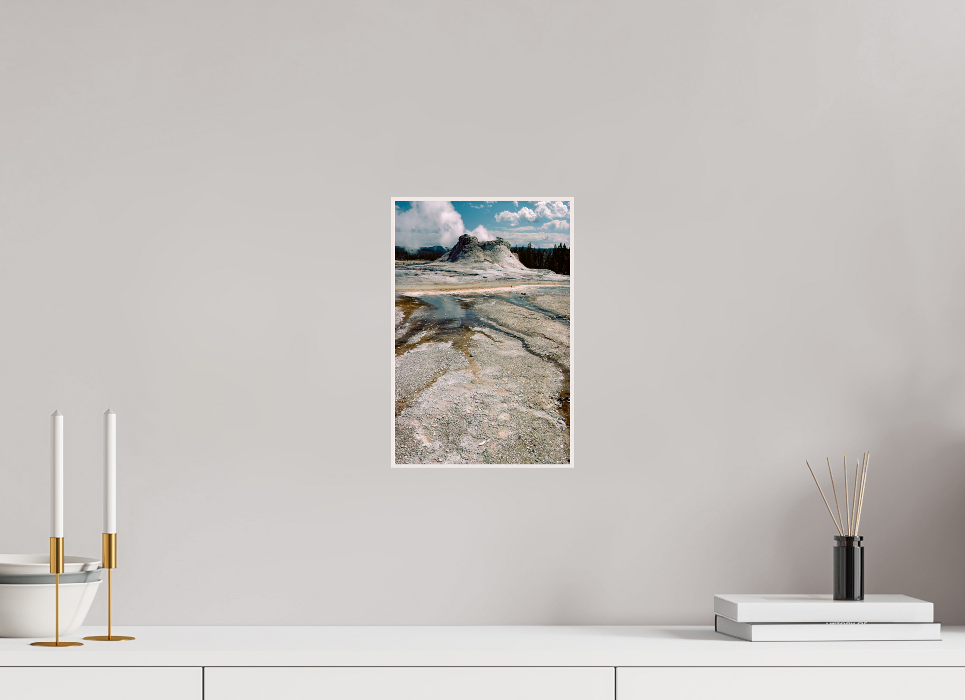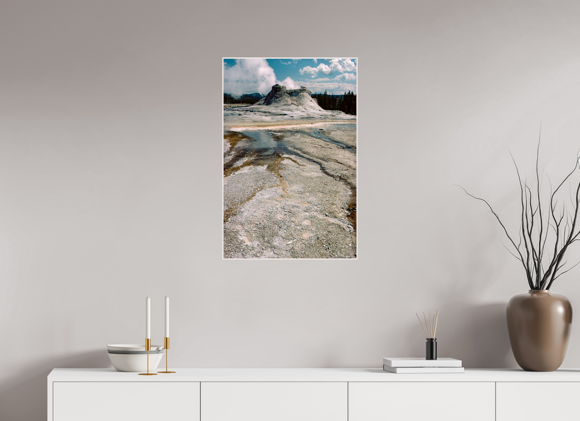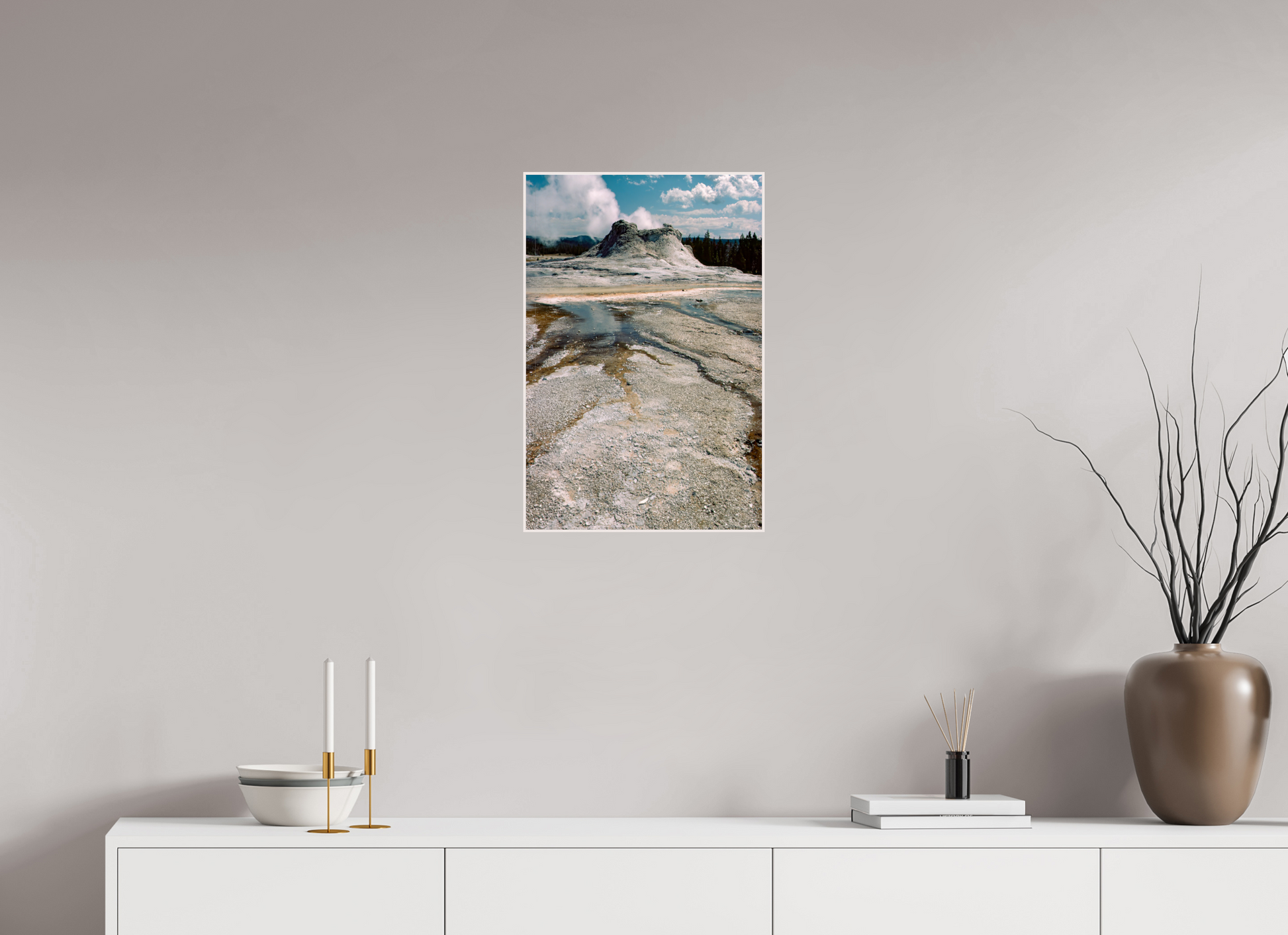 Steam rises from the thermal pools, casting an ethereal glow over the landscape, as the setting sun paints the sky with hues of pink and gold, creating a scene of serene beauty and mystique.