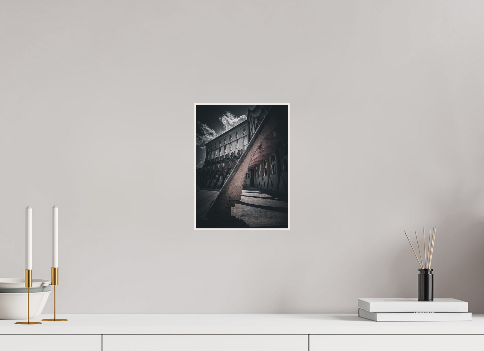 The striking geometry of the Arènes de Picasso comes to life in this dramatic photograph, where bold lines and stark contrasts dominate the scene. The interplay of light and shadow accentuates the unique architectural forms, creating a sense of depth and dynamism. The muted tones of the concrete structures are punctuated by the soft glow of the sky, adding a touch of warmth to the otherwise cool palette. This image captures the essence of modernist design, where form and function merge seamlessly. The perspective draws the viewer's eye into the heart of the structure, evoking a sense of curiosity and wonder.