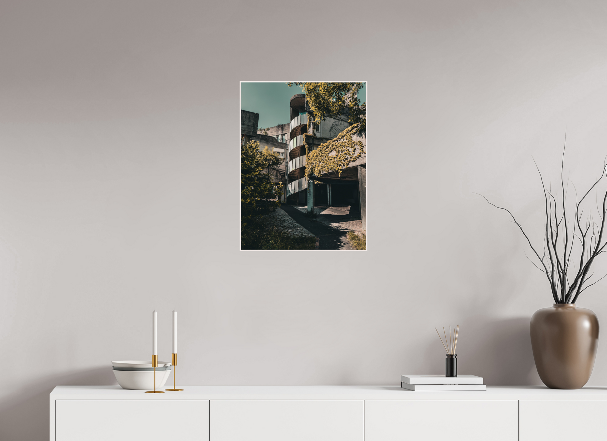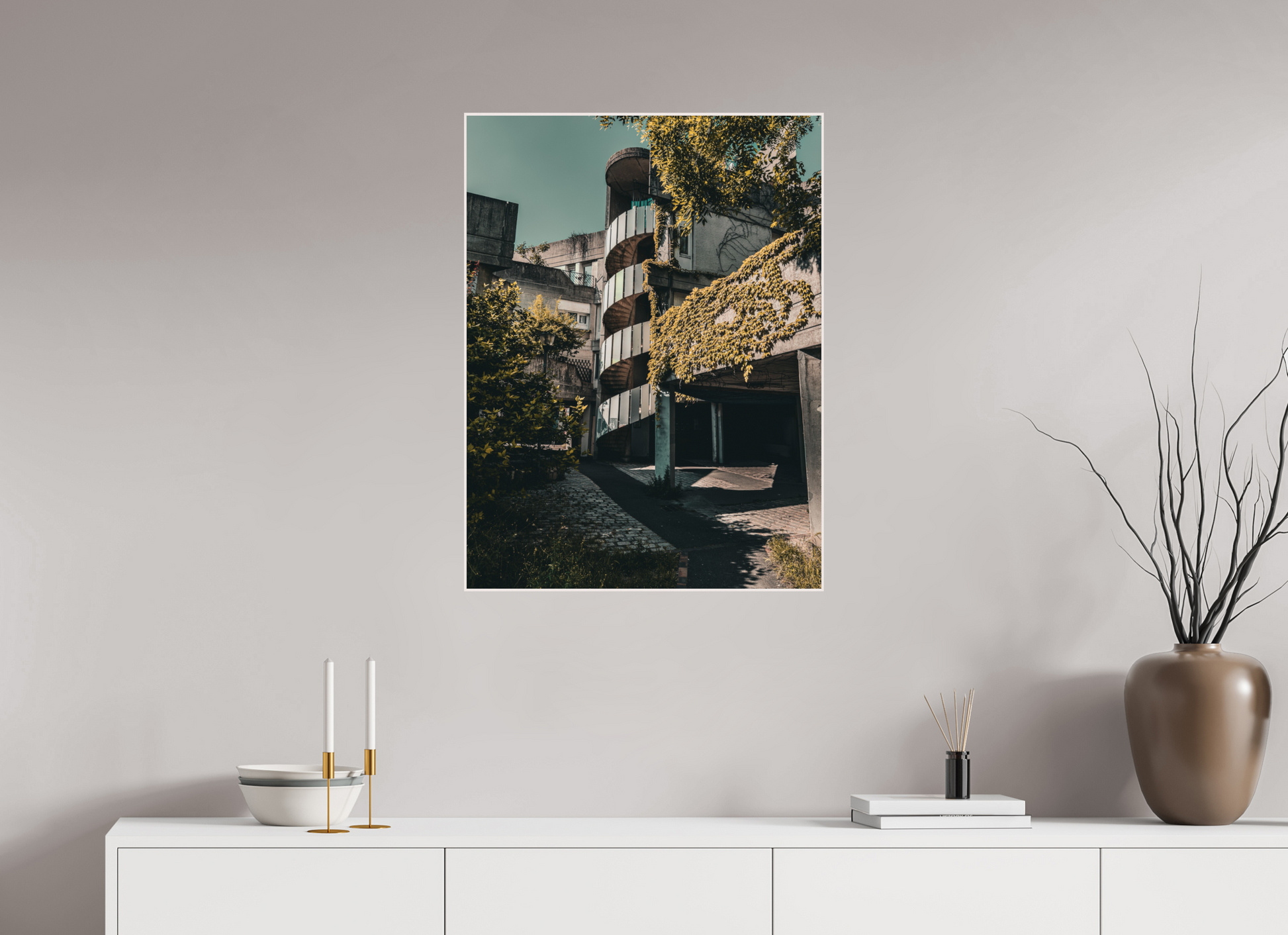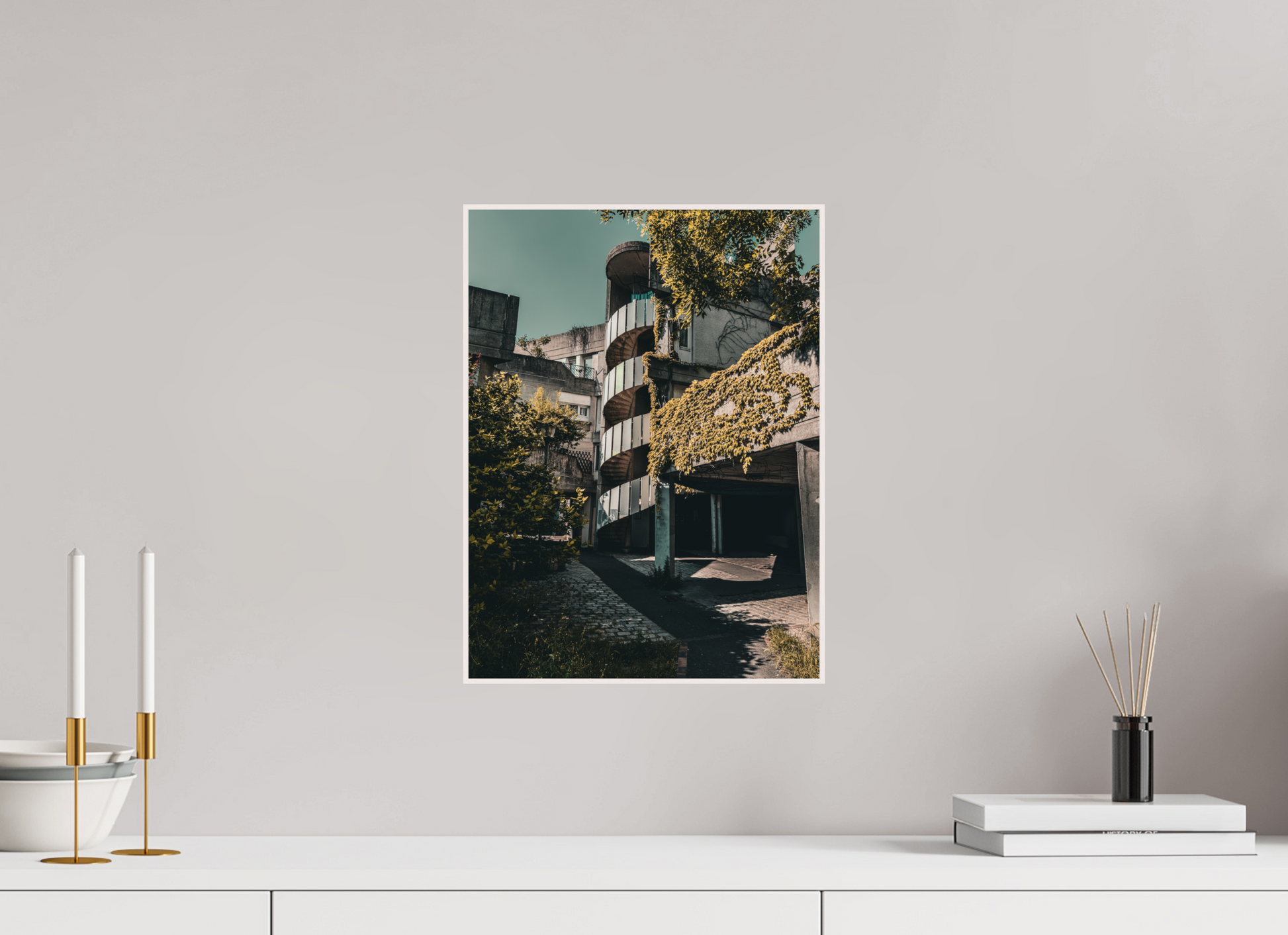 Showcasing the unique interplay between brutalist architecture and nature, this photograph captures the bold lines and stark contrasts of Etoiles de Renaudie. The spiraling staircase, encased in concrete, ascends towards a dramatic sky, embodying the raw beauty and strength of the structure. The interplay of light and shadow accentuates the geometric precision and the unyielding nature of the materials used, creating a visually compelling scene.