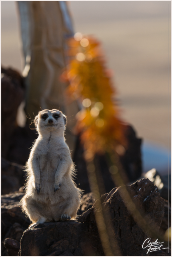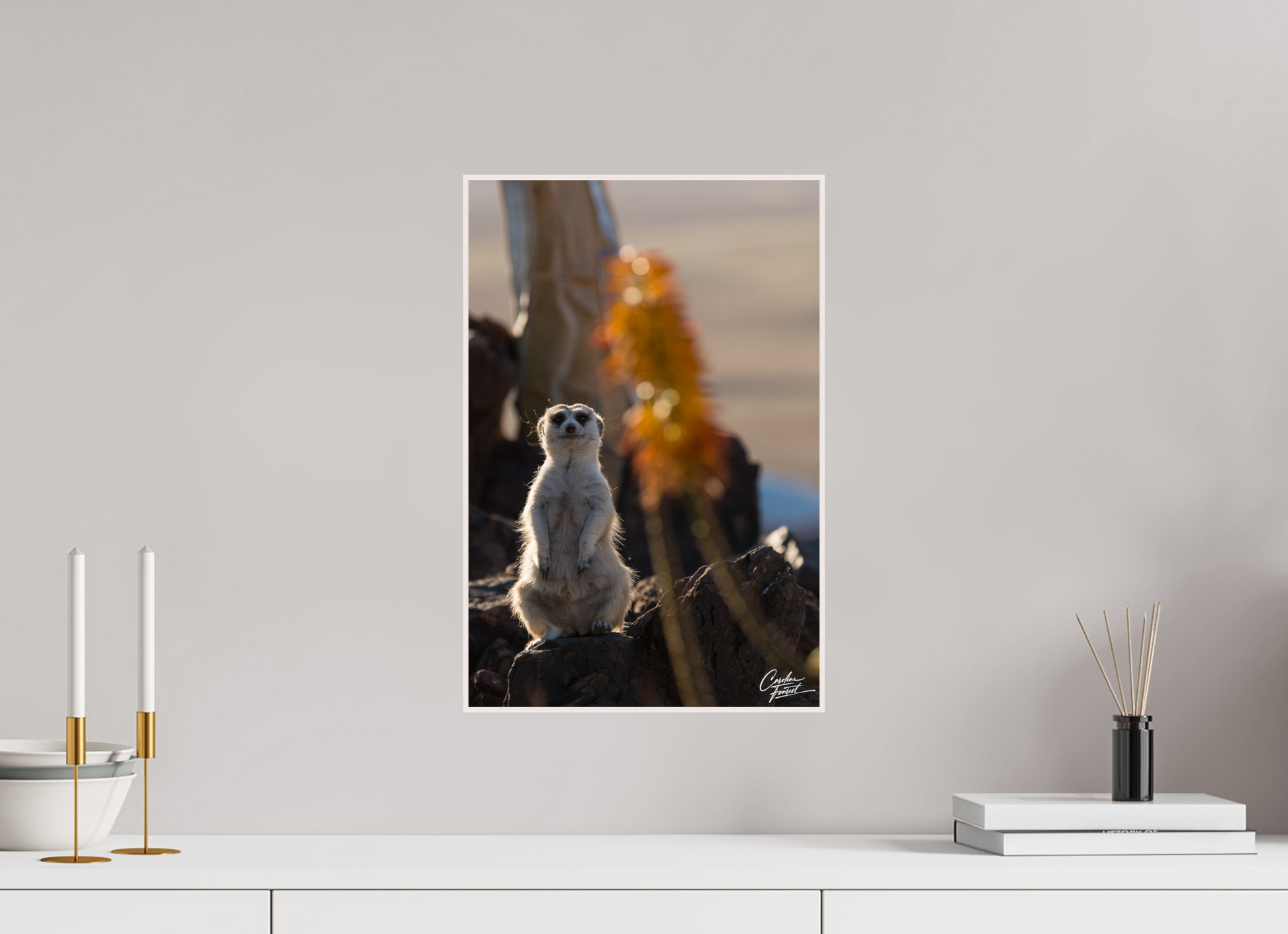 A meerkat stands tall against the golden hues of the setting sun, embodying the spirit of the wilderness.