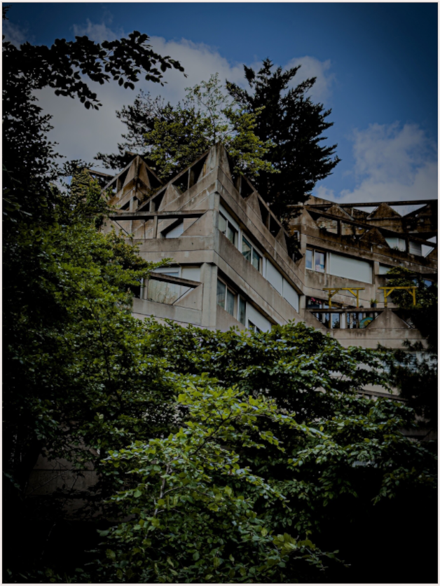 Etoiles de Renaudie in Ivry-sur-Seine, designed by architects Renée Gailhoustet and Jean Renaudie, is a notable example of brutalist architecture, which is known for its straightforward, block-like appearances and exposed concrete construction. This architectural style, which flourished from the 1950s to the mid-1970s, is often associated with a sense of strength and fortitude. The work at Etoiles exemplifies these characteristics, with its bold, angular forms and raw concrete surfaces. The complex is renowned for its innovative design, which includes a series of interconnected residential buildings and communal spaces. An interesting anecdote about Etoiles is that the integration of greenery was a deliberate effort to humanize the brutalist aesthetic and create a more livable environment.