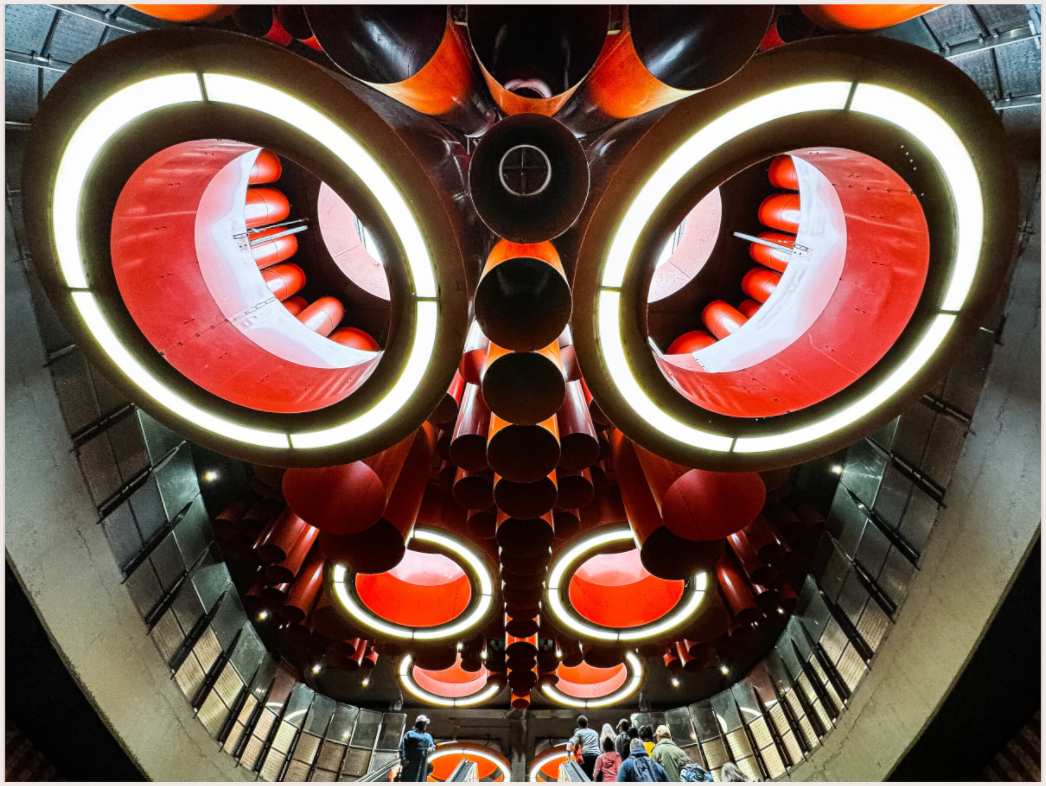Showcasing the intricate details of a metro station in Belgium, this image captures the complex machinery and design elements that keep the station running smoothly. The symmetrical arrangement of the lights and mechanical components creates a visually striking pattern, reflecting the precision and engineering prowess that goes into modern infrastructure. The image highlights the beauty and complexity of industrial design, capturing the essence of a space that is both functional and aesthetically compelling.