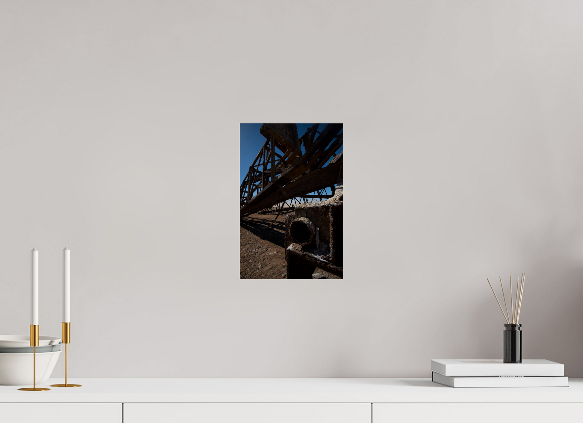 An abandoned mining structure stands as a stark reminder of human presence in the Namibian desert landscape.