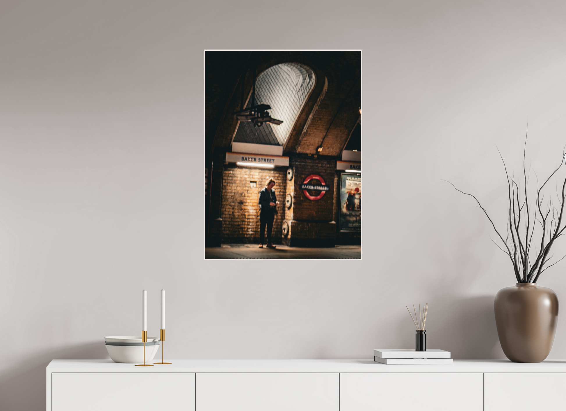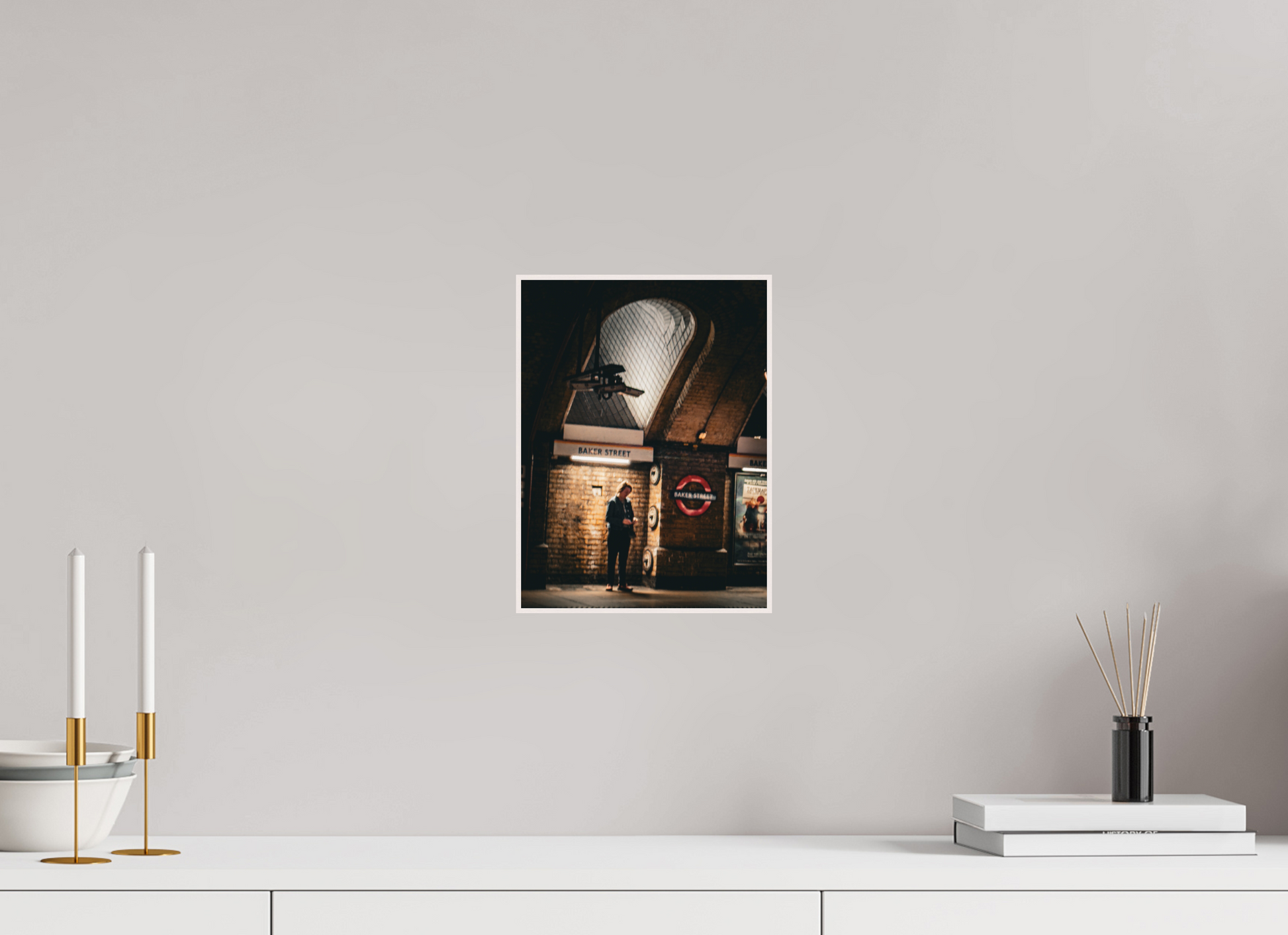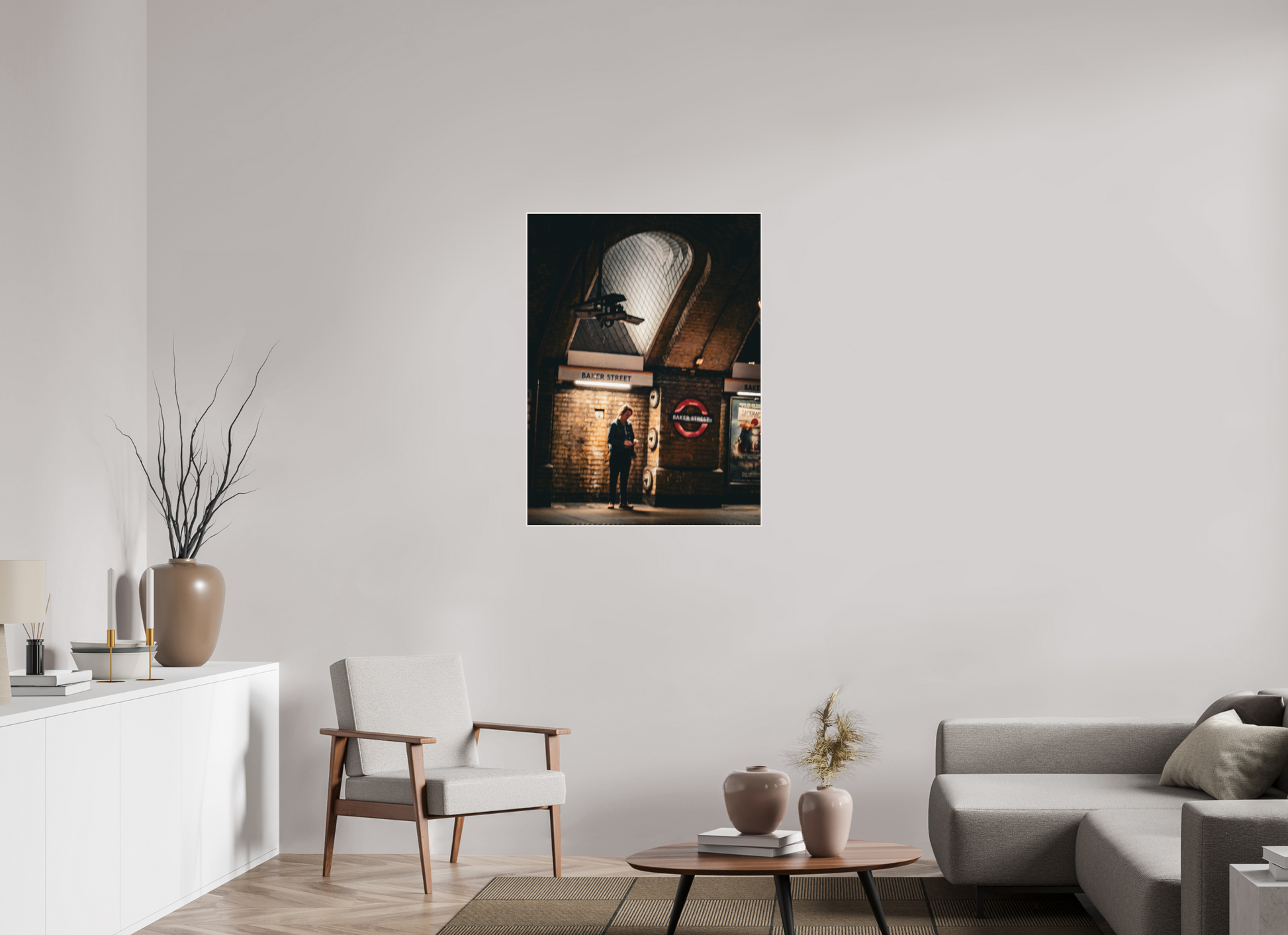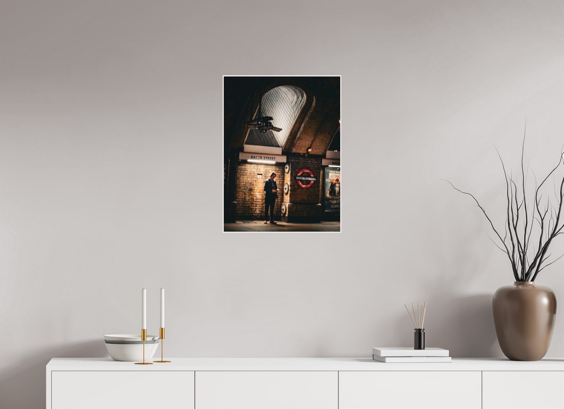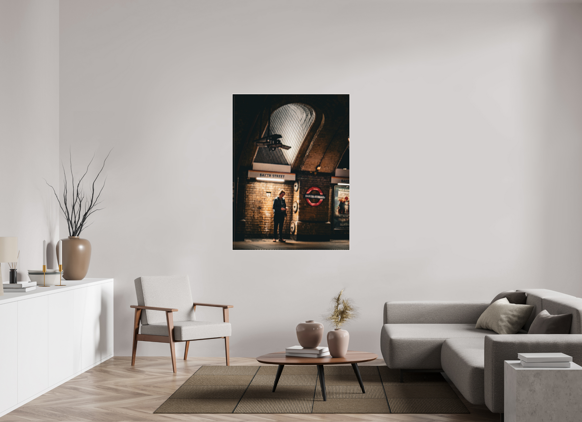 This striking image captures a moment at the entrance of the Bayswater Street Underground station in London. The iconic red and blue Underground sign stands out against the backdrop of the station's brick facade, symbolizing the city's efficient and historic public transportation system. A lone figure stands near the entrance, adding a sense of scale and life to the scene. The image reflects the hustle and bustle of London life, where modernity and tradition coexist seamlessly. The Underground, a vital part of the city's infrastructure, is a testament to London's ability to blend the old with the new.