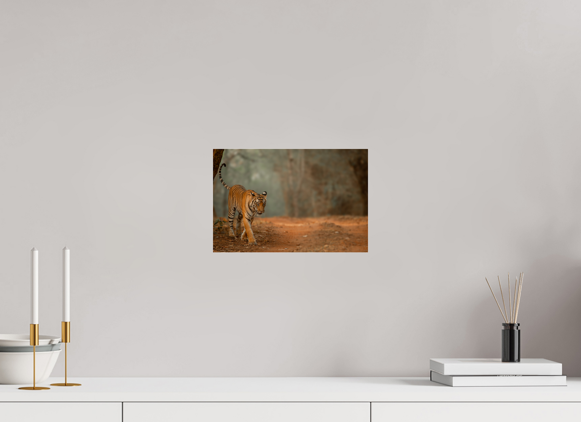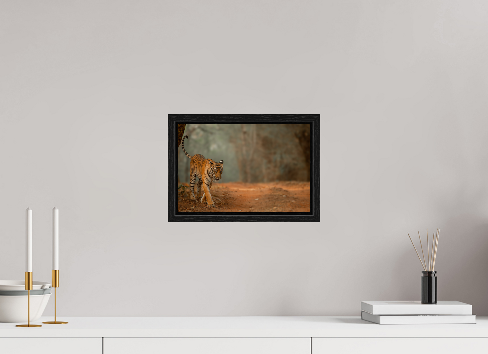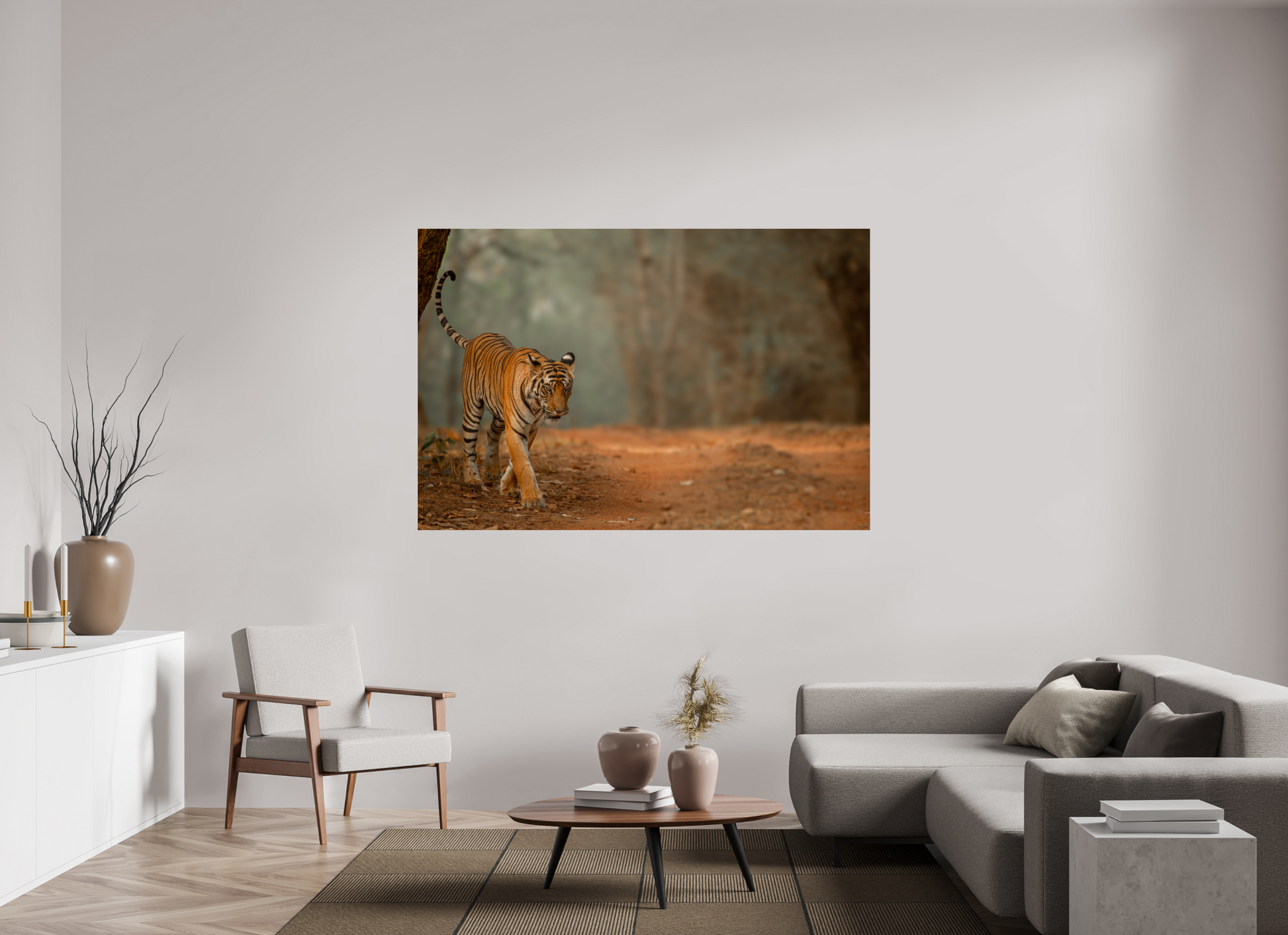 Witness the raw power and grace of the wild in this captivating portrait of a tiger on the prowl.