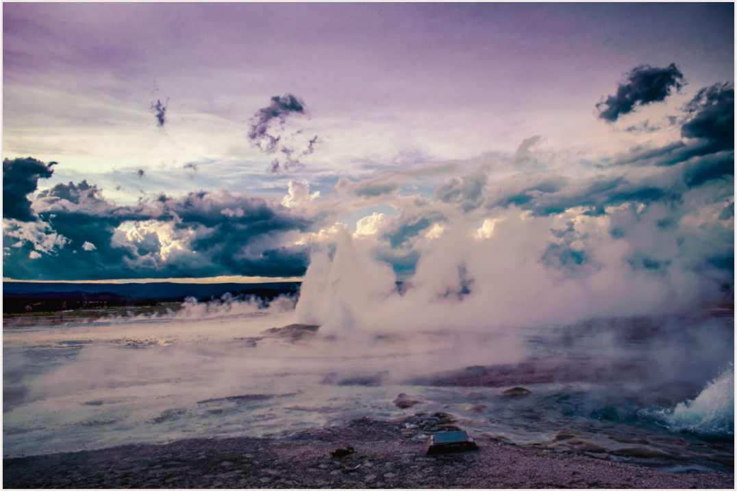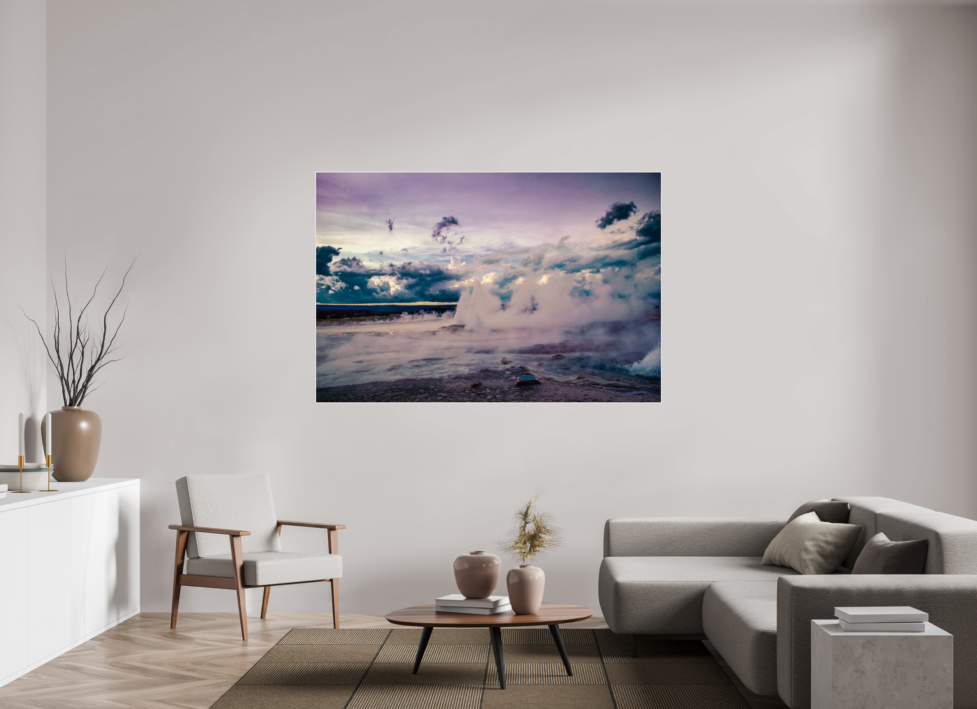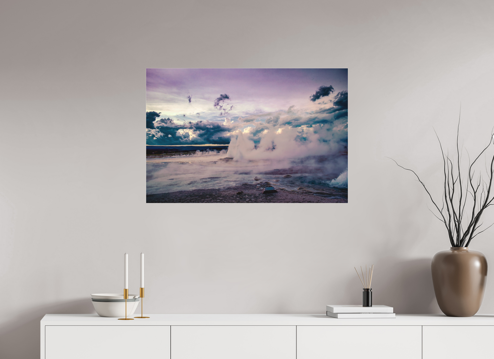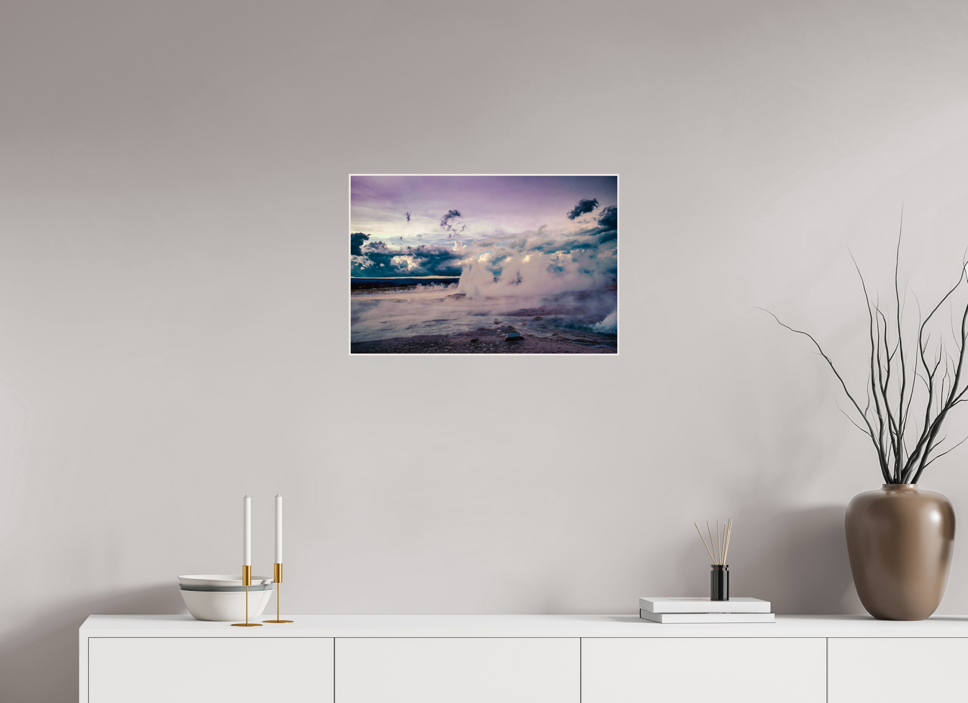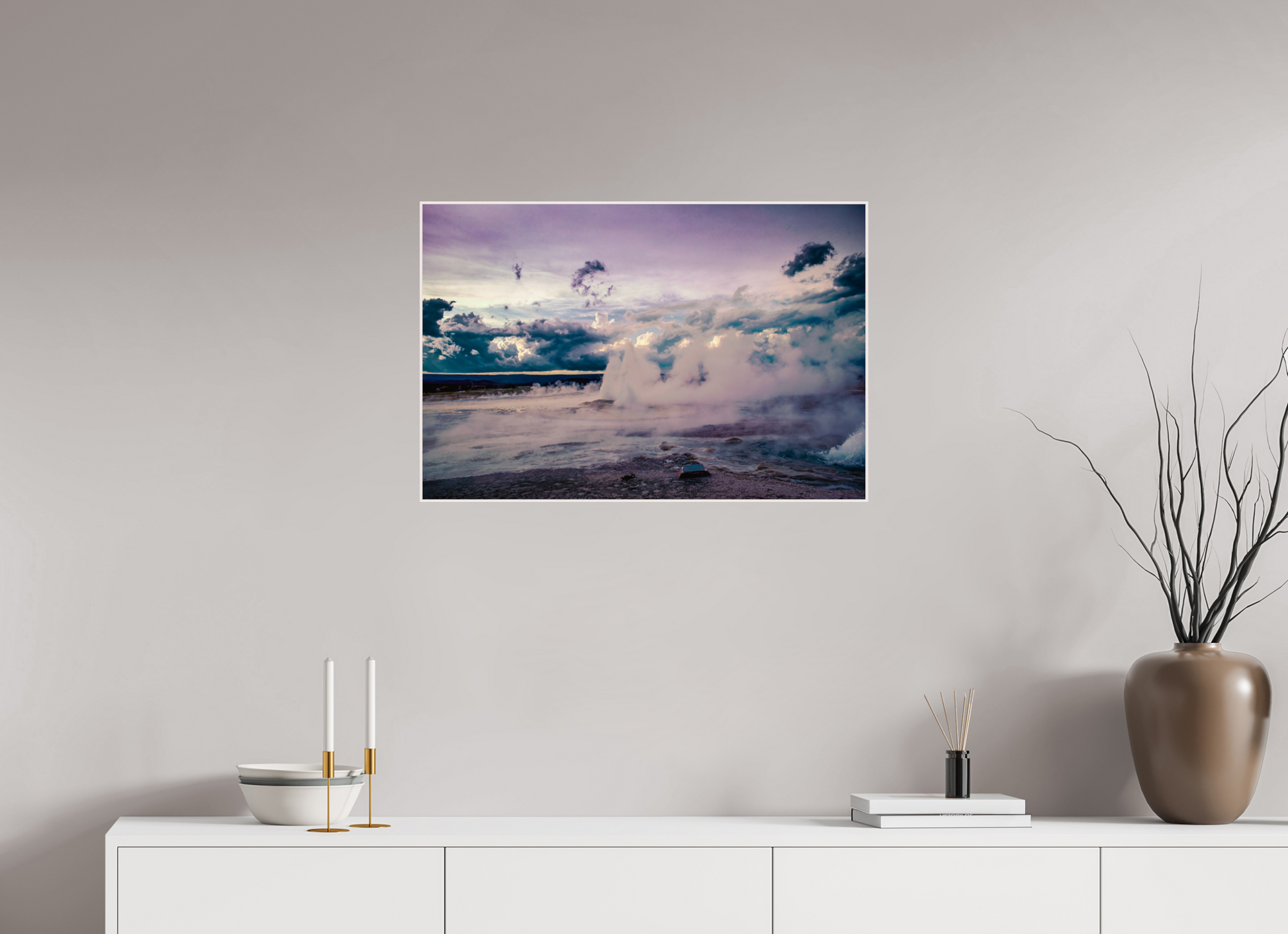 Steam rises from the earth, merging with the clouds above, creating an ethereal landscape that blurs the line between reality and dream.