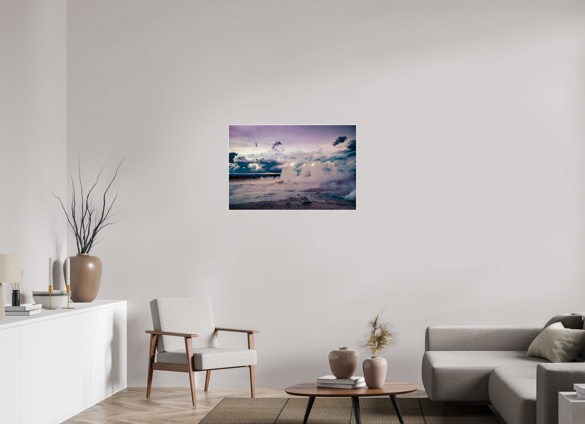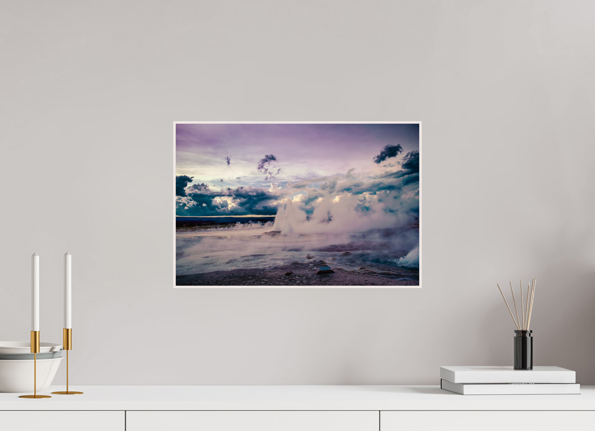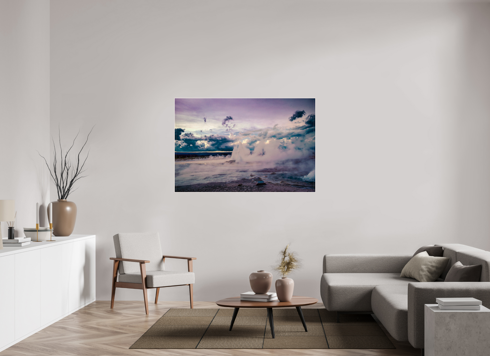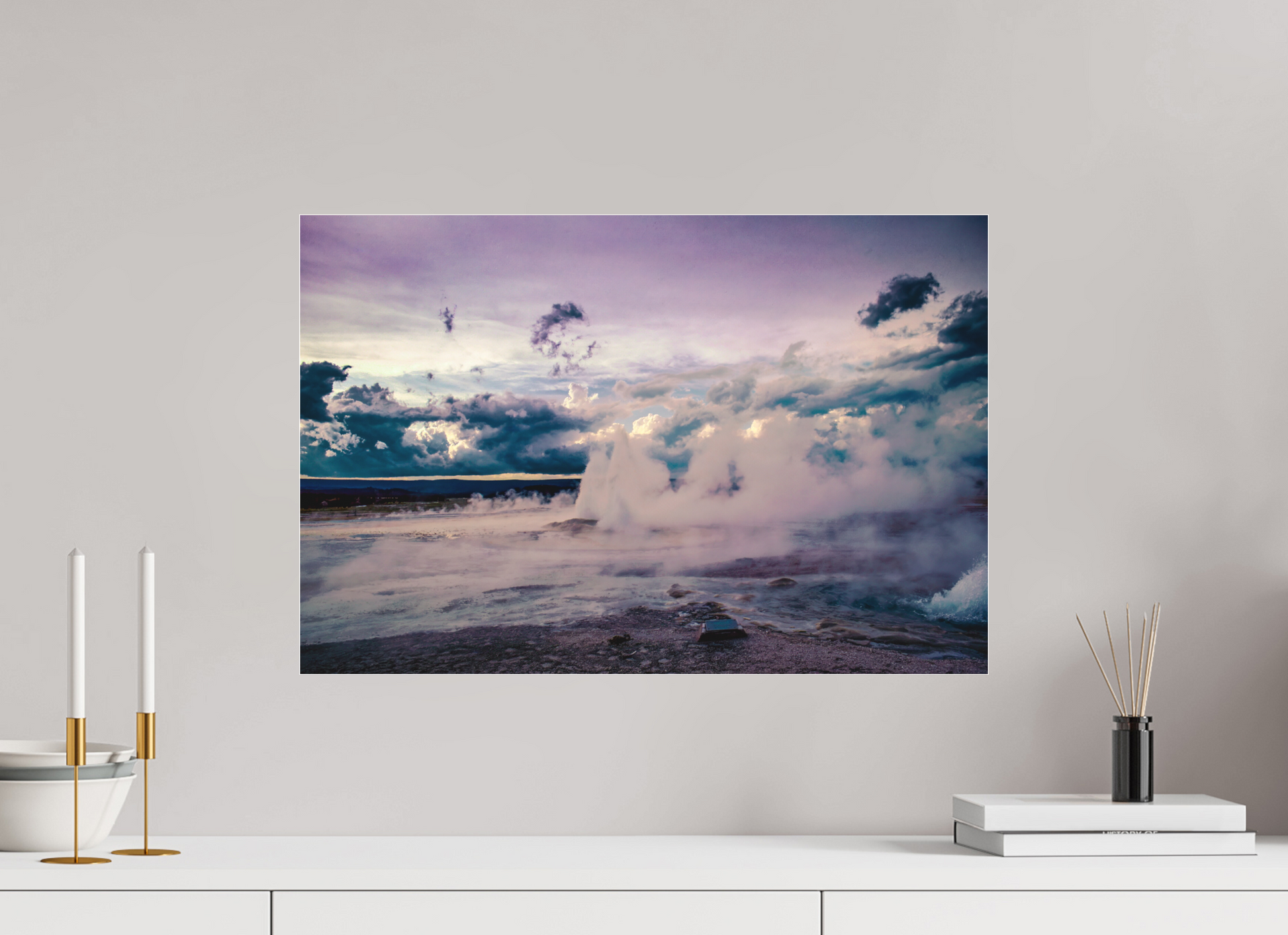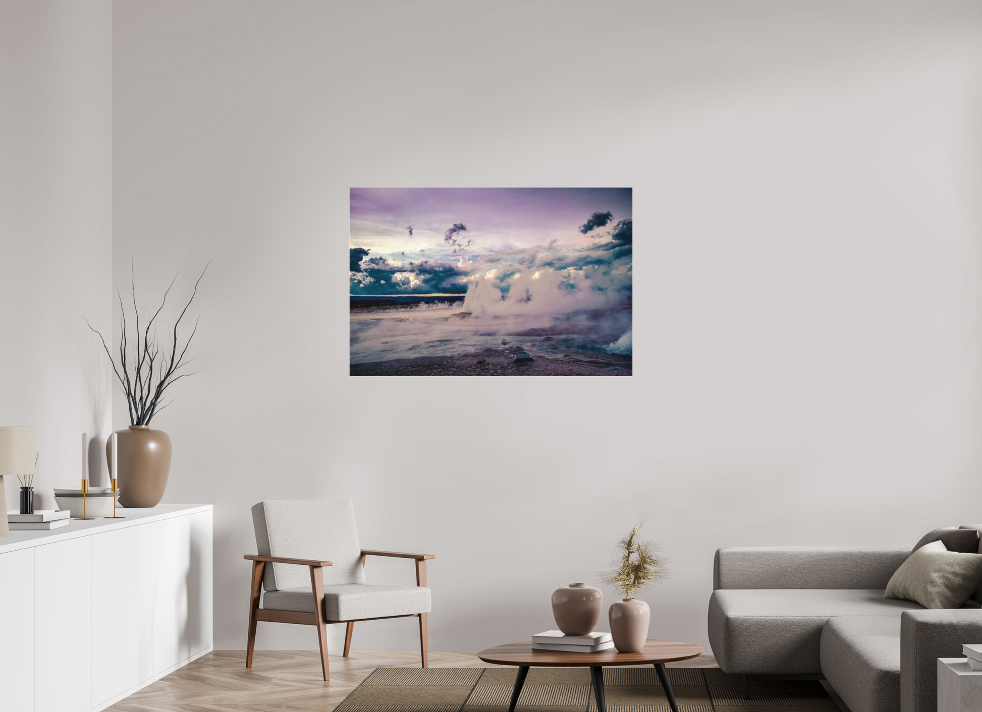 Steam rises from the earth, merging with the clouds above, creating an ethereal landscape that blurs the line between reality and dream.