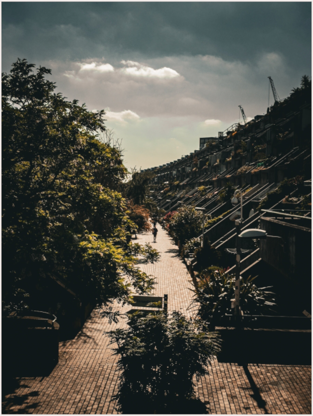 Alexandra Road Estate, designed by Neave Brown, is a landmark of Brutalist architecture in London. Completed in the late 1970s, the estate is known for its innovative design and social housing principles. The use of exposed concrete and repetitive modular forms reflects the ruggedness and lack of ornamentation characteristic of Brutalism. Despite its imposing presence, the estate also incorporates elements of nature and communal spaces, creating a unique and visually striking aesthetic.