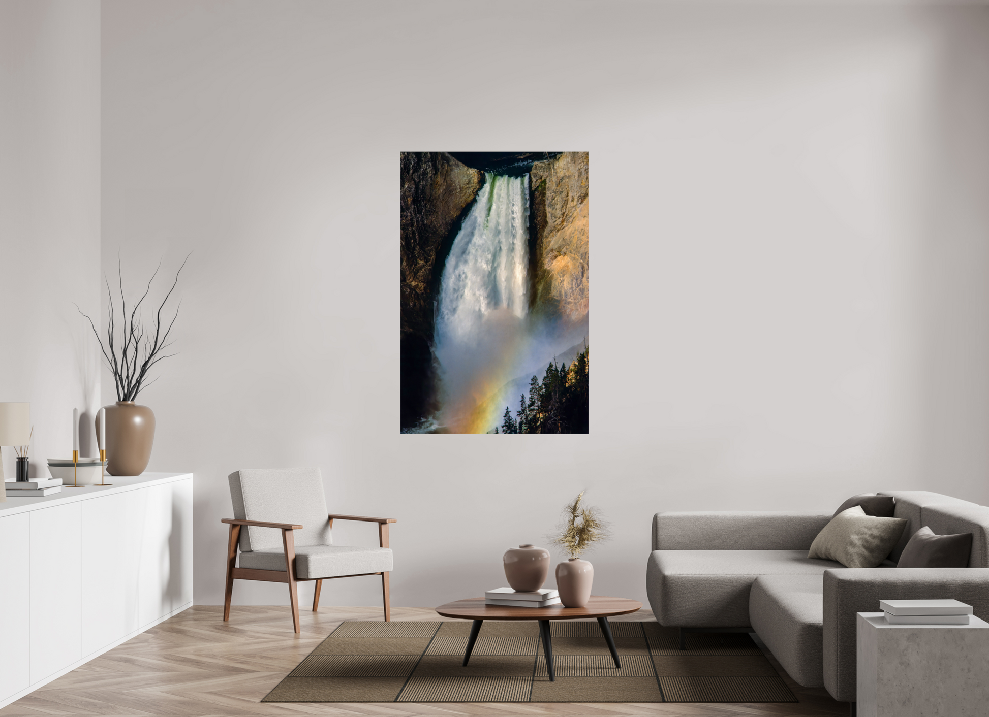 A waterfall cascades down the cliffside, illuminated by the soft glow of twilight, creating a mesmerizing scene of natural beauty and romantic allure, inviting you to lose yourself in its enchanting embrace.