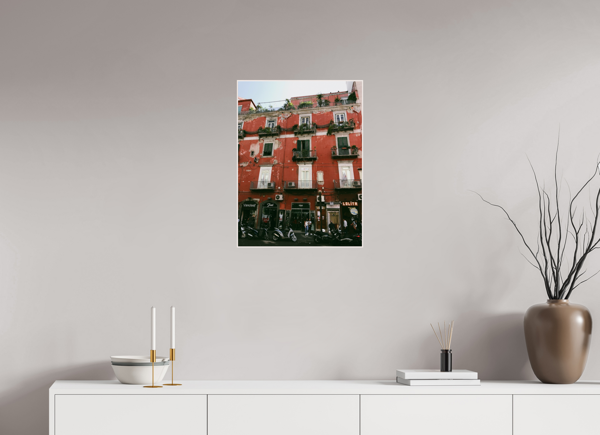 This vibrant image captures the essence of Naples, showcasing a charming building adorned with balconies overflowing with greenery and laundry. The warm hues of the building's facade reflect the lively spirit of the city, while the intricate details of the architecture tell a story of its rich history. The scene is a typical representation of Neapolitan life, where the old and the new coexist harmoniously. The play of light and shadow adds depth to the image, highlighting the textures and colors that make Naples a unique and captivating city.