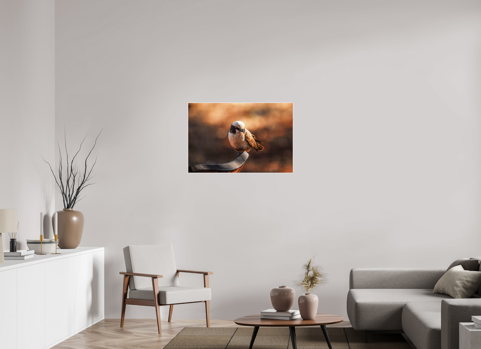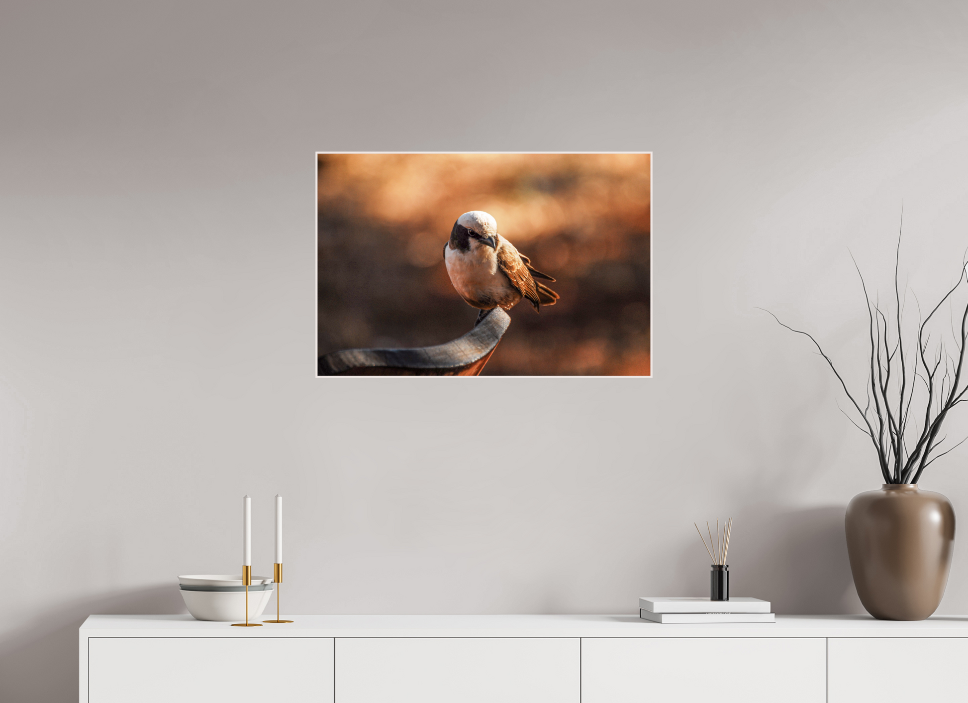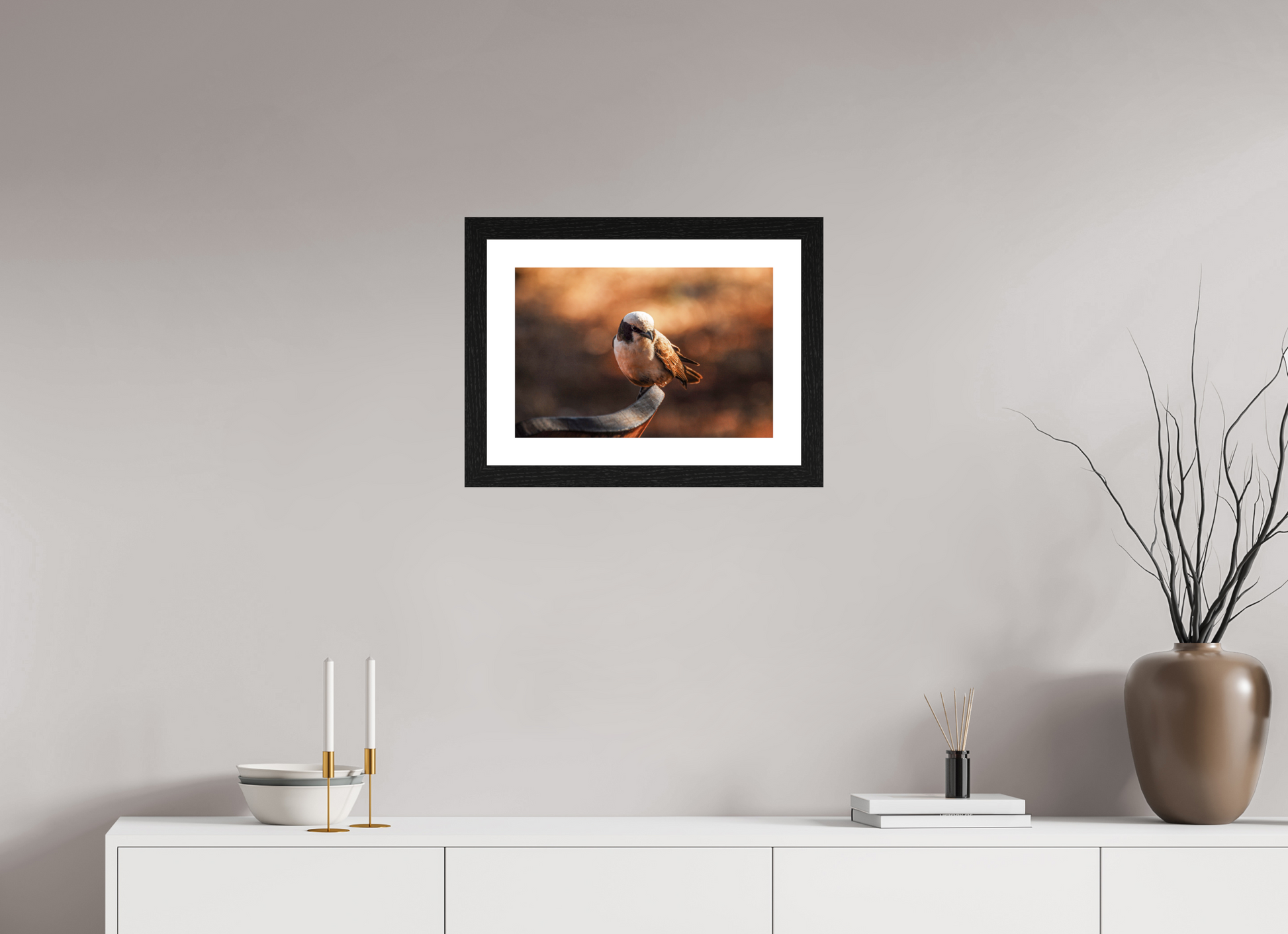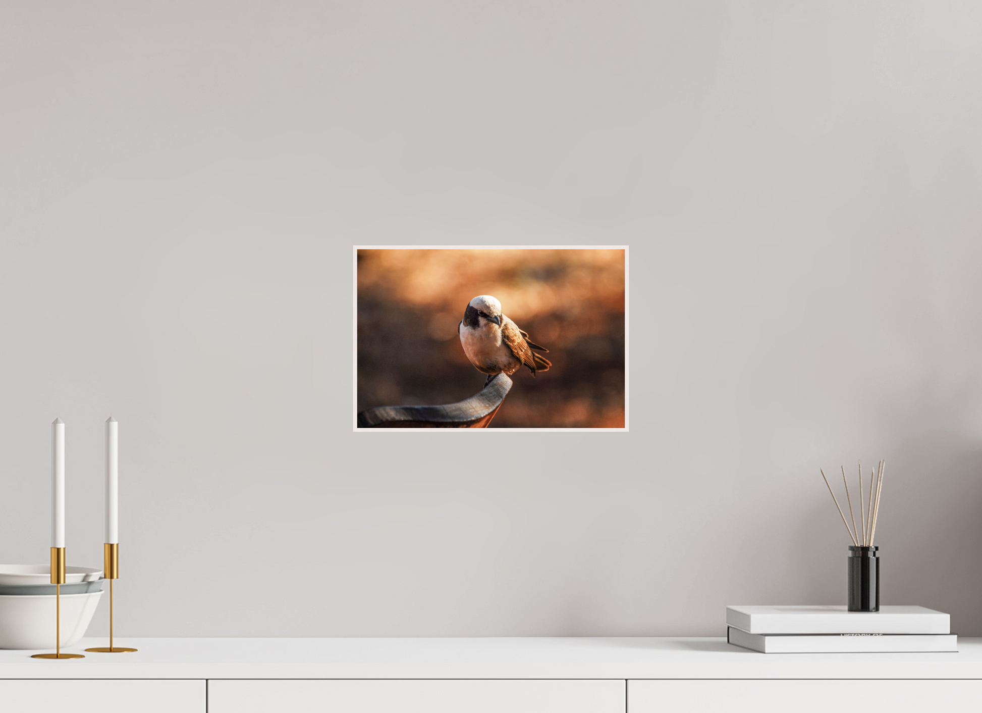A southern white-crowned shrike rests gracefully on a branch, its delicate form highlighted by the soft glow of the setting sun, capturing a moment of tranquility in nature. This small bird also called "Eurocephalus anguitimens" is from the family Laniidae. It can be found in Angola, Botswana, Mozambique, Namibia, South Africa, and Zimbabwe. It loves subtropical habitat, tropical dry forests and savannah.