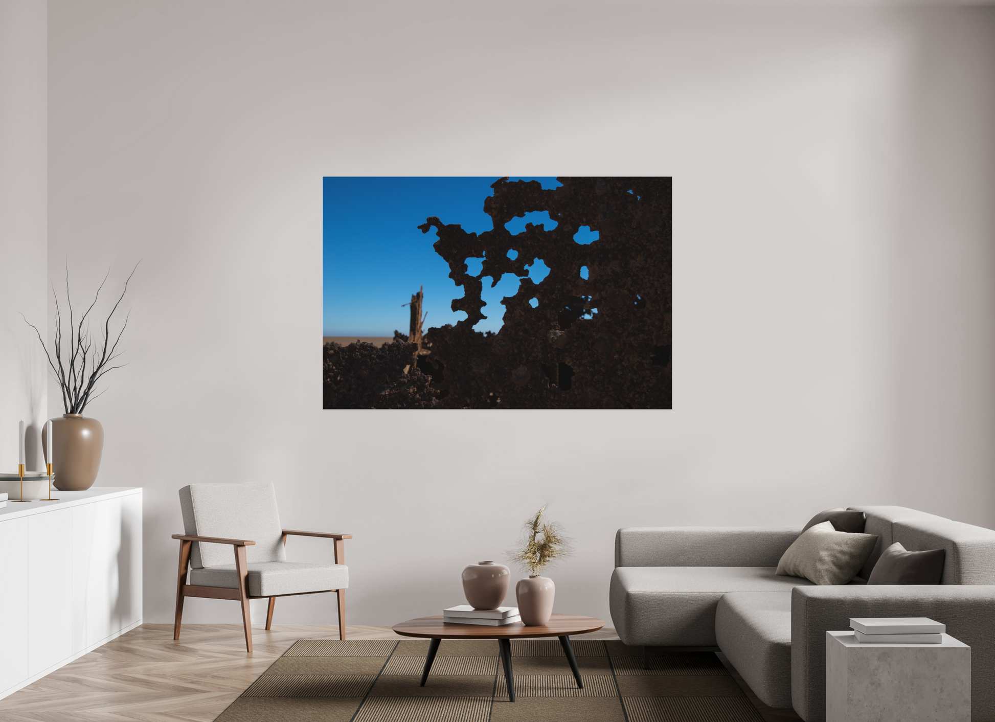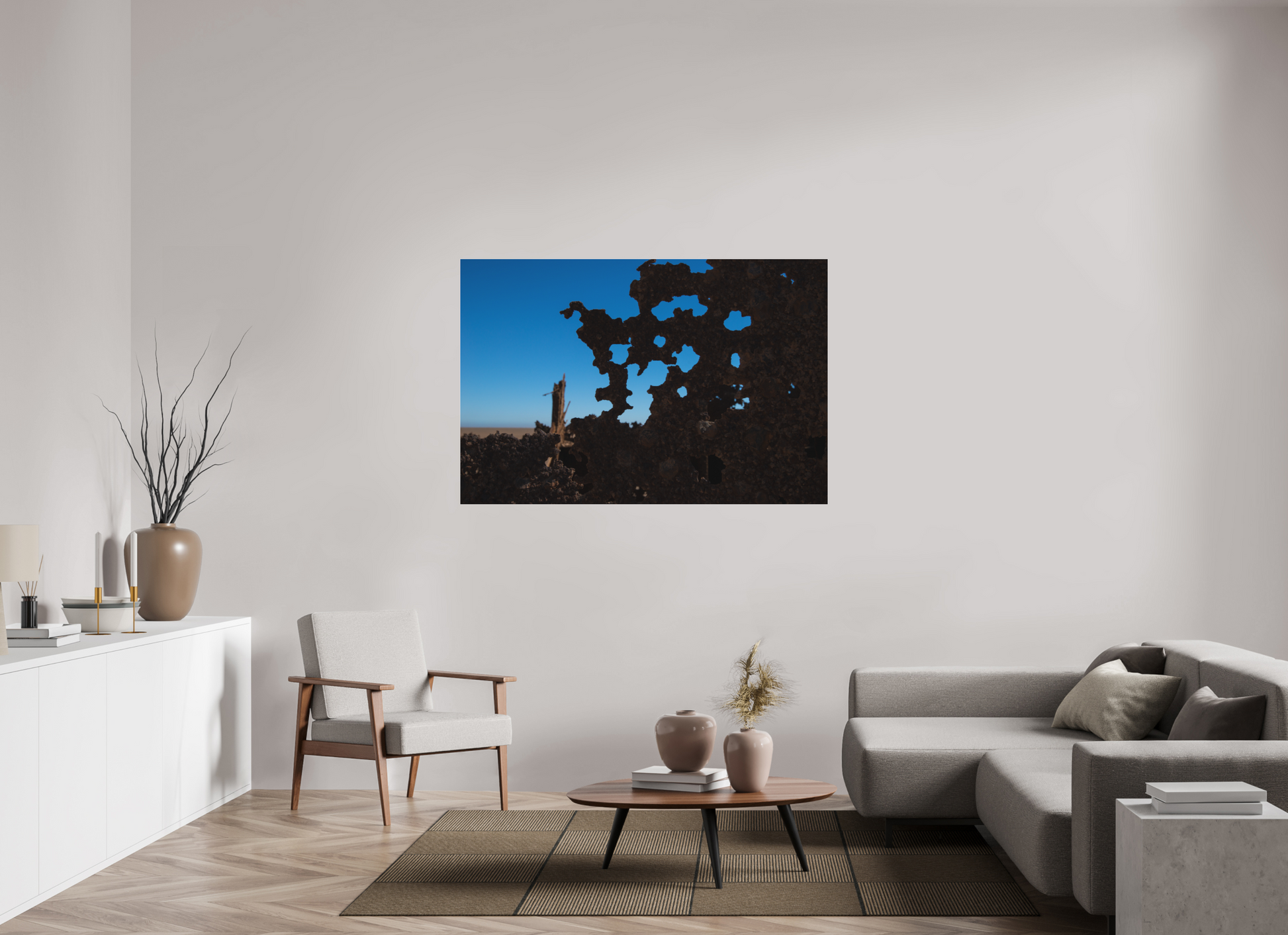 An abandoned mine structure stands as a stark reminder of human endeavor amidst the timeless beauty of the Namibian desert.