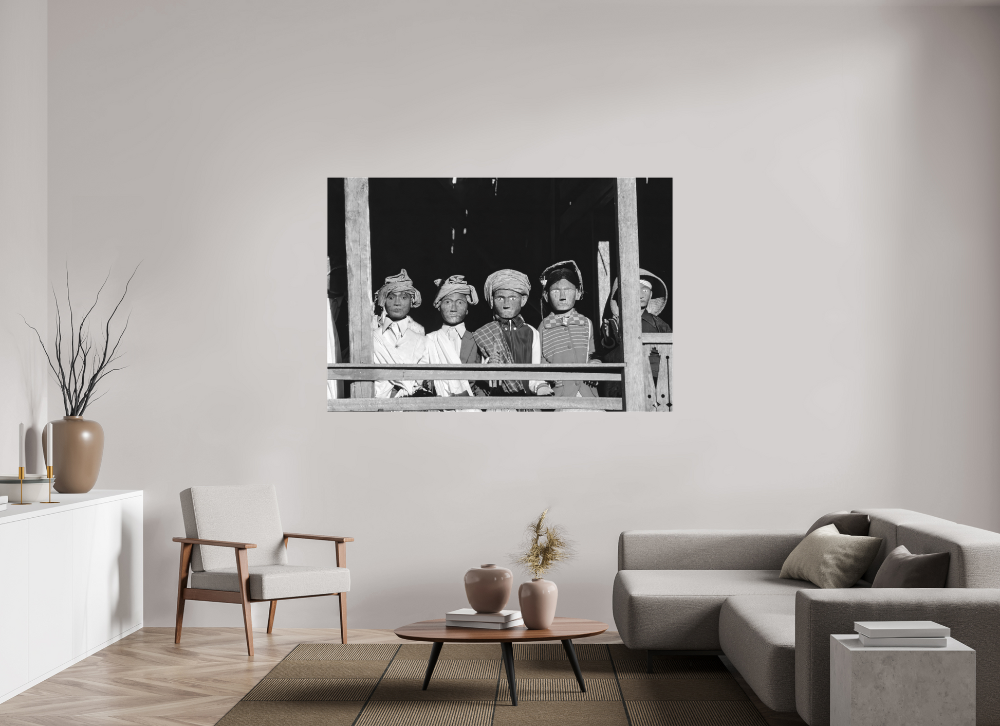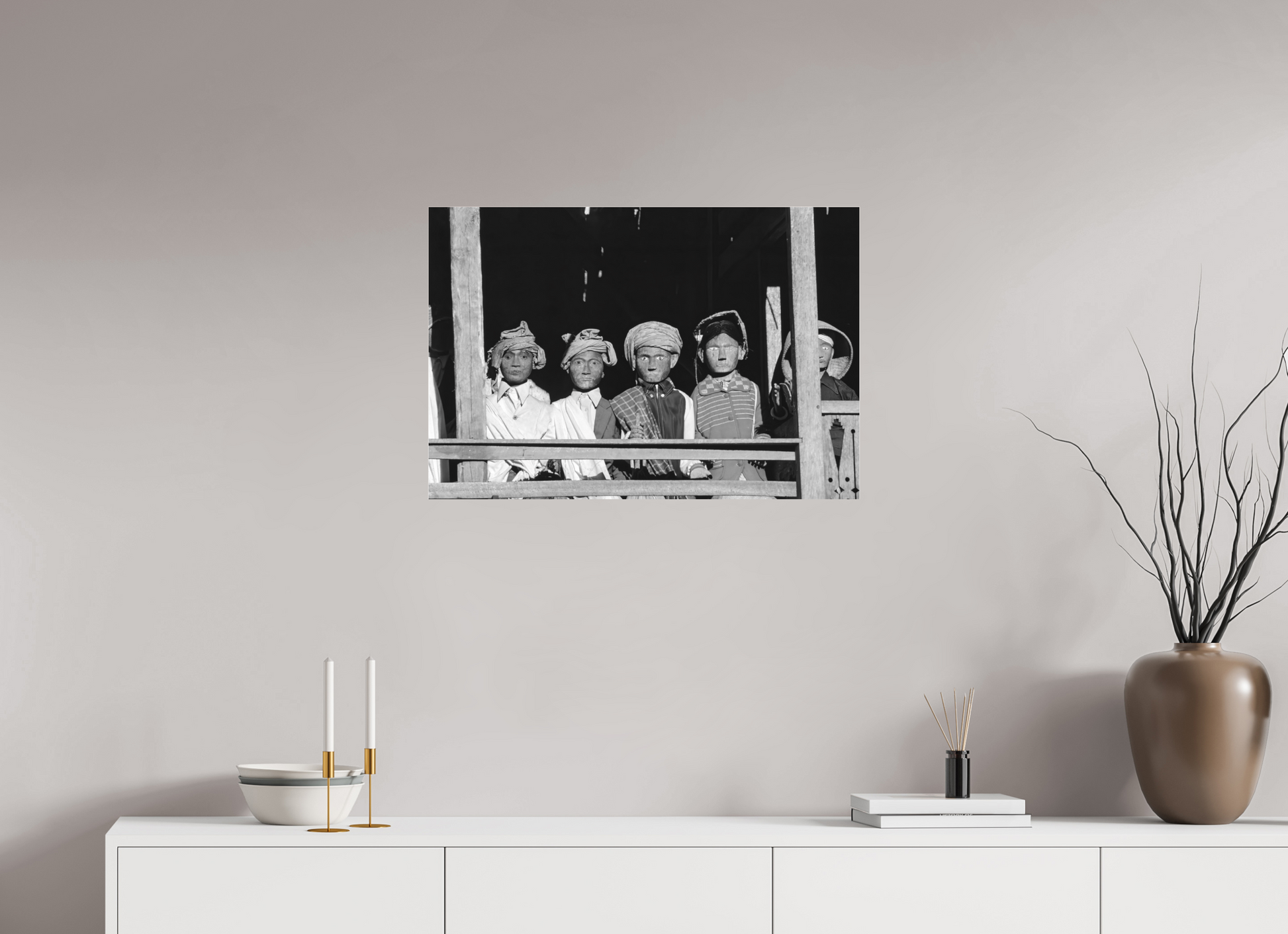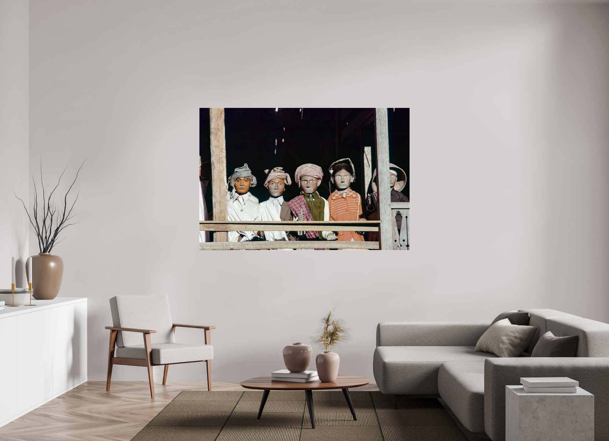 Vibrant masks gaze out from a rustic window, each one a testament to the rich cultural heritage and timeless traditions of the people who crafted them.