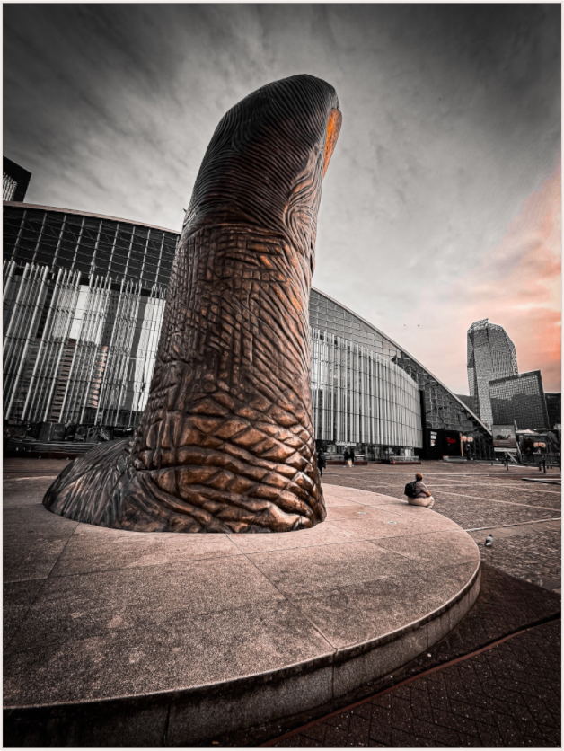 Erected in 1994, this thumb is the largest in a series of similar works by César, known for his innovative techniques in molding and enlargement. While other thumbs can be found in cities like Nice, Marseille, and even internationally, this one stands out due to its impressive size and detail, capturing even the artist's fingerprint in bronze.