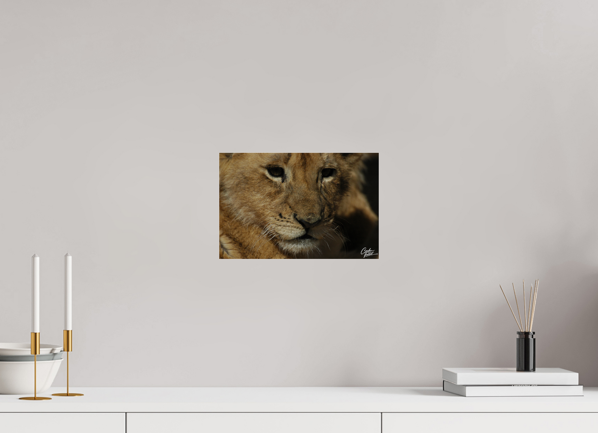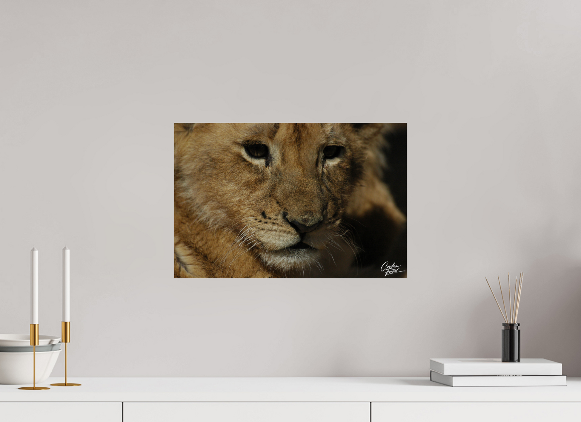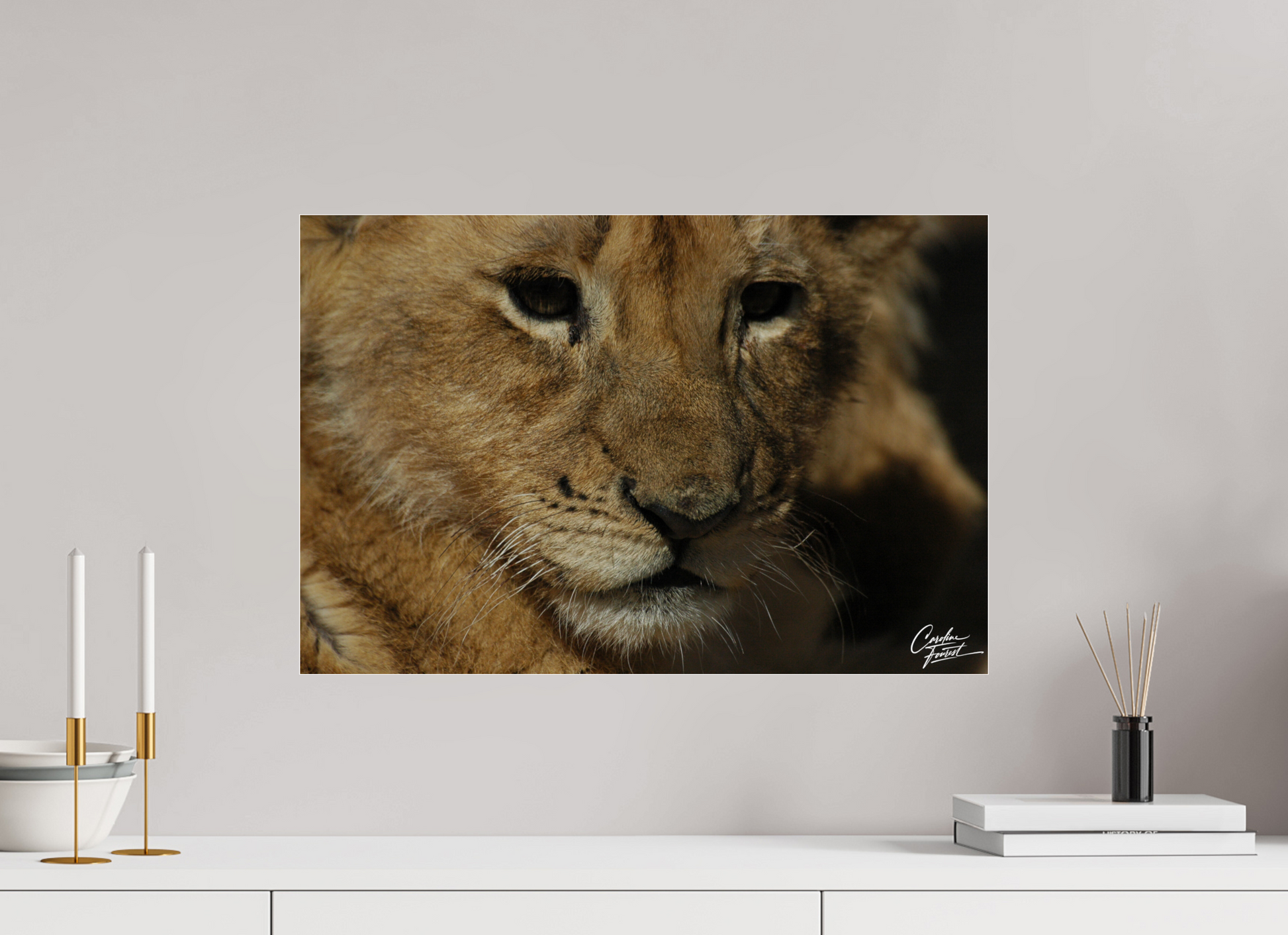 The gentle gaze of a young lion cub reflects innocence and wonder, embodying the spirit of youth in the wild.