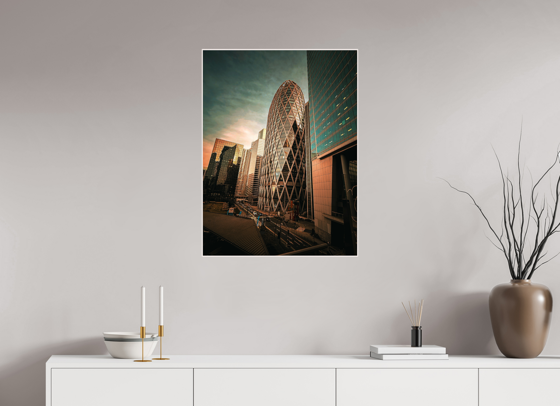 This dynamic image showcases a modern skyscraper with a distinctive, curved design. The building's reflective glass facade mirrors the surrounding cityscape and sky, creating a striking visual effect. The perspective of the photo emphasizes the height and sleek lines of the skyscraper, highlighting its architectural innovation and elegance. The image captures the essence of urban development and the continuous evolution of city skylines.