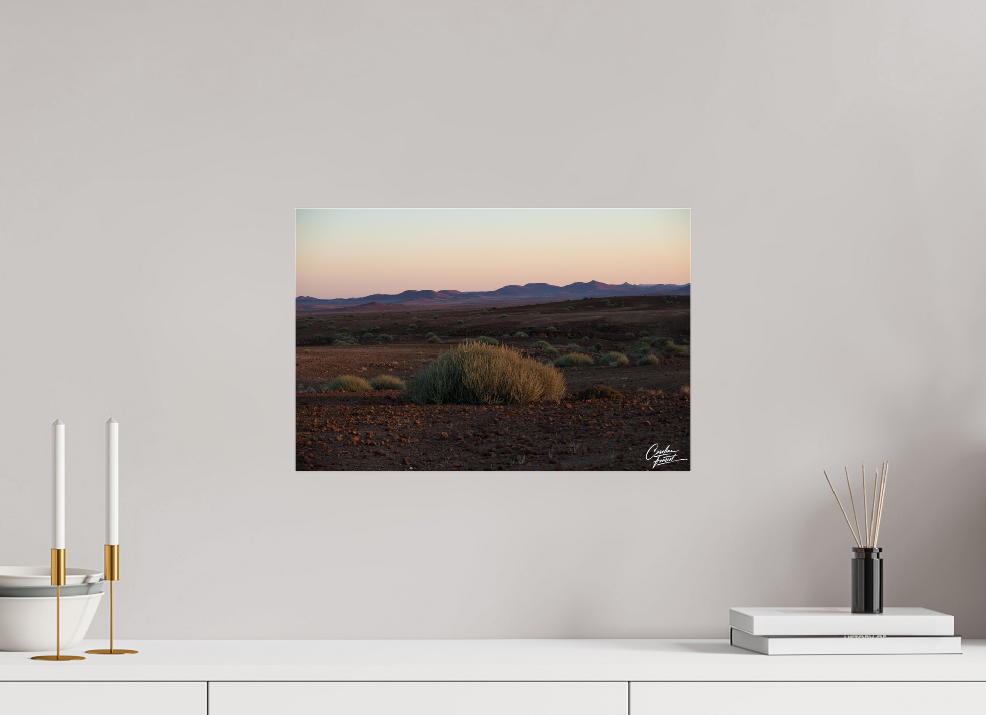 The soft hues of twilight paint the desert landscape, casting a serene glow over the vast expanse.