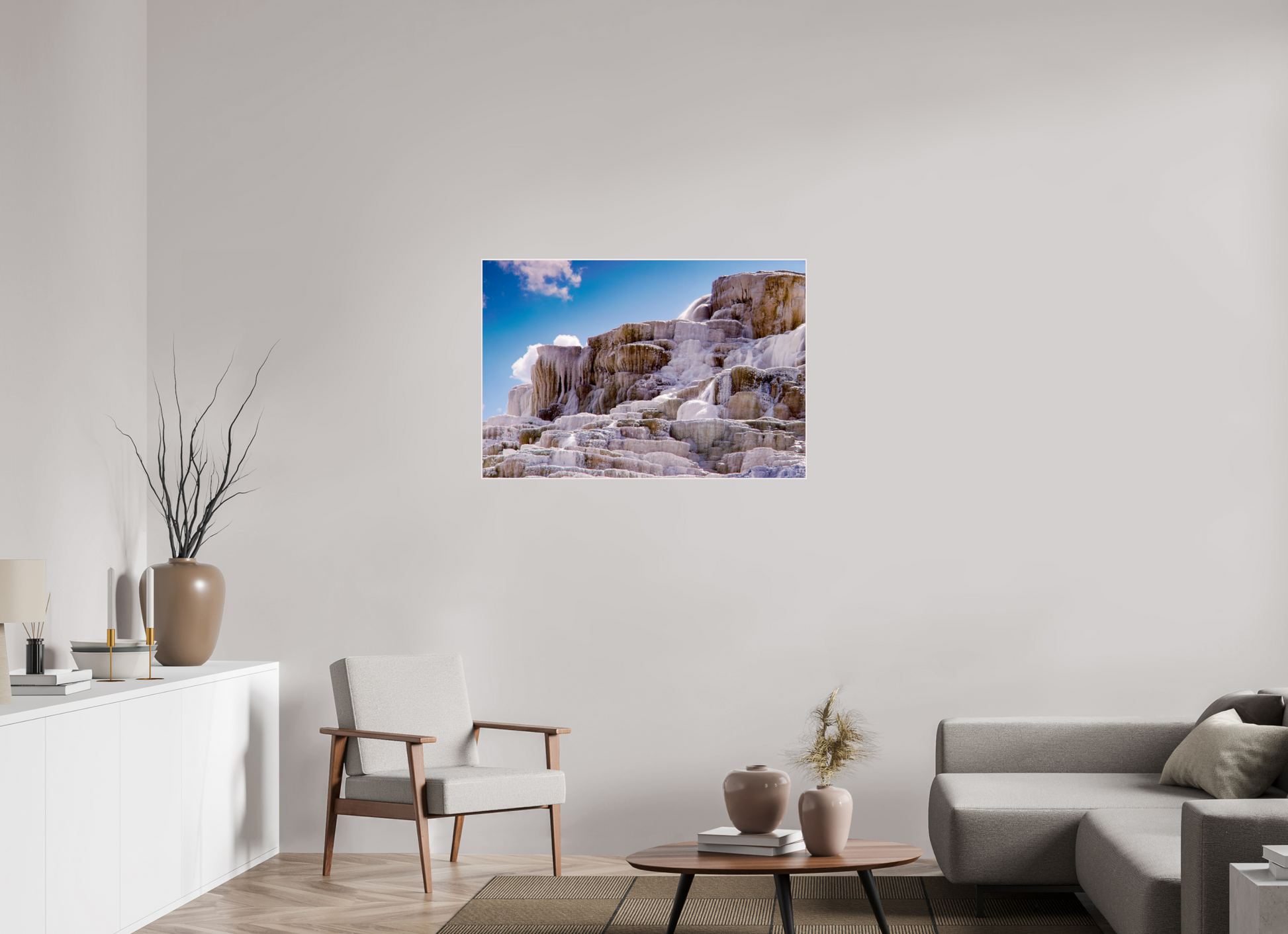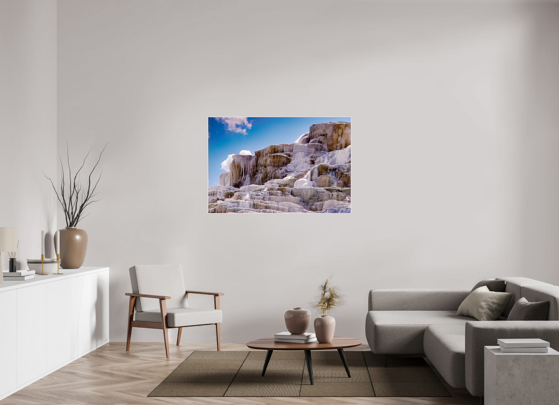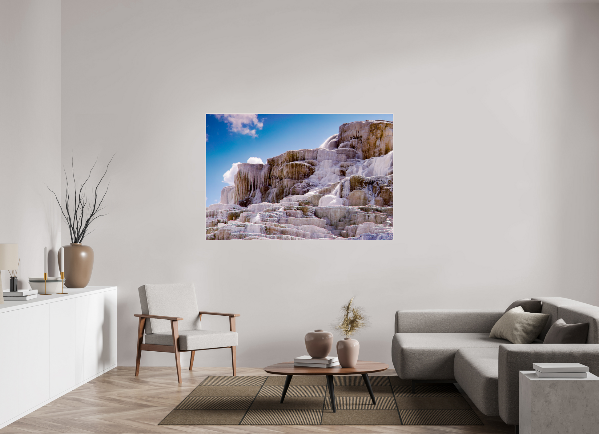 Thermal terraces cascade in a dreamy sequence, their vibrant hues and steamy veils painting a surreal landscape that captures the essence of nature's artistry.
