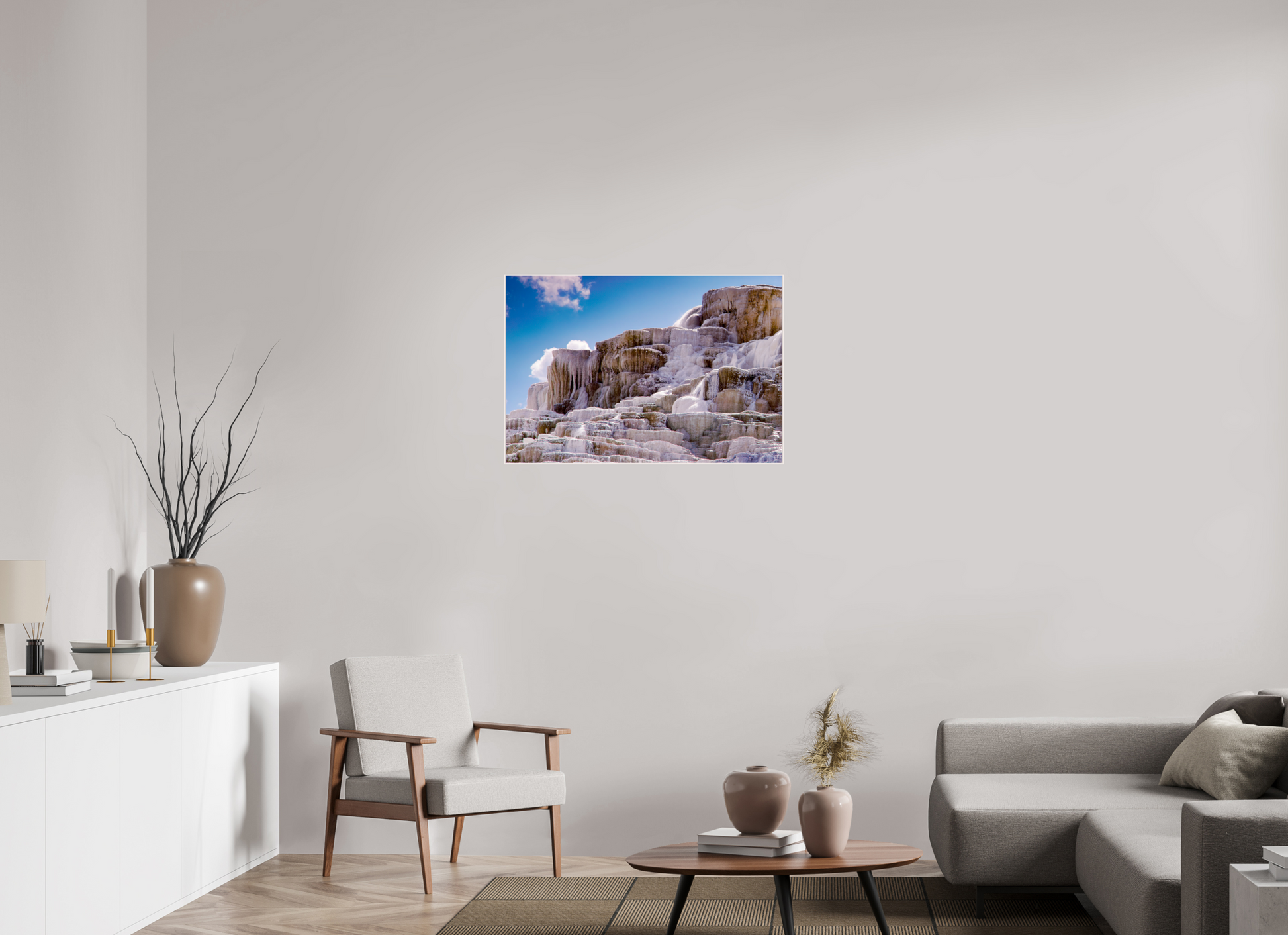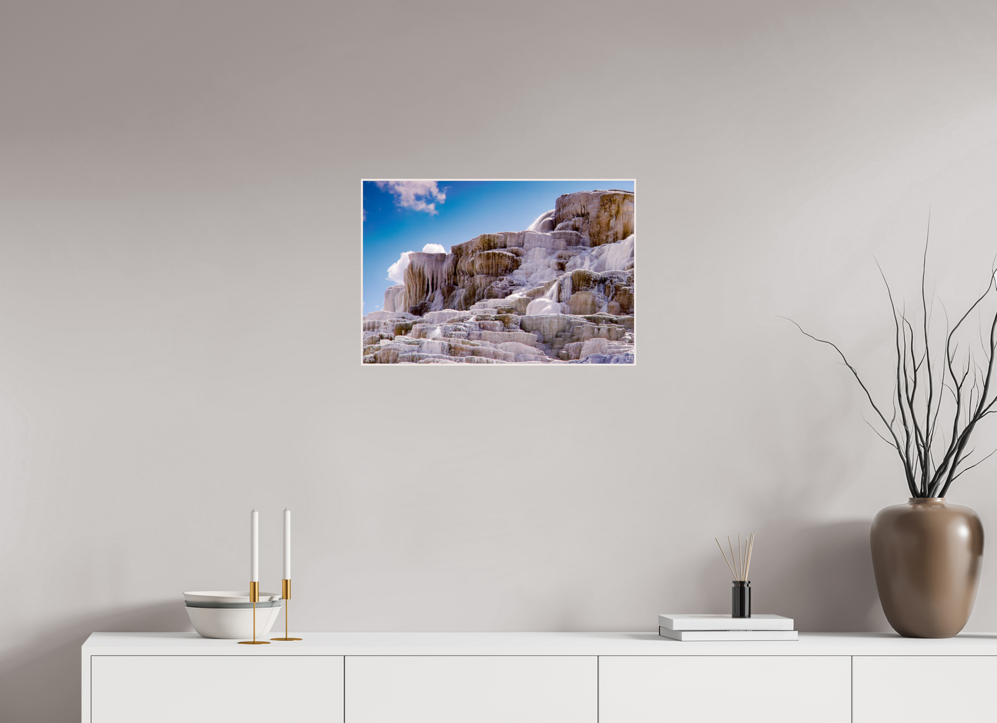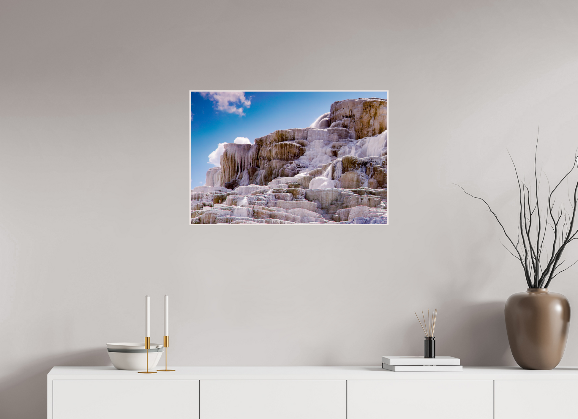 Thermal terraces cascade in a dreamy sequence, their vibrant hues and steamy veils painting a surreal landscape that captures the essence of nature's artistry.
