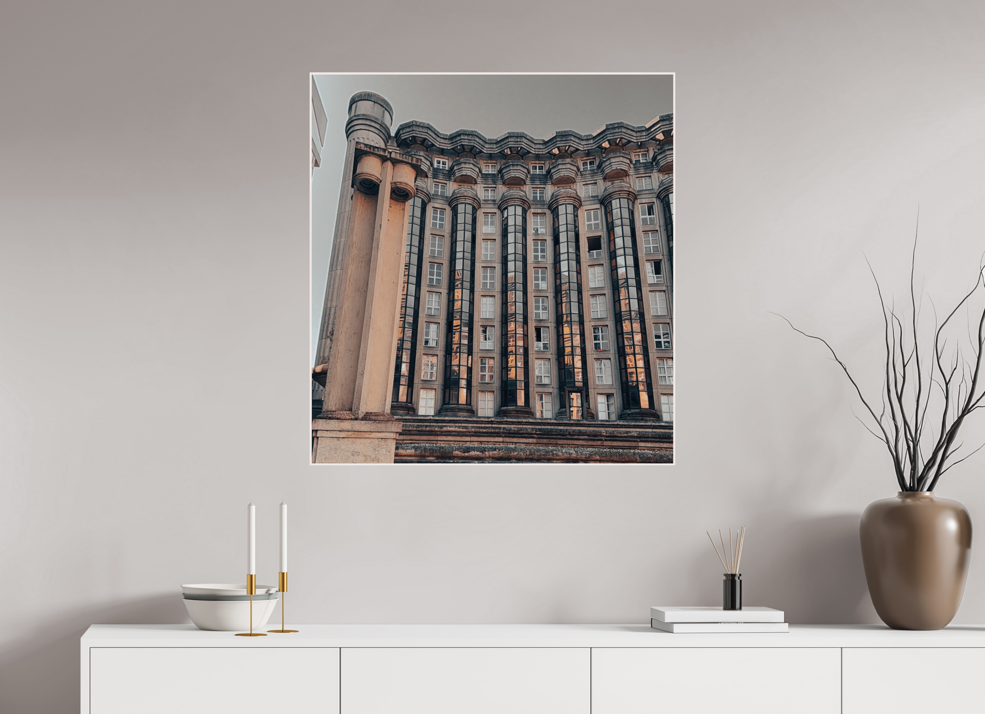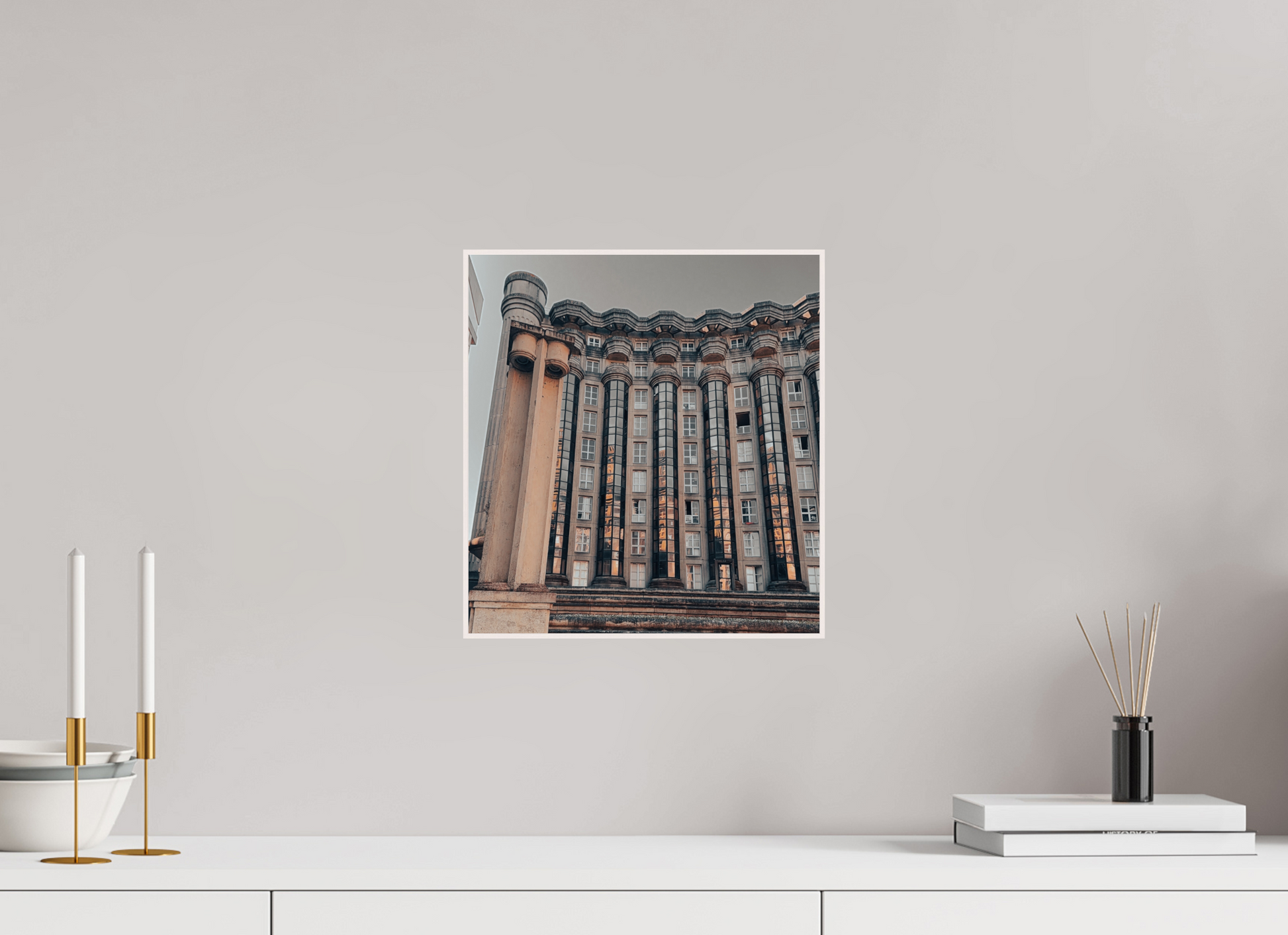 Look at the imposing facade of the Espaces d'Abraxas, with its repeating columns and arches creating a sense of rhythm and order. The warm tones of the building contrast with the cool blue of the sky, adding depth and dimension to the scene. The intricate details and textures of the structure are highlighted by the interplay of light and shadow.