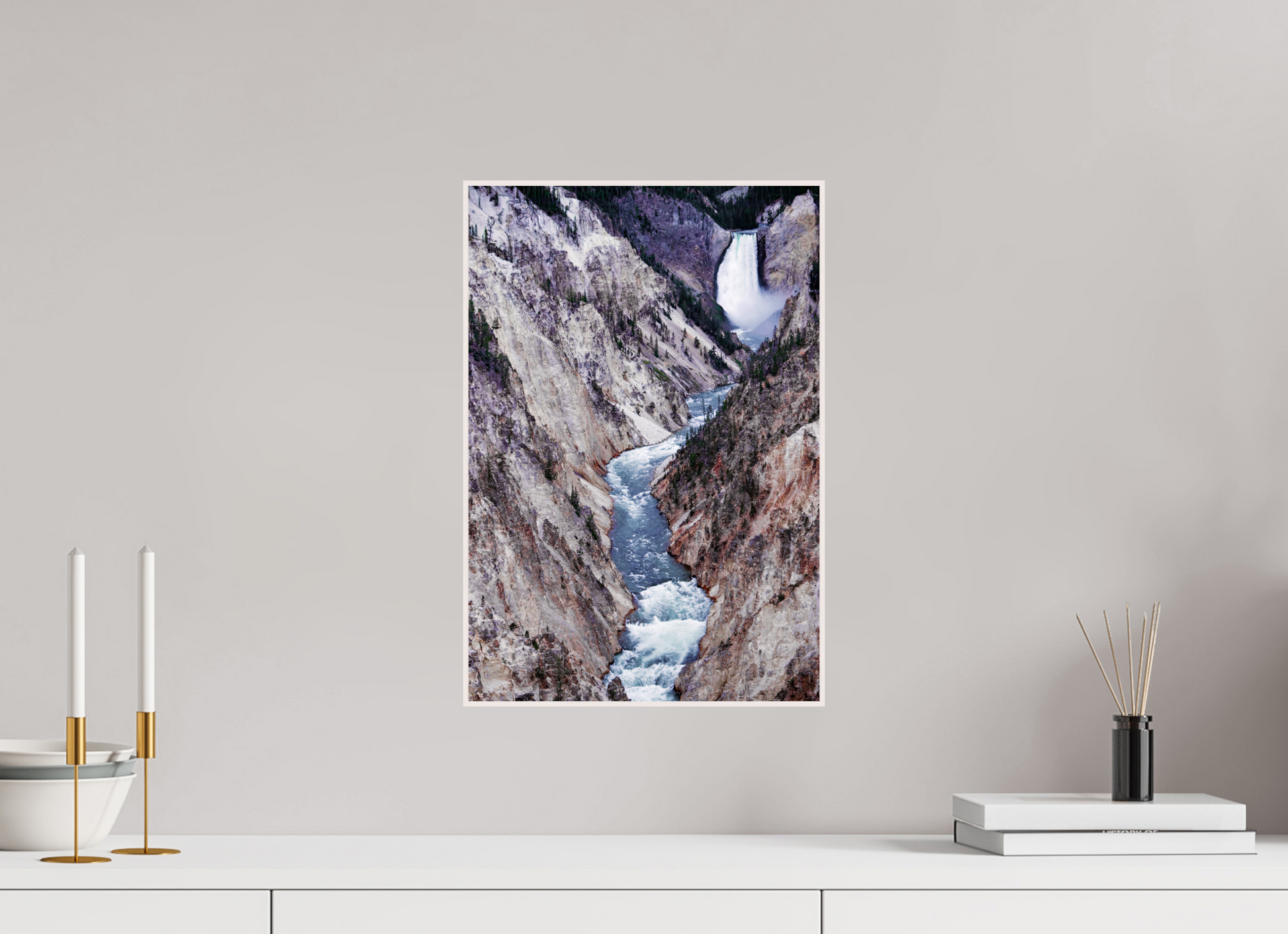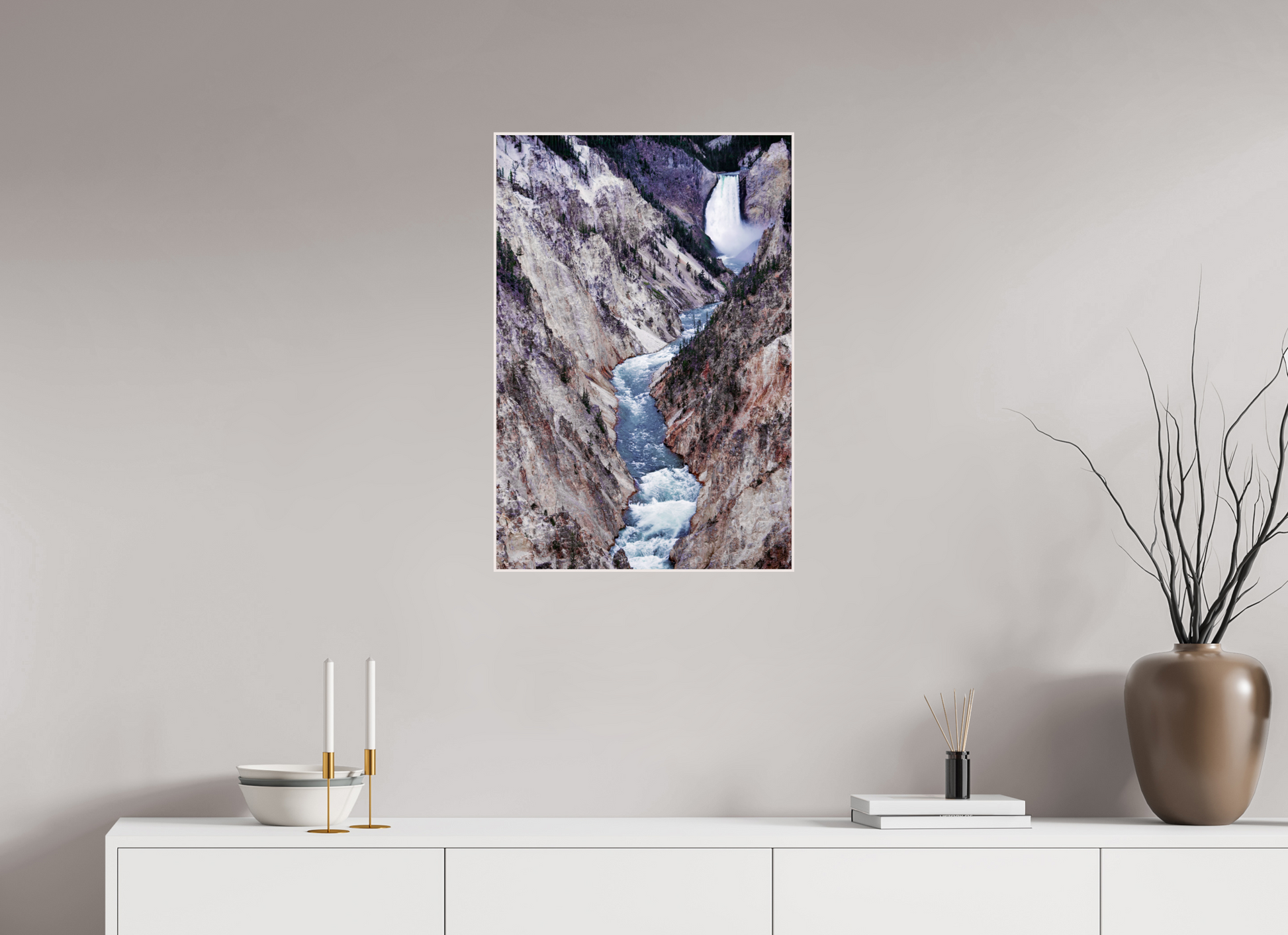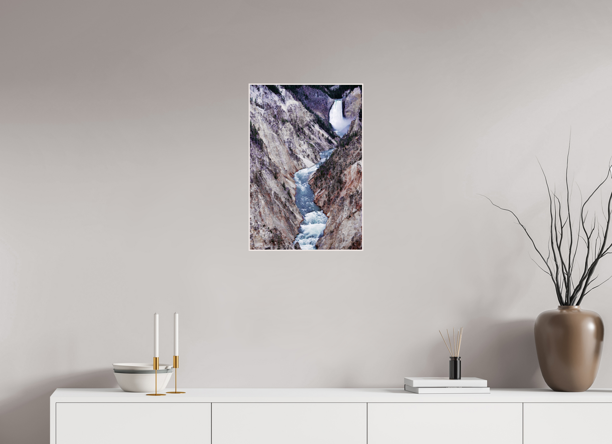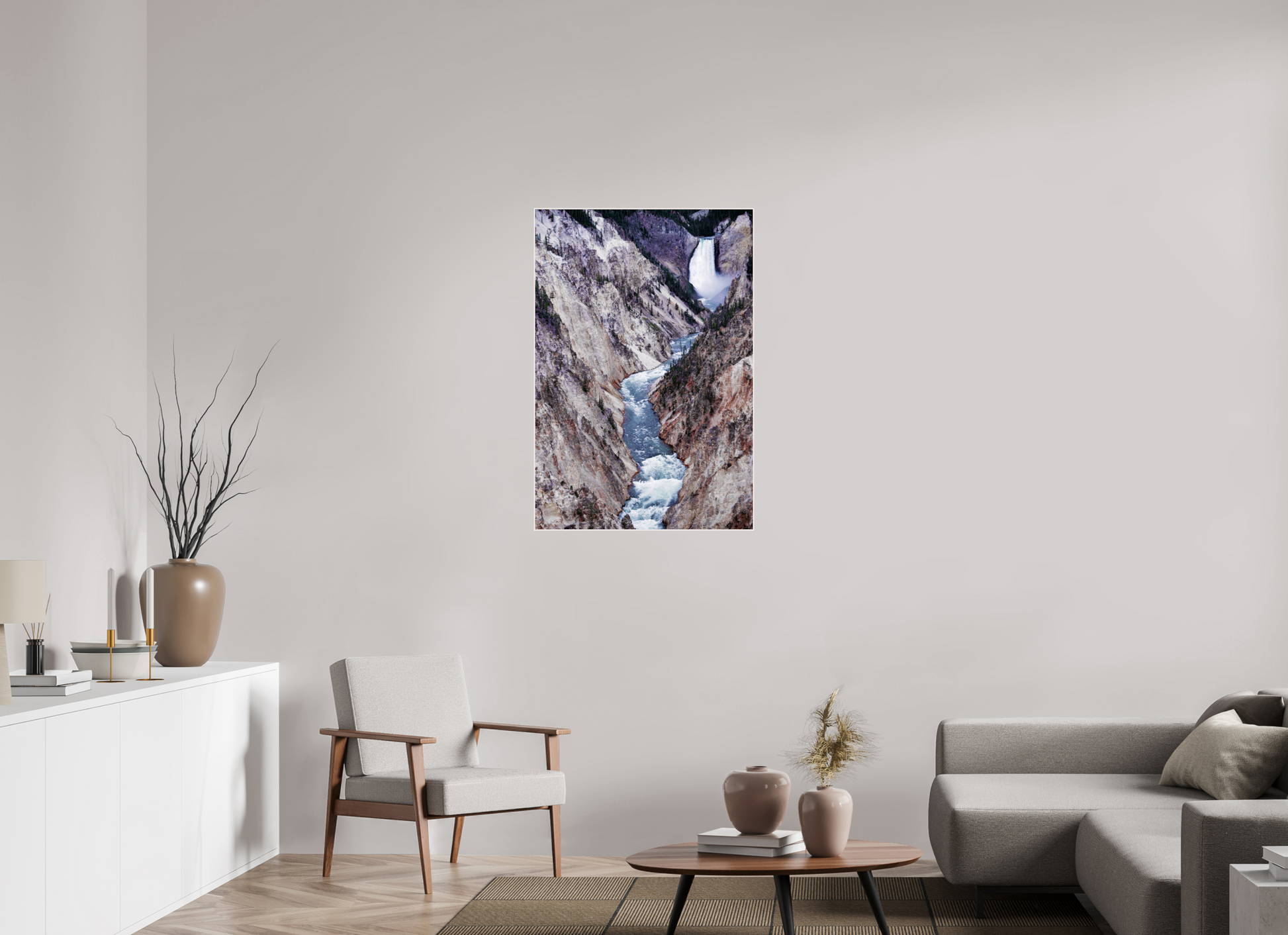 A river carves its way through the rugged canyon, the icy waters contrasting with the stark, rocky cliffs, capturing the raw beauty and power of nature's forces.